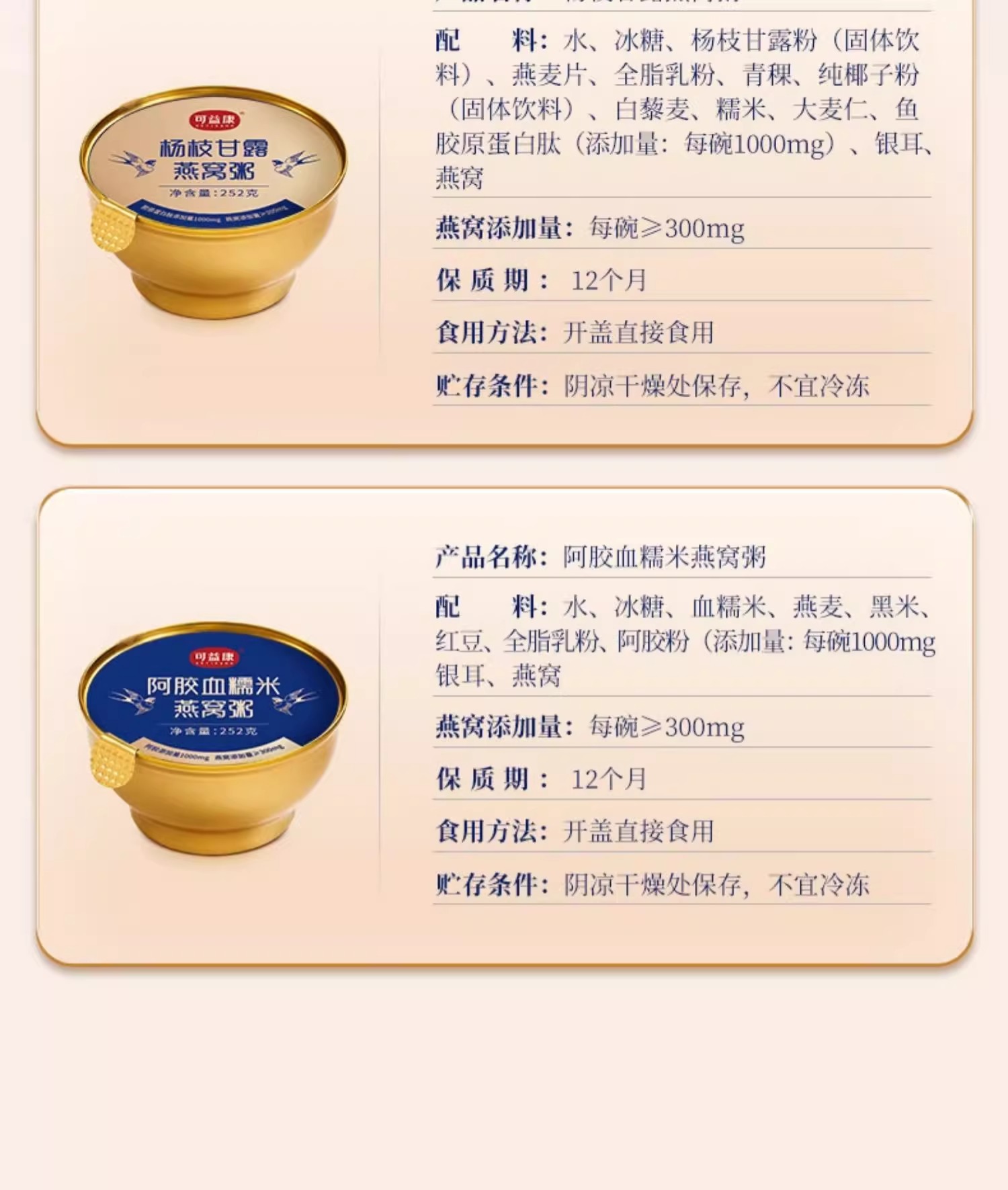 可益康燕窝粥礼盒1.512kg五谷杂粮阿胶黑米胶原蛋白礼盒
