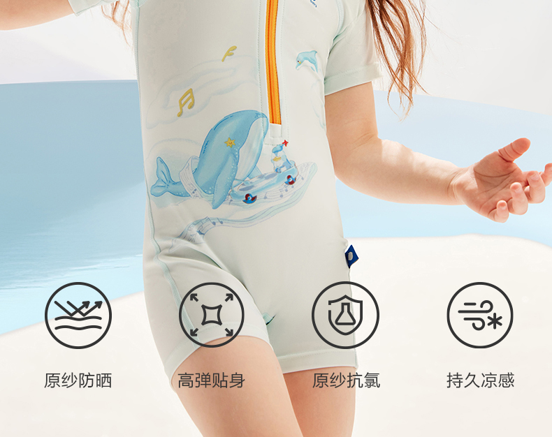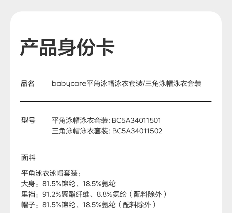 【 babycare】儿童防晒泳衣泳帽套装速干男童女童连体泳衣宝宝游泳衣裤