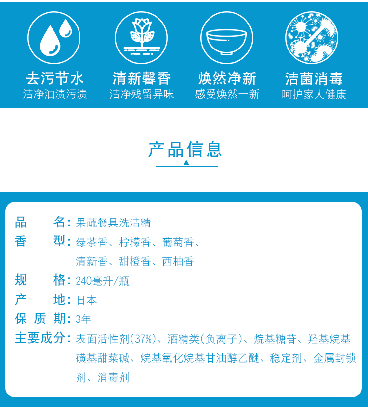 花王KAO洗洁精果蔬清洁剂 绿茶香 240ml