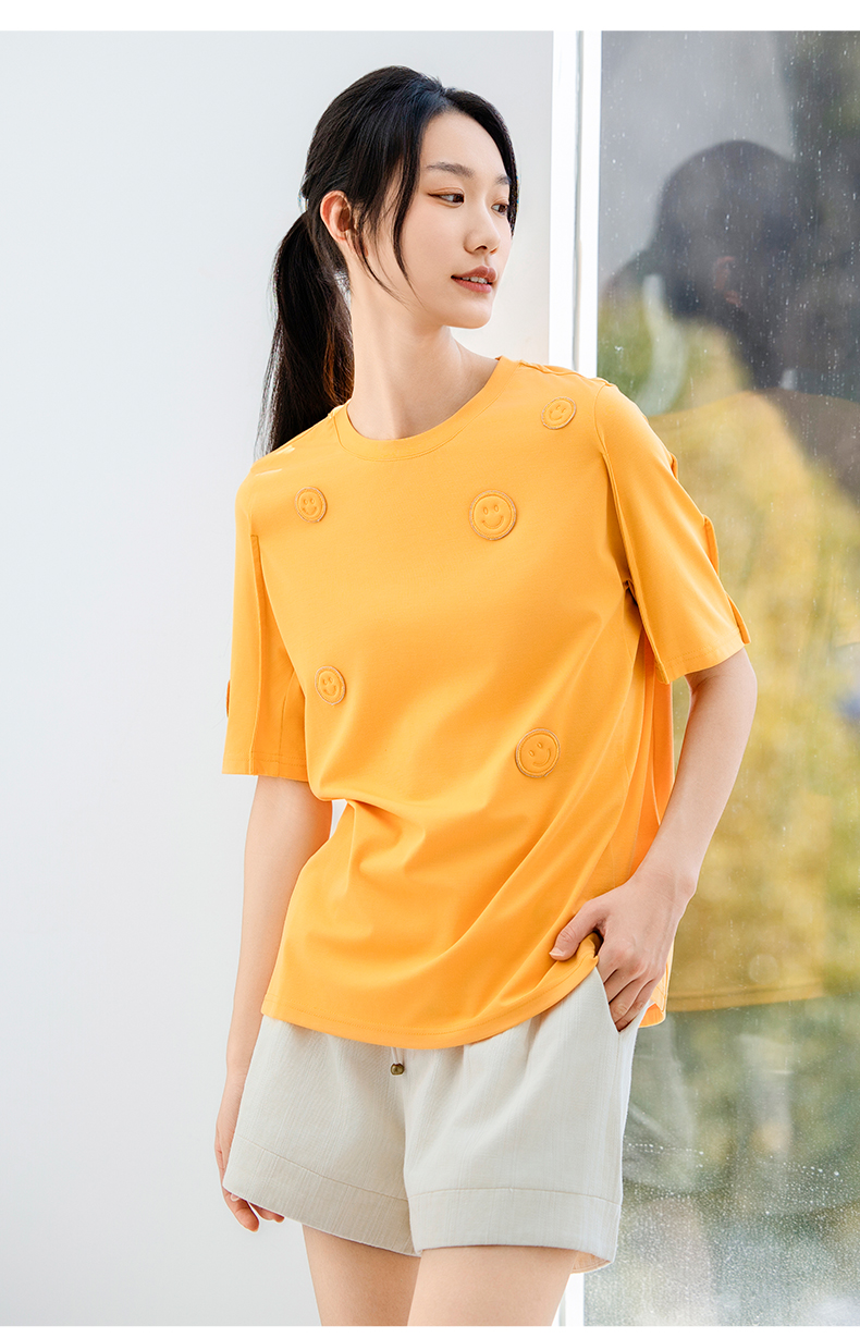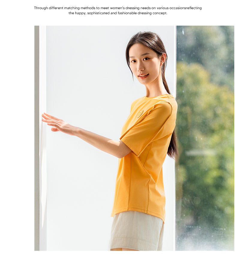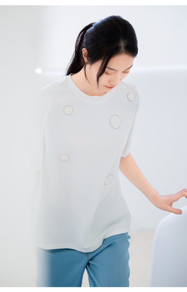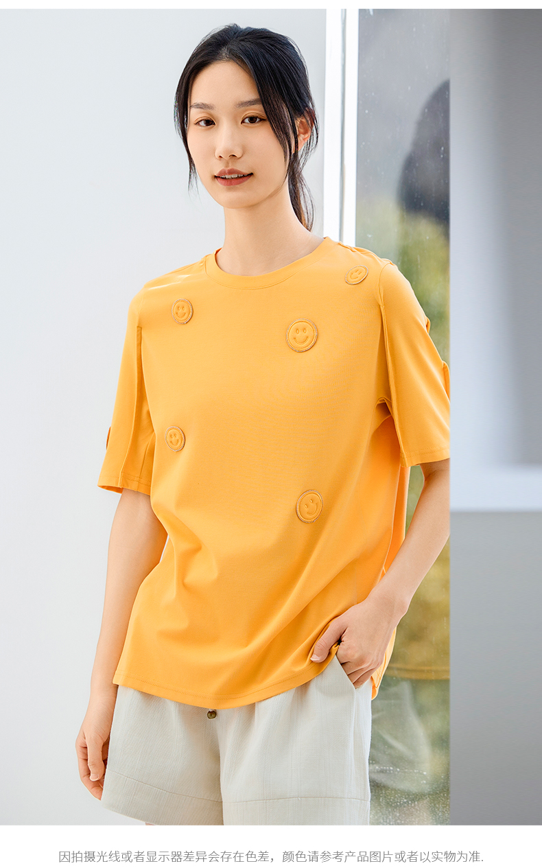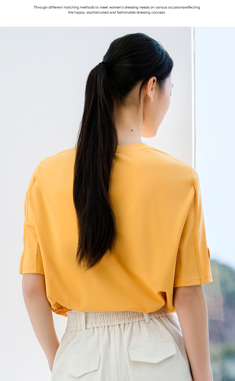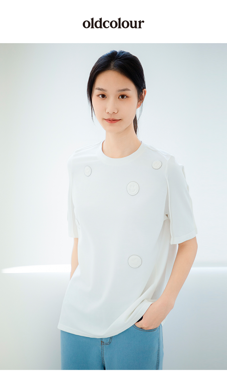 oldcolour纯色圆领T恤夏季新款设计感简约宽松上衣女P23021149