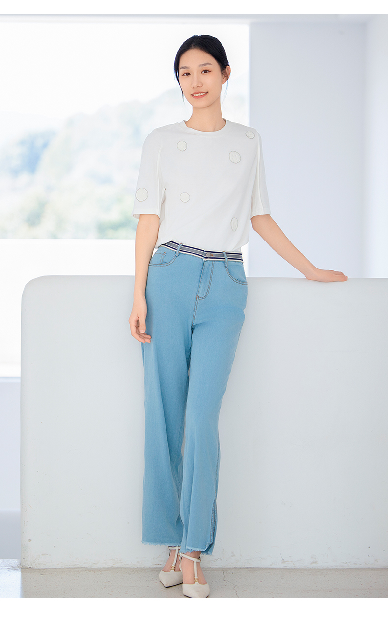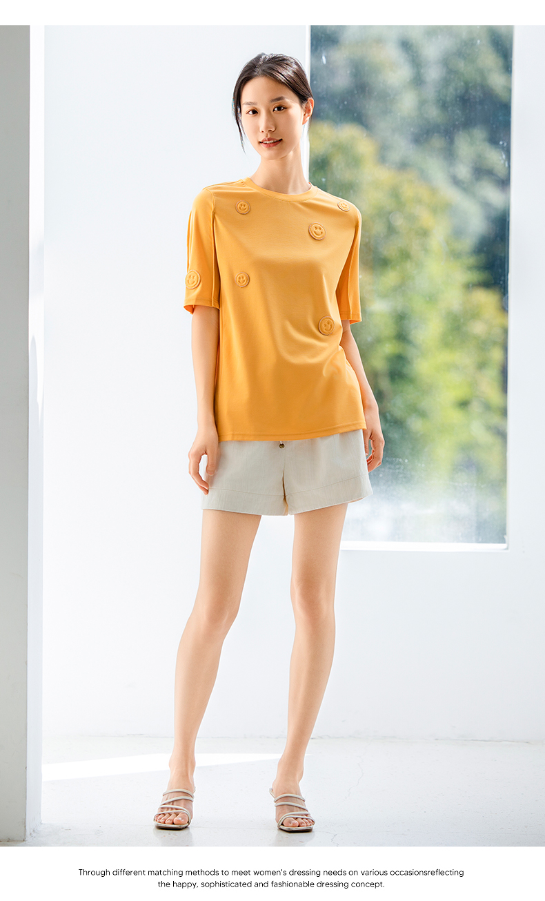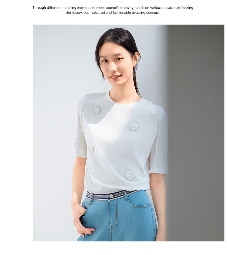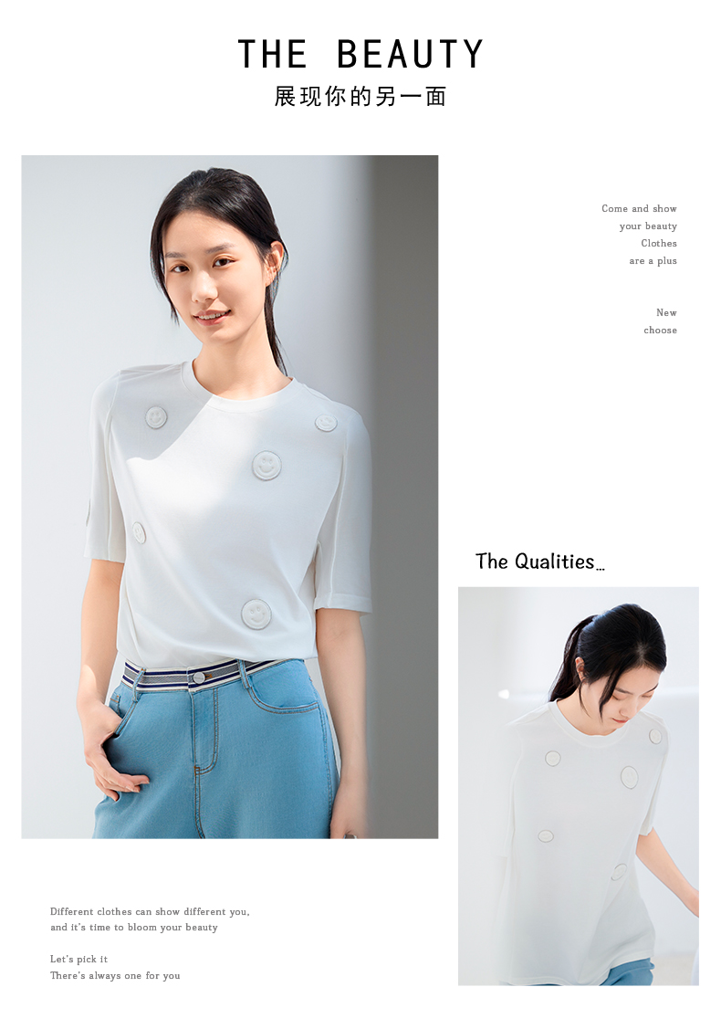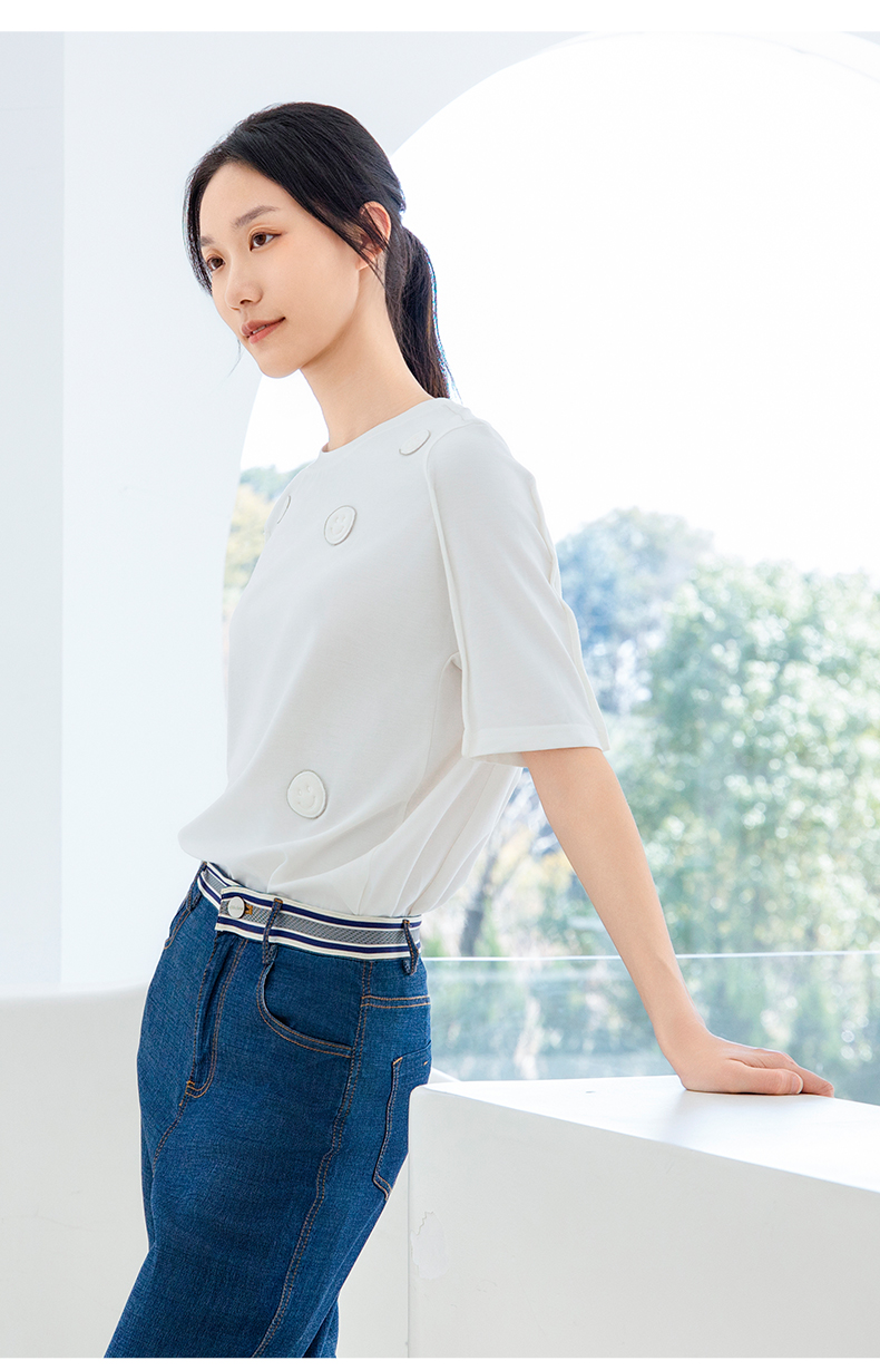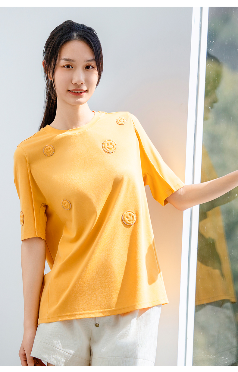 oldcolour纯色圆领T恤夏季新款设计感简约宽松上衣女P23021149
