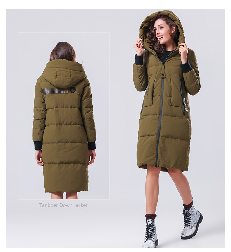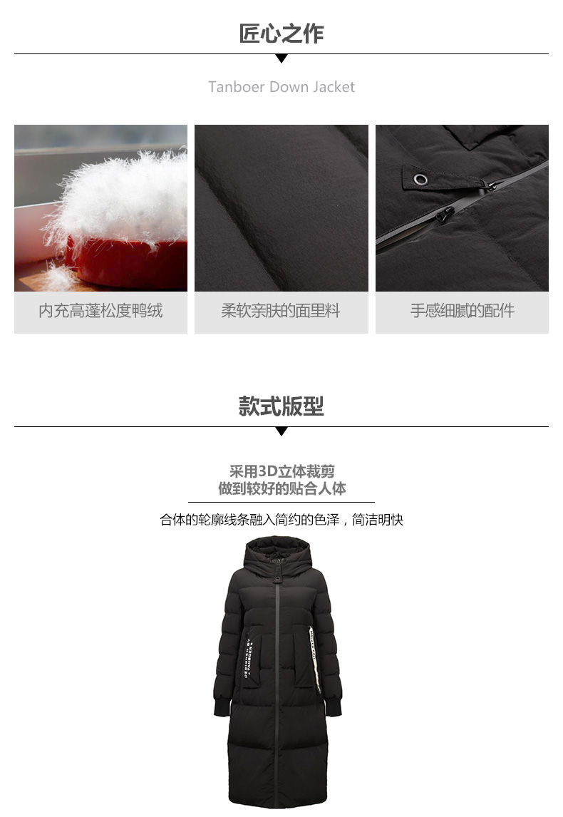 TB17736 坦博尔冬季新品时尚显瘦中长款羽绒服女拉链修身