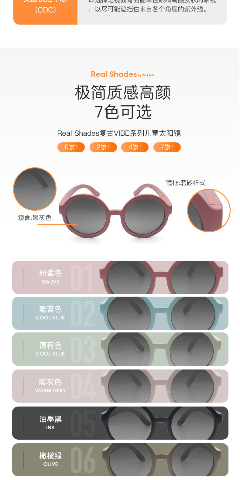 美国Realshades 复古Vibe系列 儿童太阳镜宝宝婴幼儿外出太阳眼镜