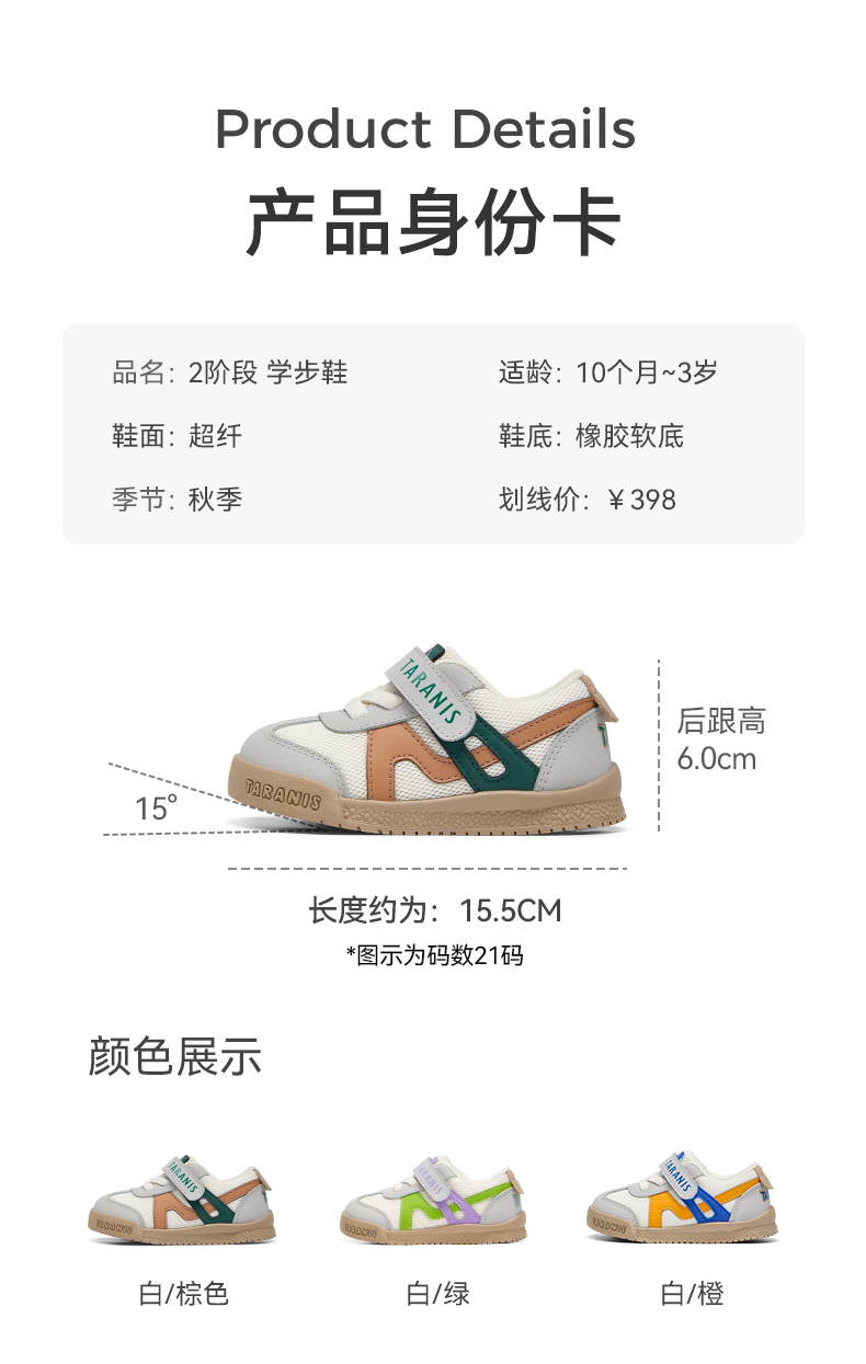 泰兰尼斯秋季新款童鞋学步鞋男宝宝防滑软底鞋子女童面包鞋机能鞋T01T5C7712