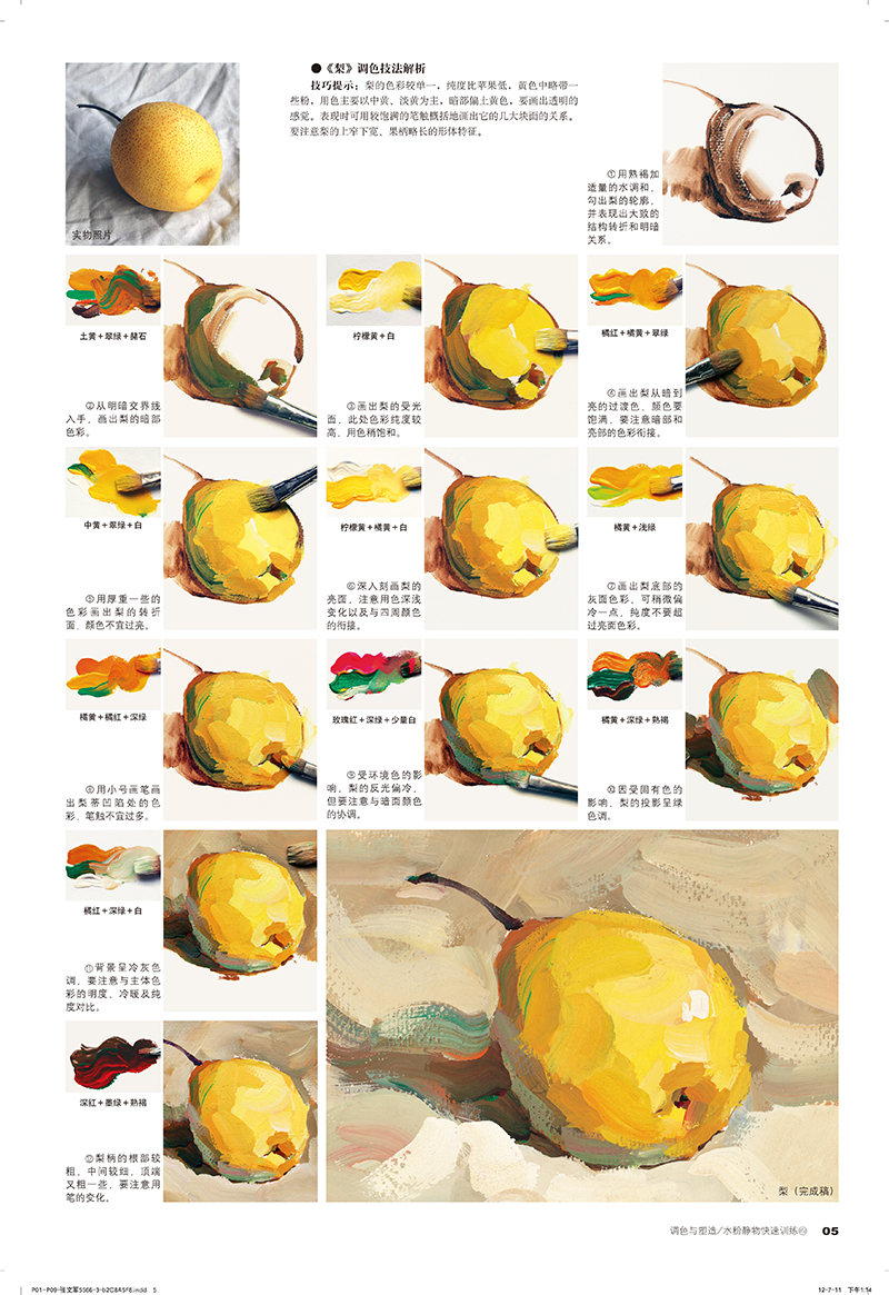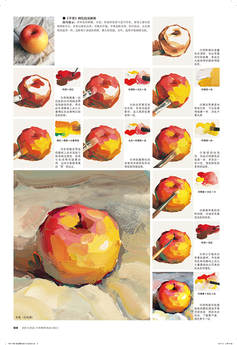 本套书为三本,这是第3本。任何绘画都是通过色调和对形体的塑造来表现结构、明暗光影、空间质感的,因此只有学习好调色和塑造的技巧才能更好地表现对象。本书就从美术基础入门开始训练,通过调色来表达、塑造对象。全书分为两大部分,第一部分为单体训练,每一个步骤都有相应的调色方法和技巧。第二部分为组合范画及步骤。通过这种简单明了的调色方法,使初学者更快地掌握绘画技巧并快速的得到提高。