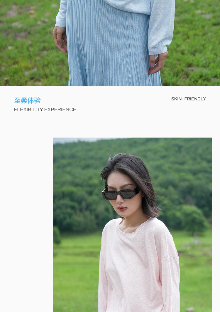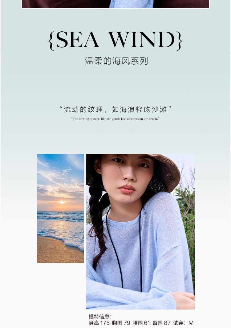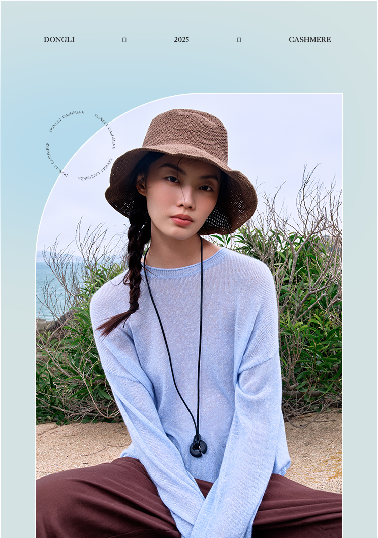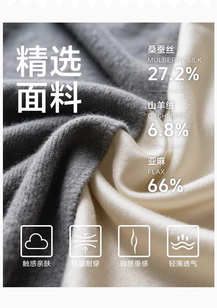 东黎 • 温柔的海风 山羊绒桑蚕丝亚麻女士素色圆领套衫 5274
