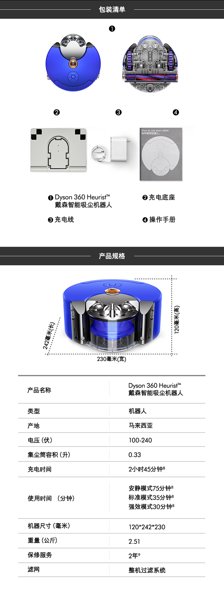 Dyson戴森RB02 360 heurist 智能吸尘机器人(蓝色)