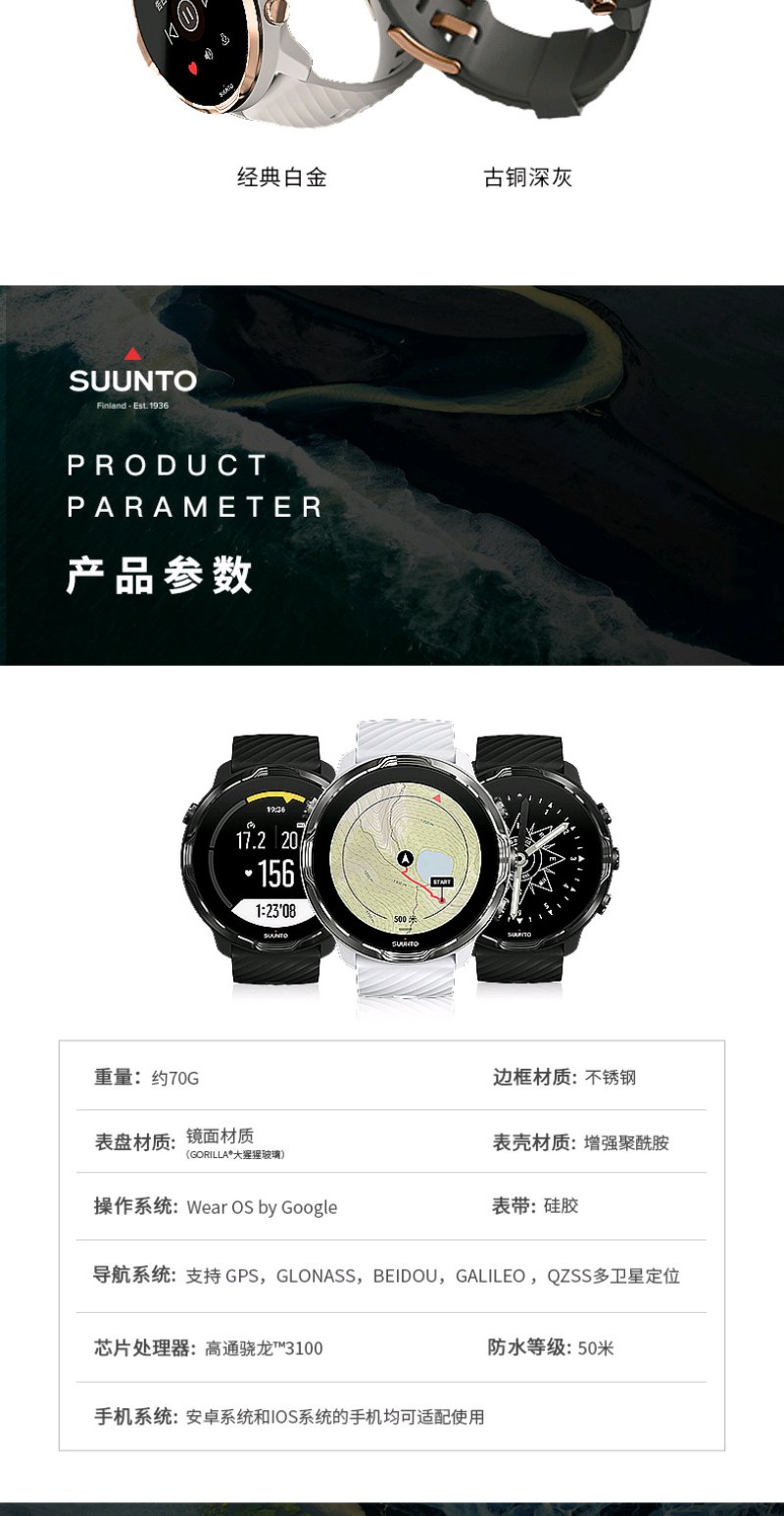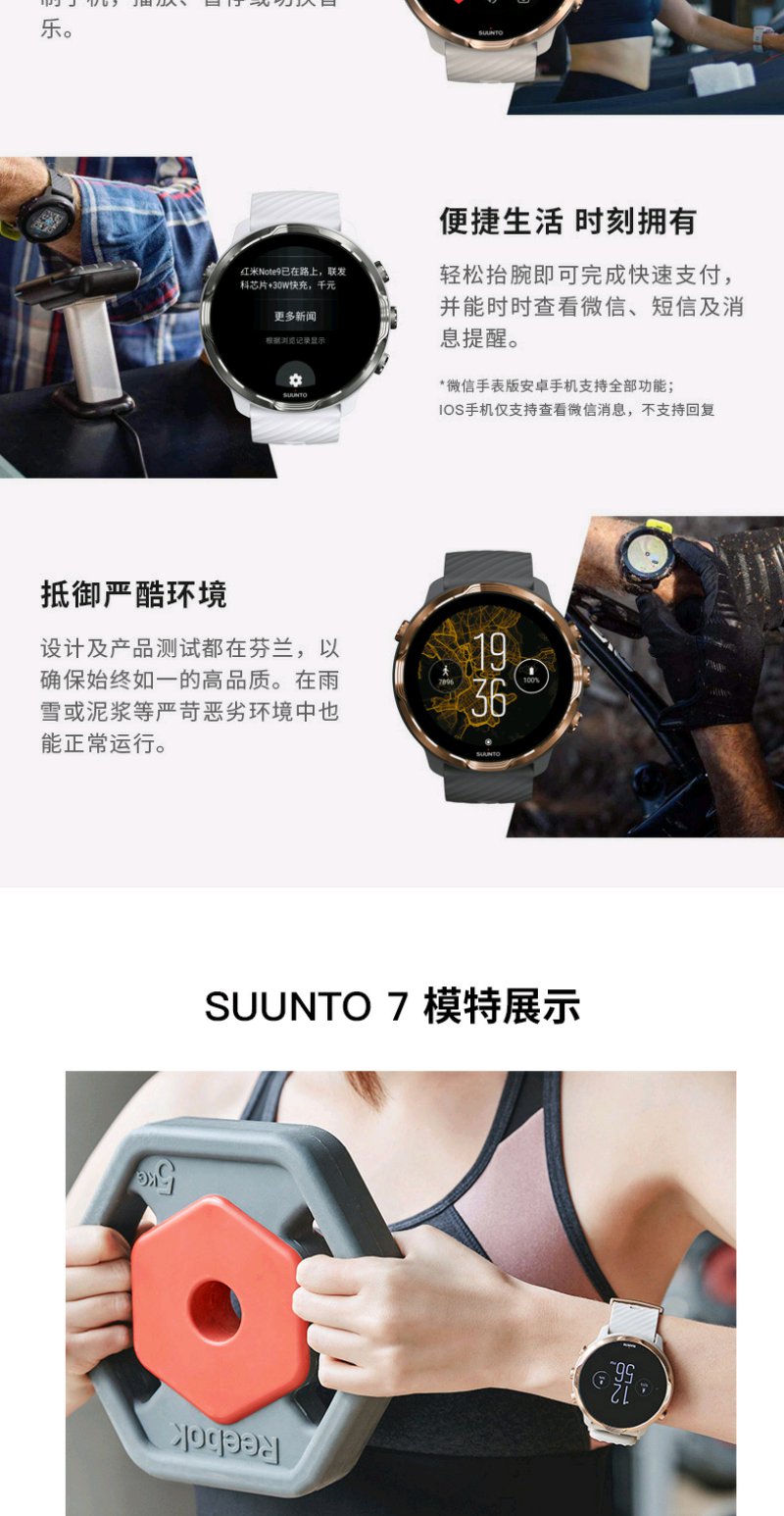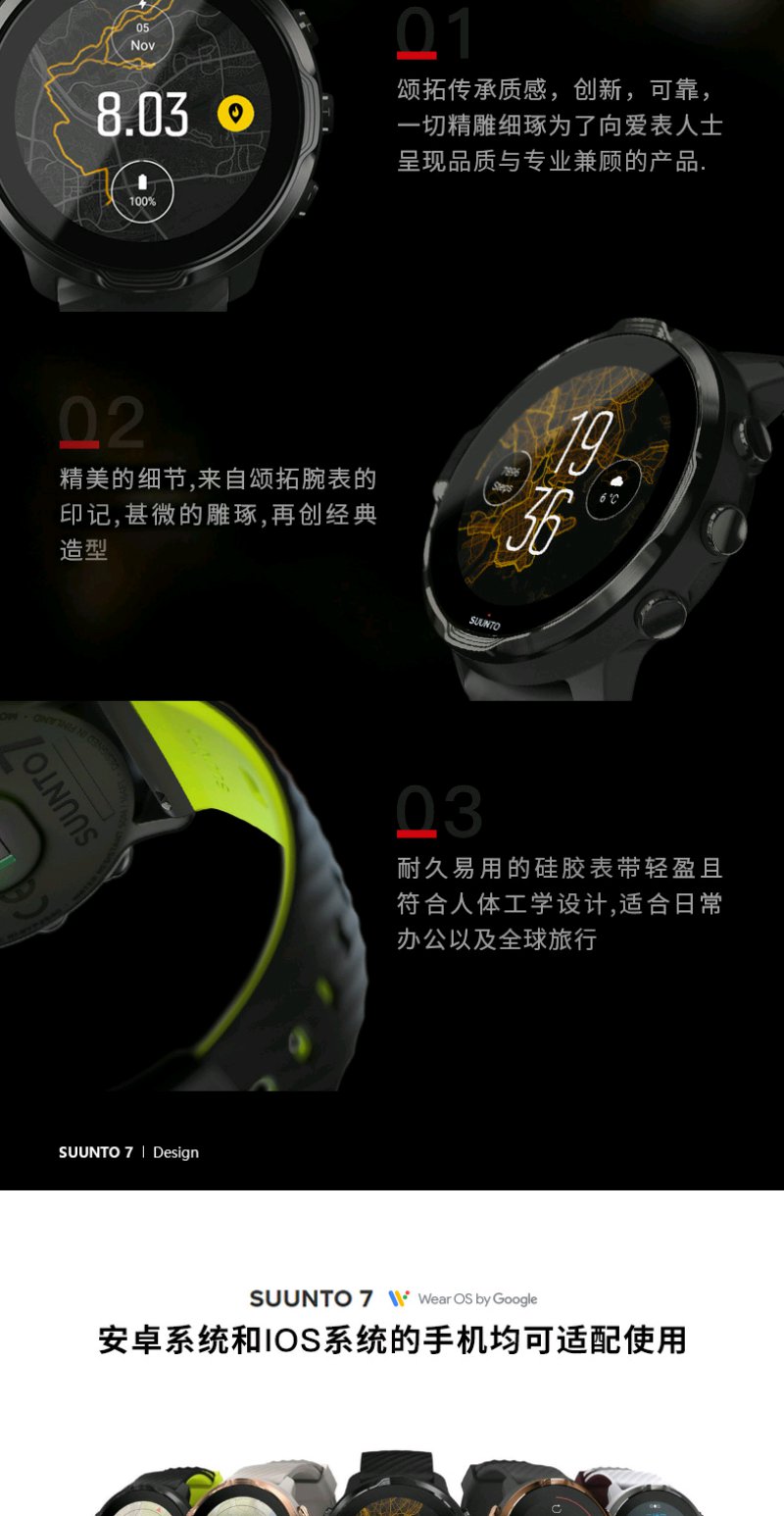 颂拓(SUUNTO)SUUNTO 7 智能运动手表 音乐支付户外跑步心率GPS双系统腕表 经典全黑SS050393000