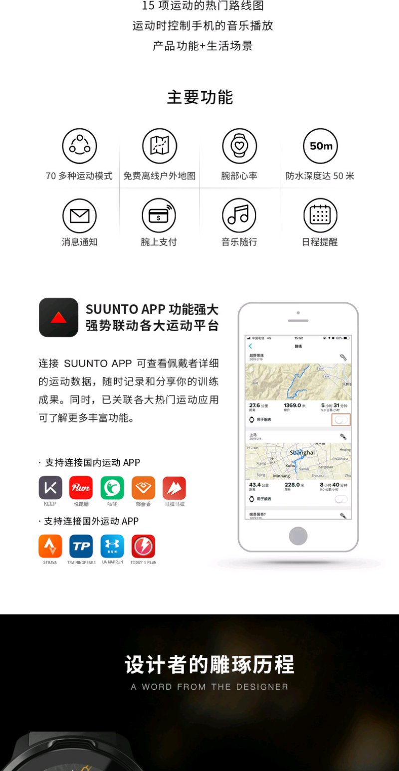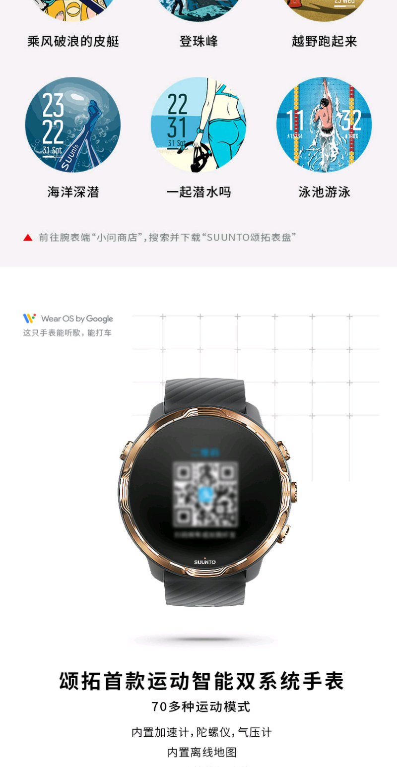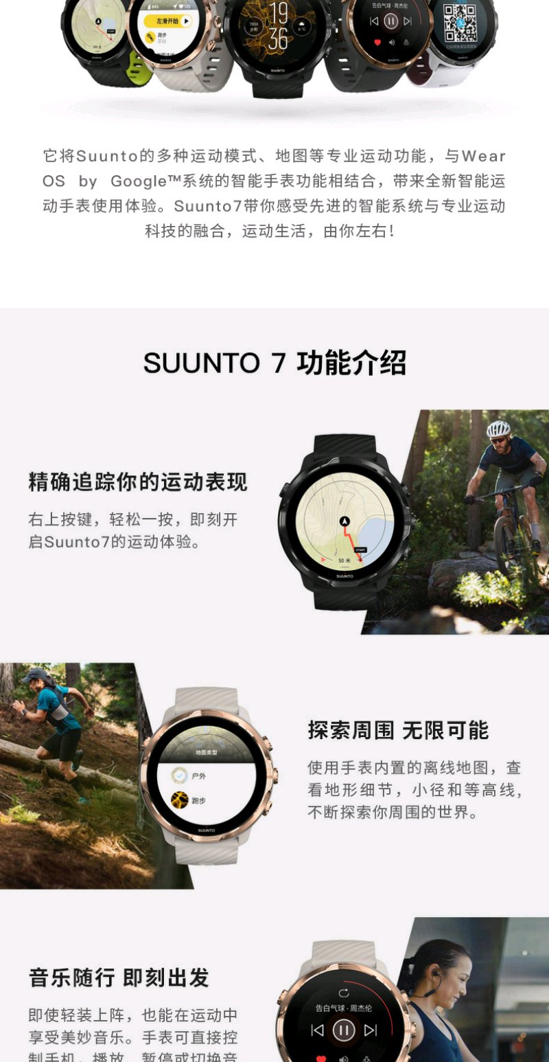 颂拓(SUUNTO)SUUNTO 7 智能运动手表 音乐支付户外跑步心率GPS双系统腕表 经典全黑SS050393000