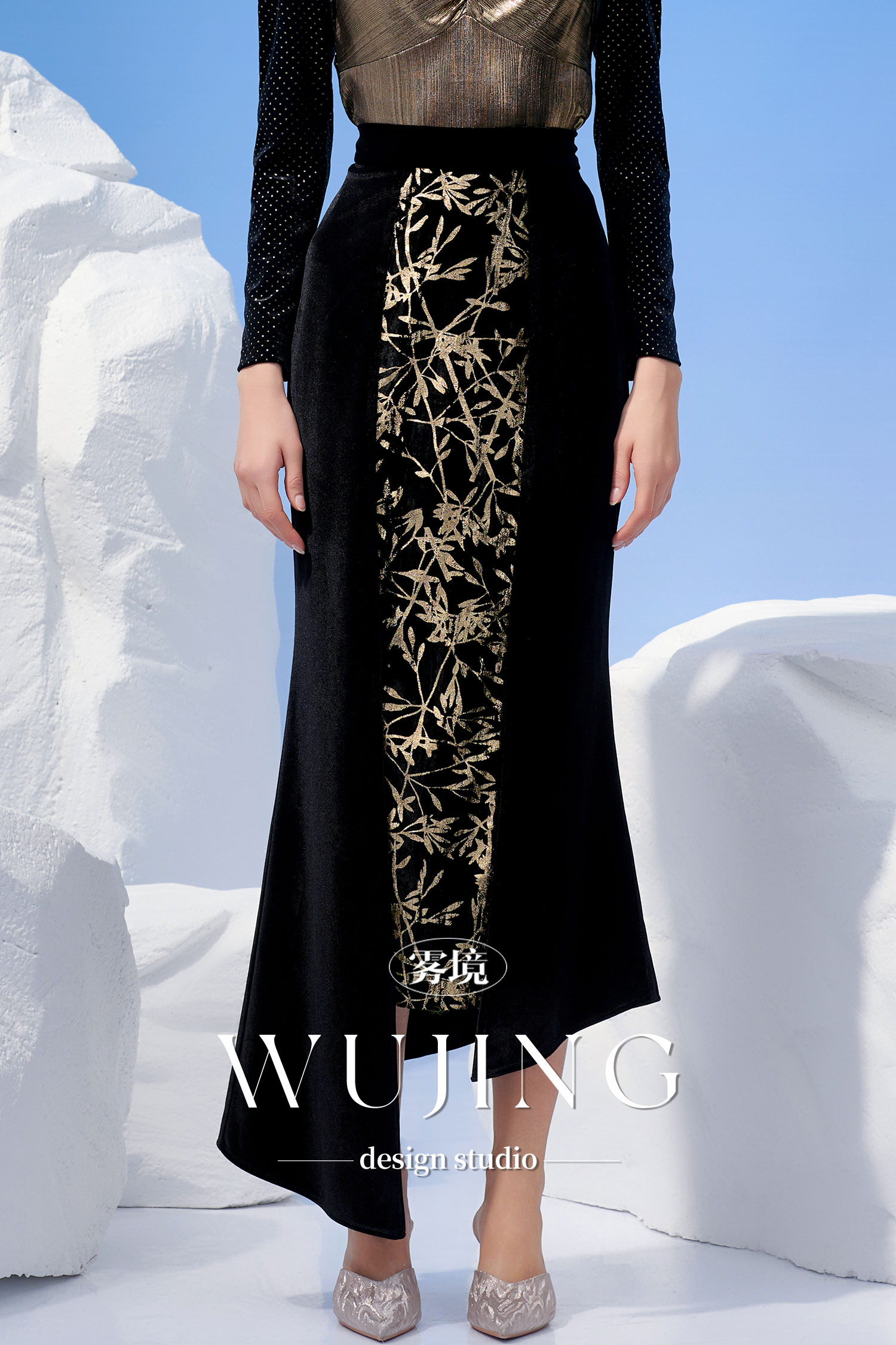 4202058 古潼怀金 高级亮丝图层半裙 雾境