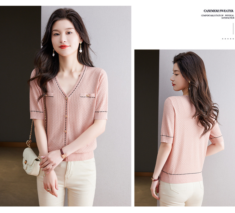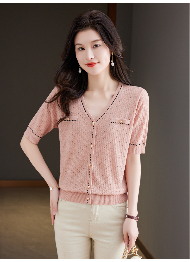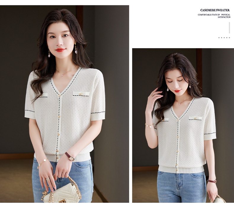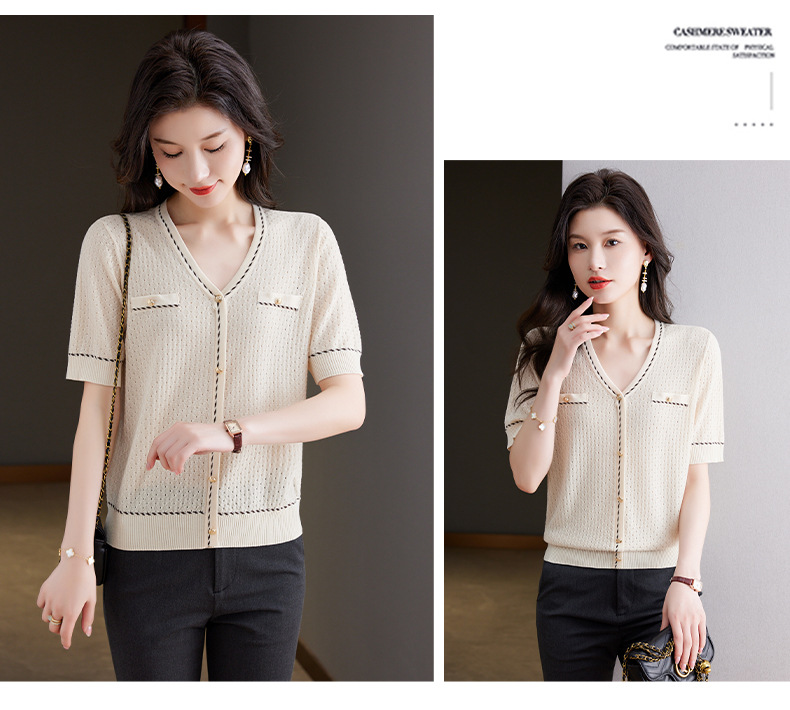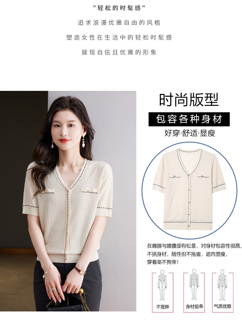 洋气妈妈薄款遮肚天丝针织衫CC-6846