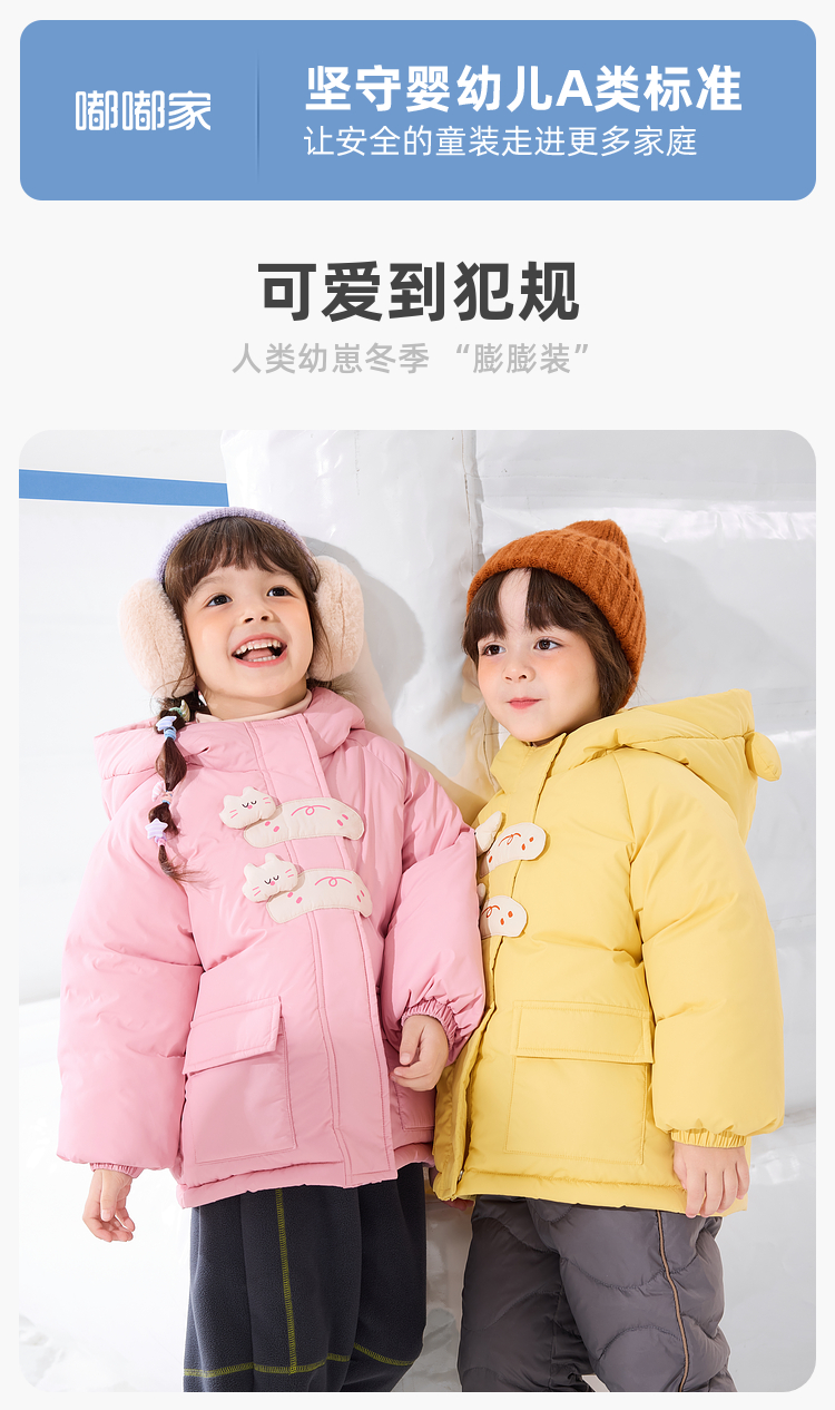 嘟嘟家宝宝棉服四级防泼水男童女童冬季保暖多巴胺配色可爱冬装
