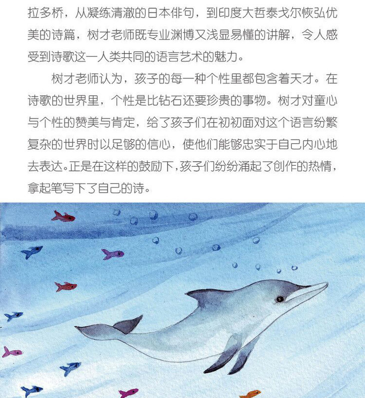 因此本书也收录了孩子们听了树才老师的诗歌课后而写的一些诗。这些稚嫩的诗句,令我们见识到一颗颗童心的珍贵。