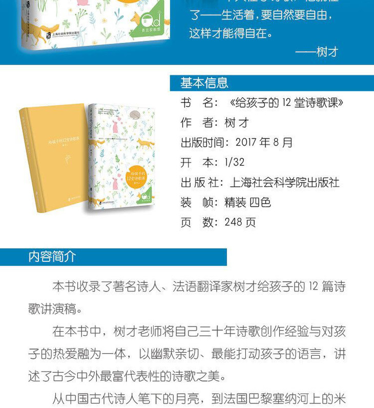 给孩子的12堂诗歌课 用诗意守护童心的自由清澈 领孩子走进诗歌的王国 体味古今中外大诗人美妙诗意 诗歌学 树才 著 畅销书籍