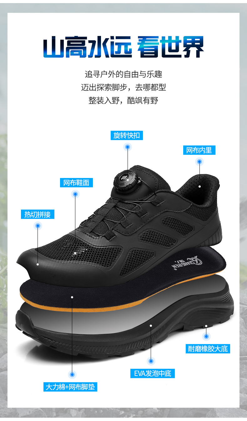 强人3515户外训练鞋男夏季薄款透气网面鞋徒步登山鞋战术鞋自动扣