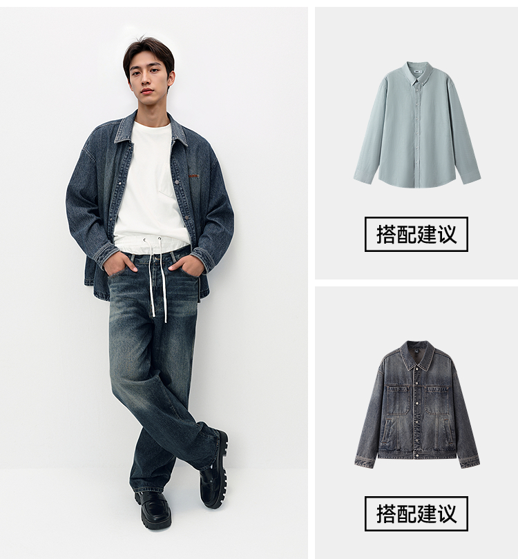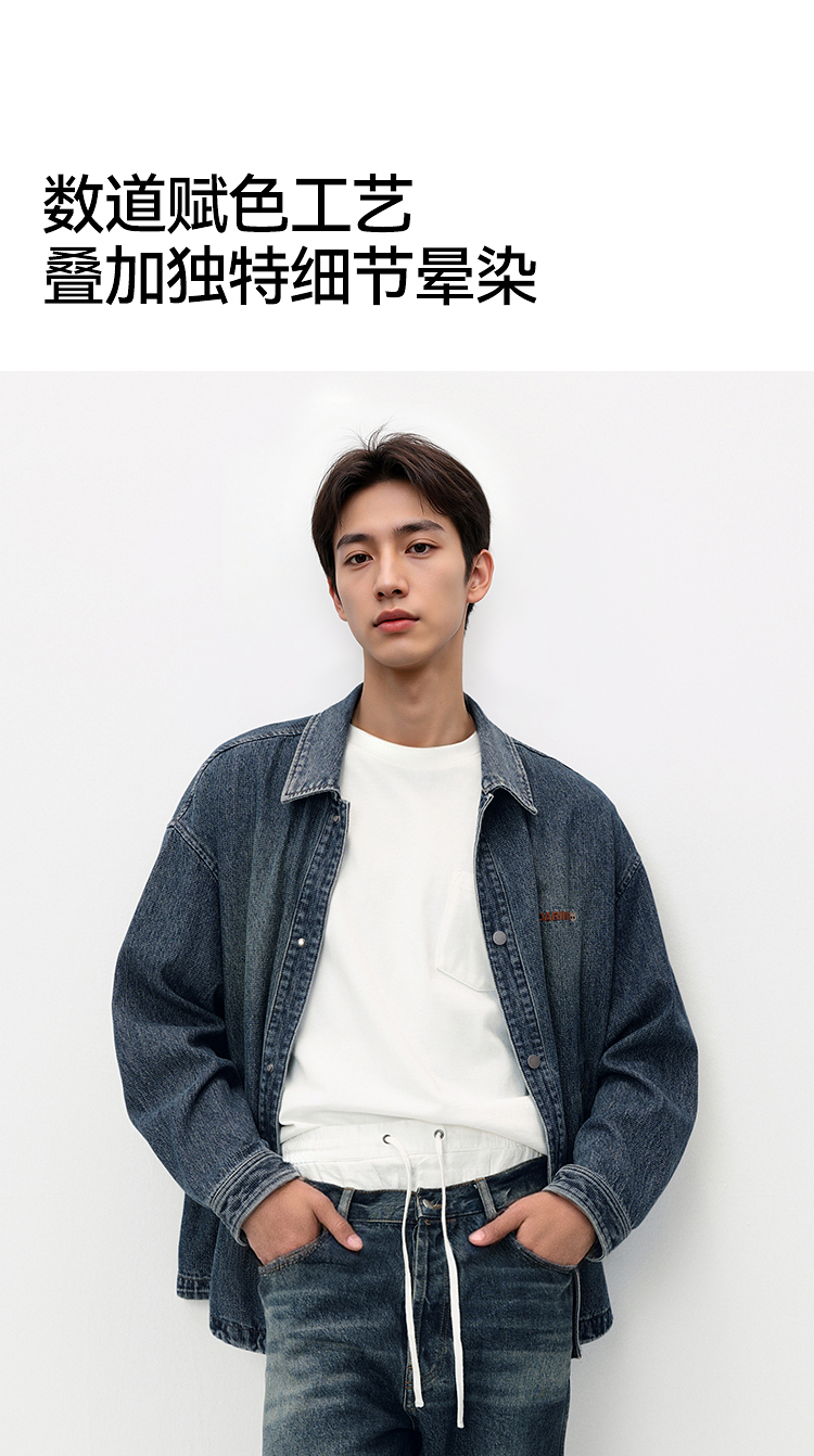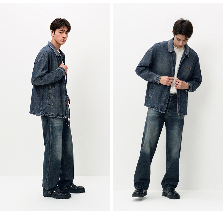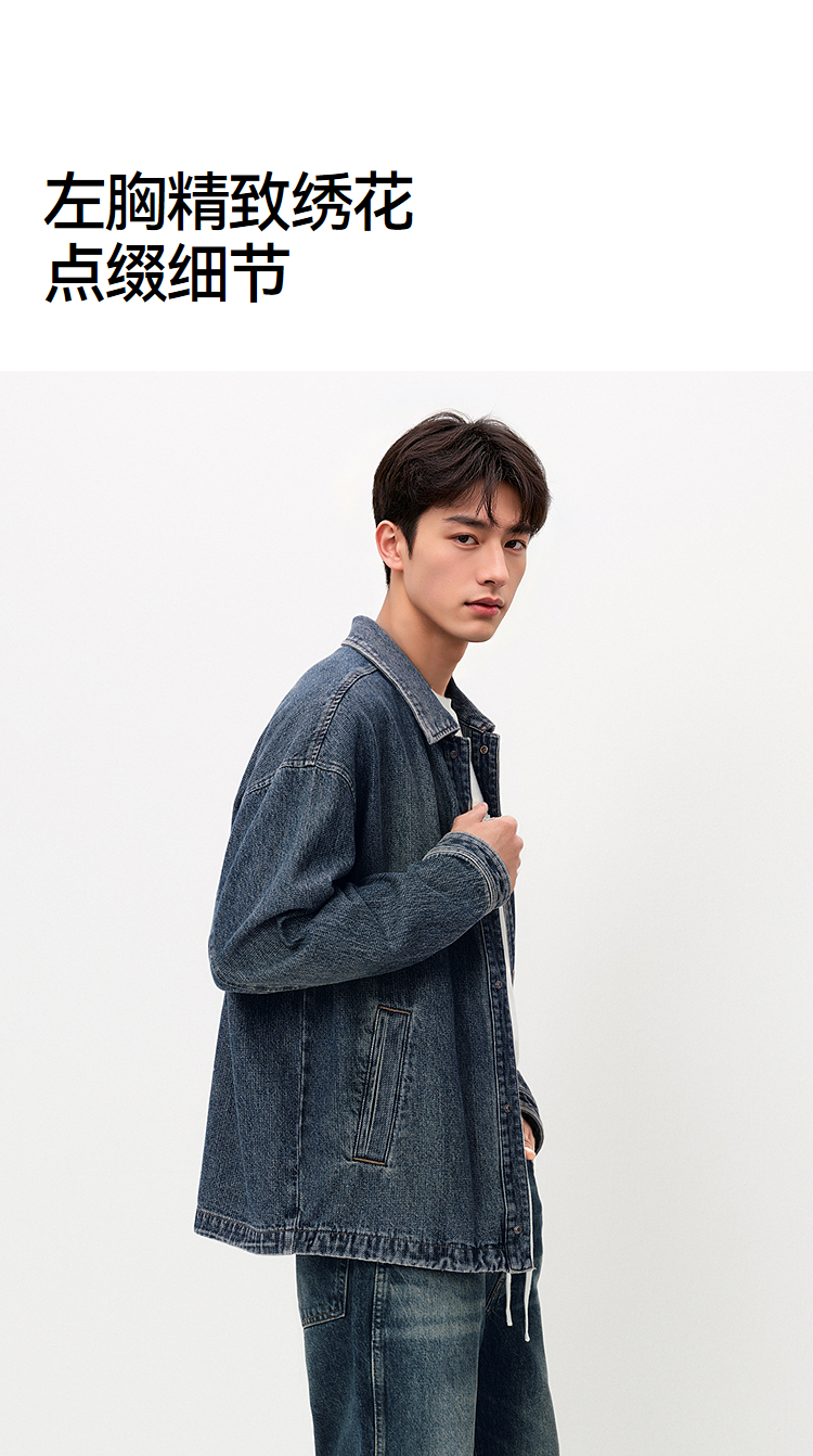 [商场同款]森马牛仔外套男教练员夹克复古2025秋新款翻领上衣宽松