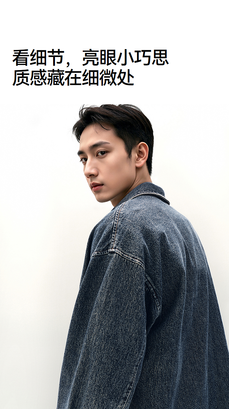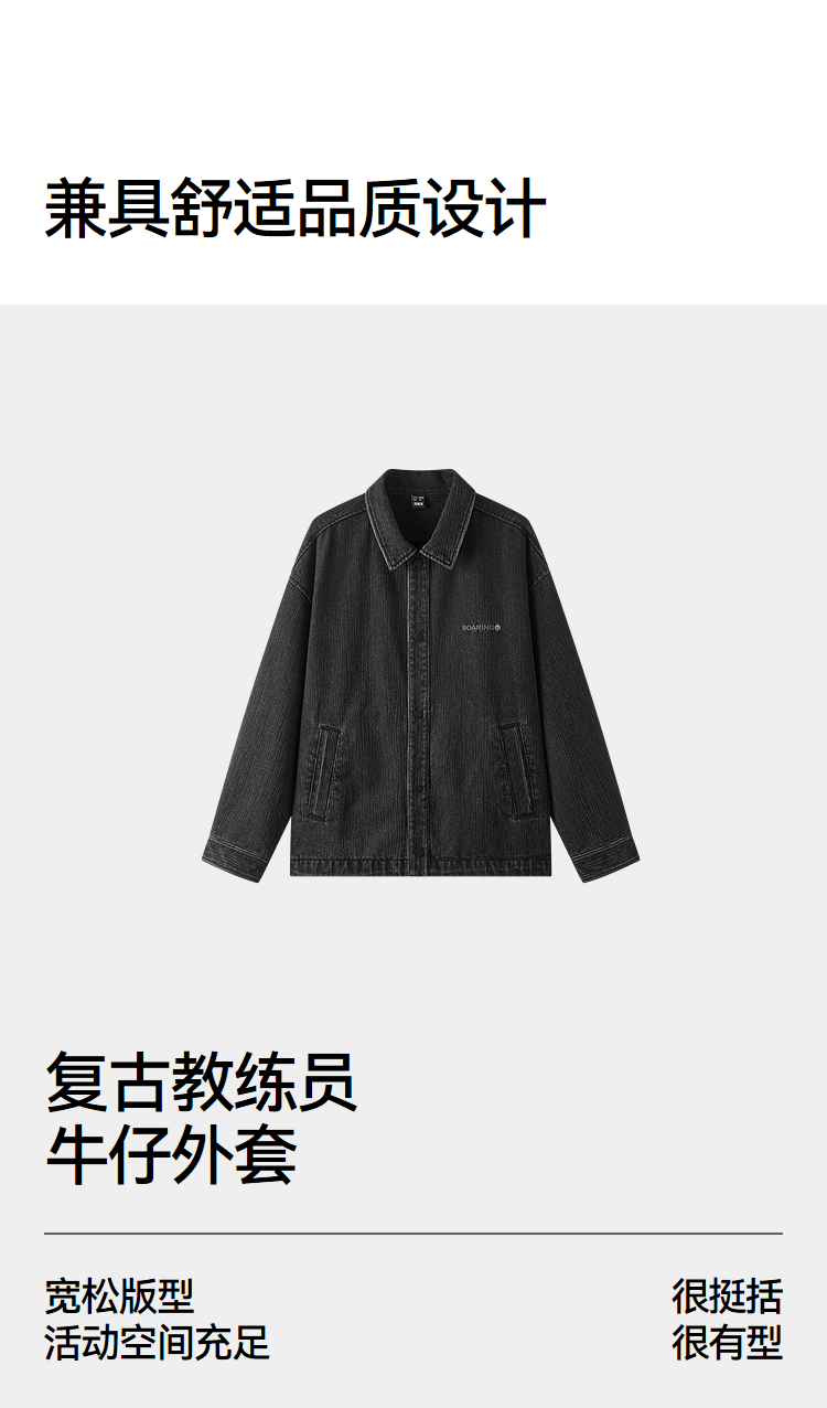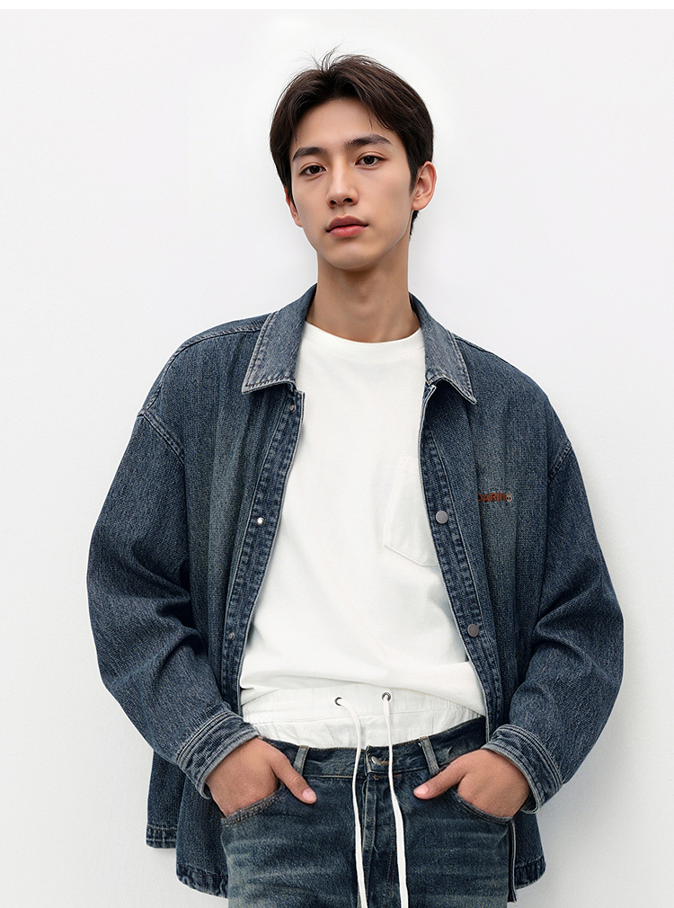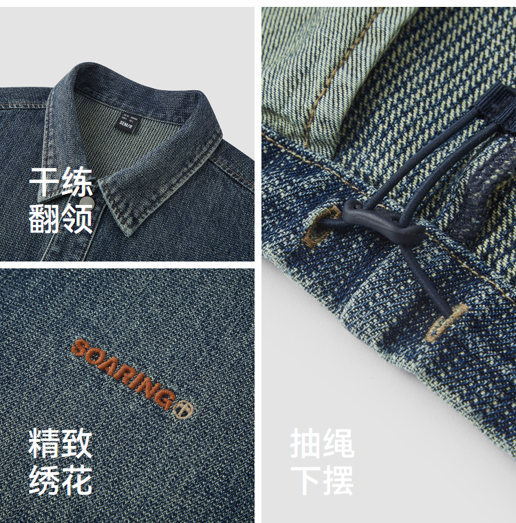 [商场同款]森马牛仔外套男教练员夹克复古2025秋新款翻领上衣宽松