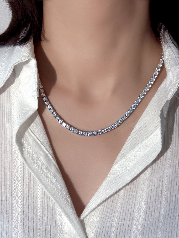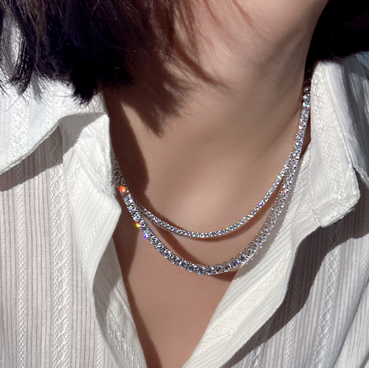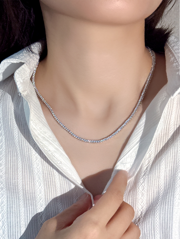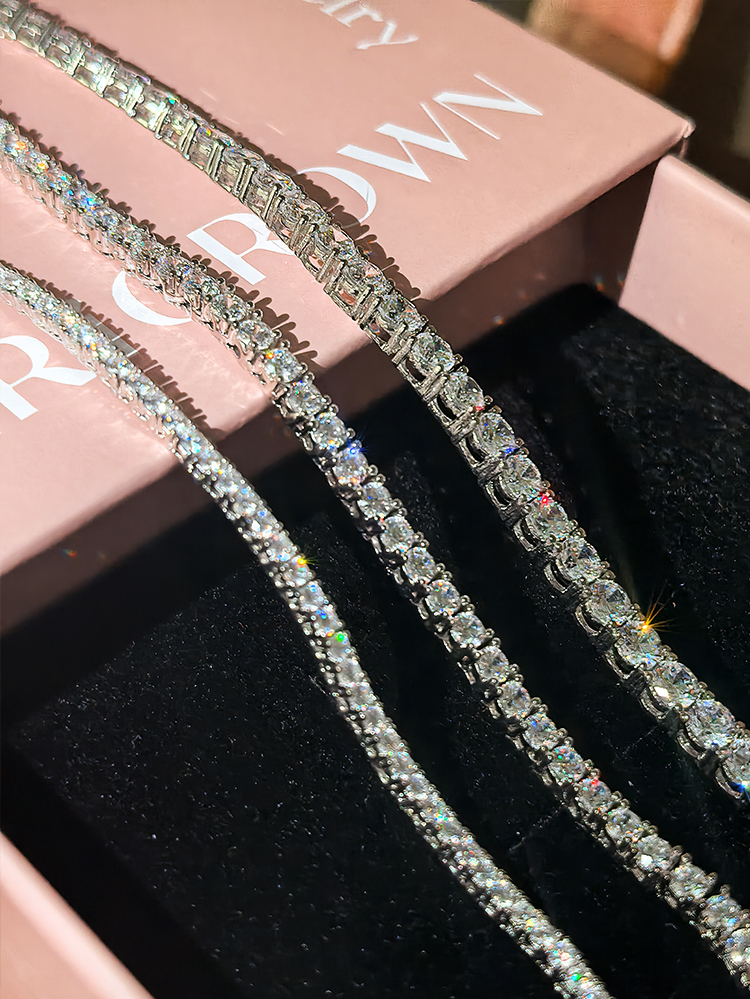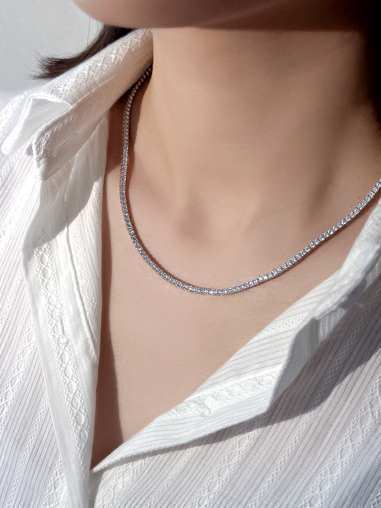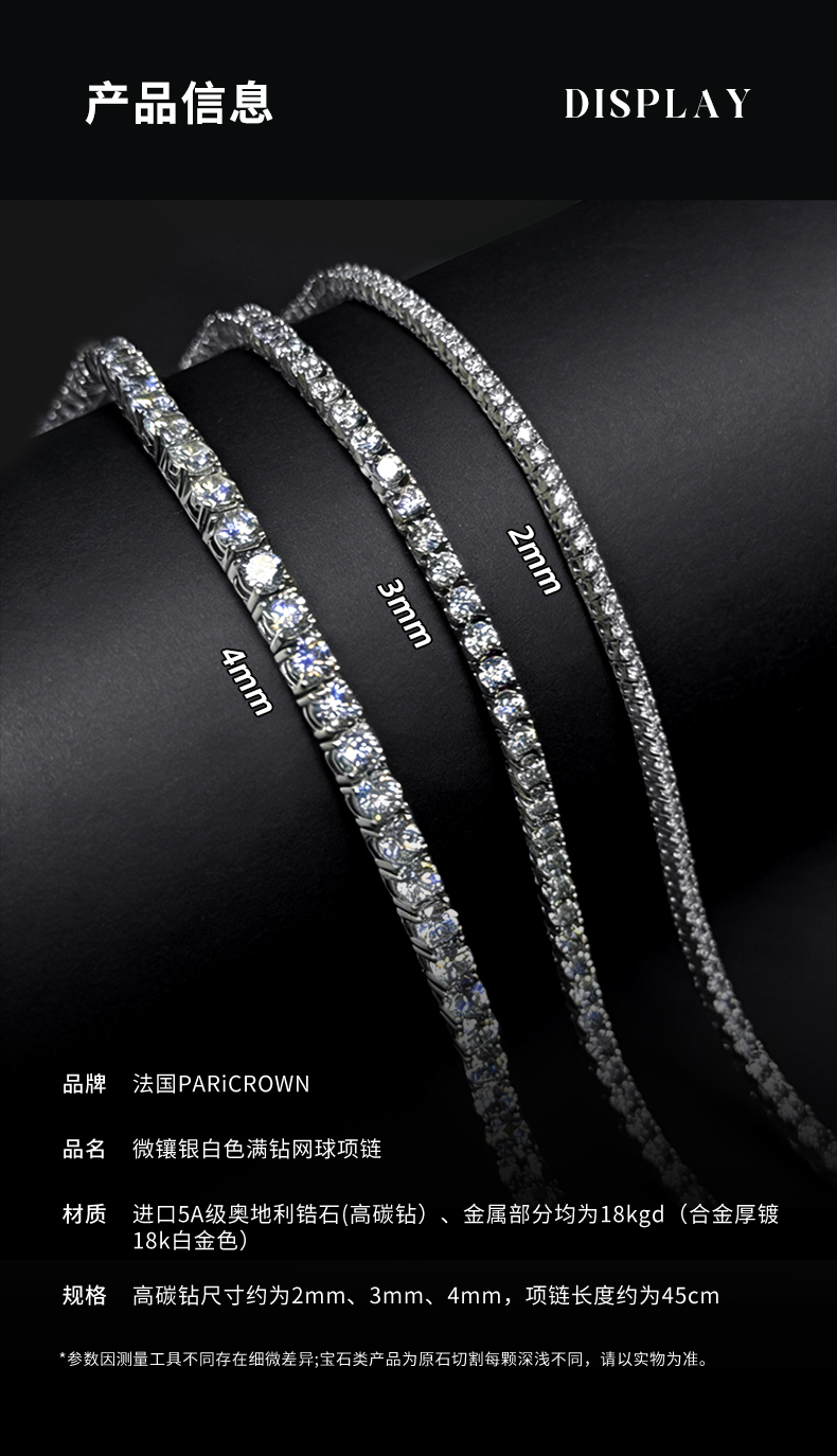 法国PARiCROWN微镶银白色满钻项链 2026新款网球项链 高级感满满