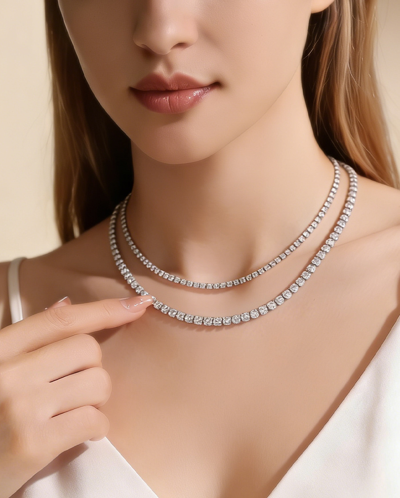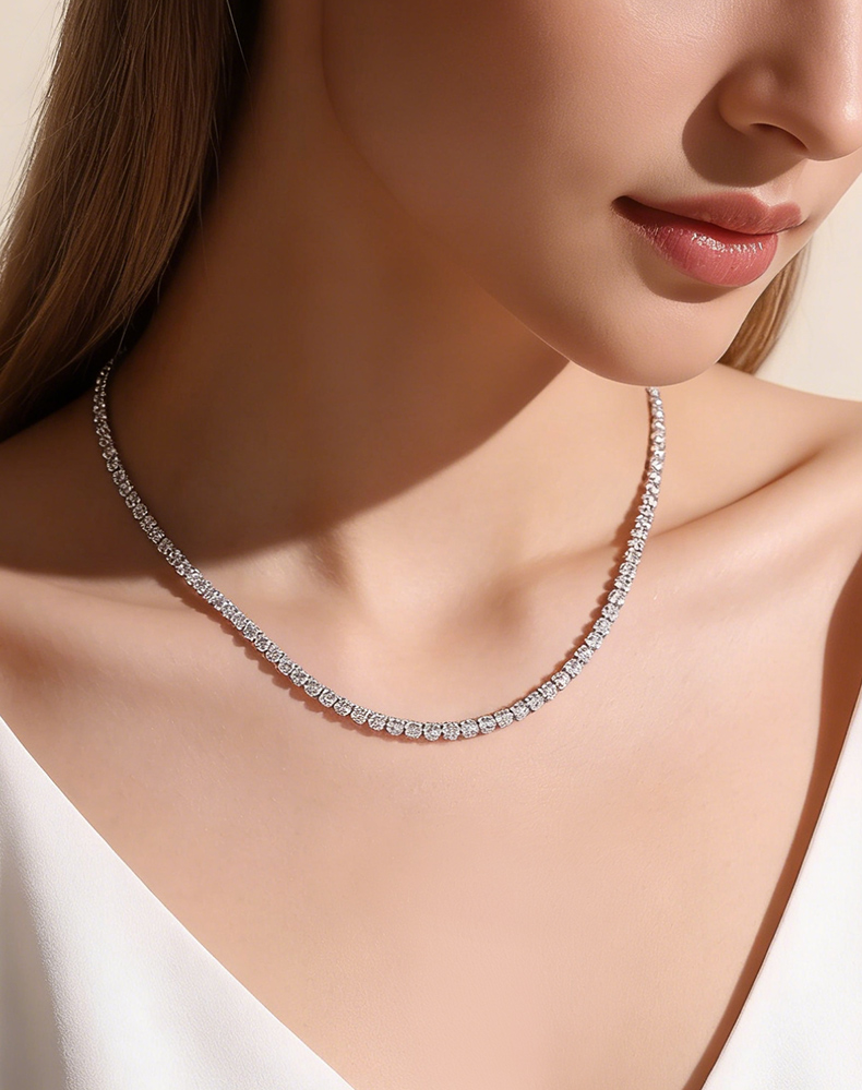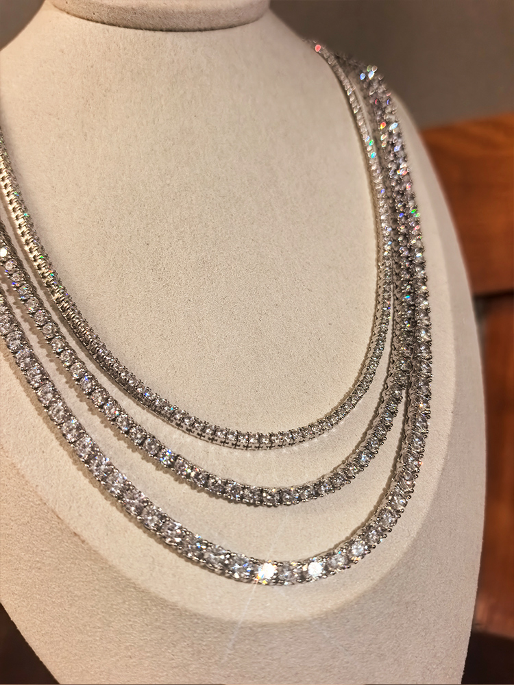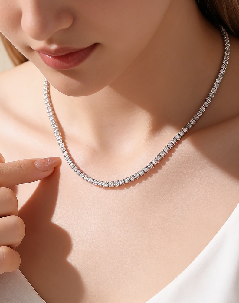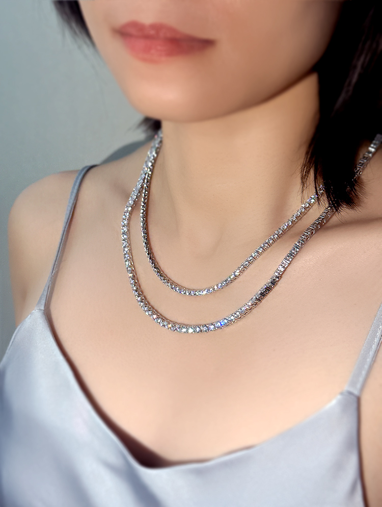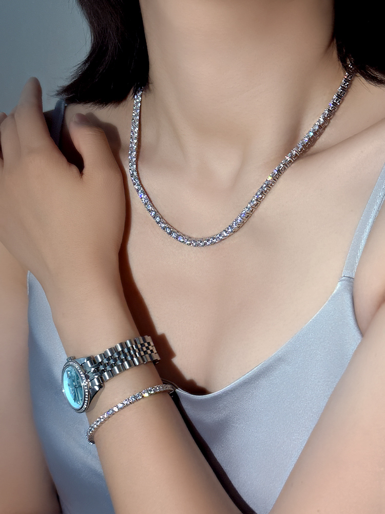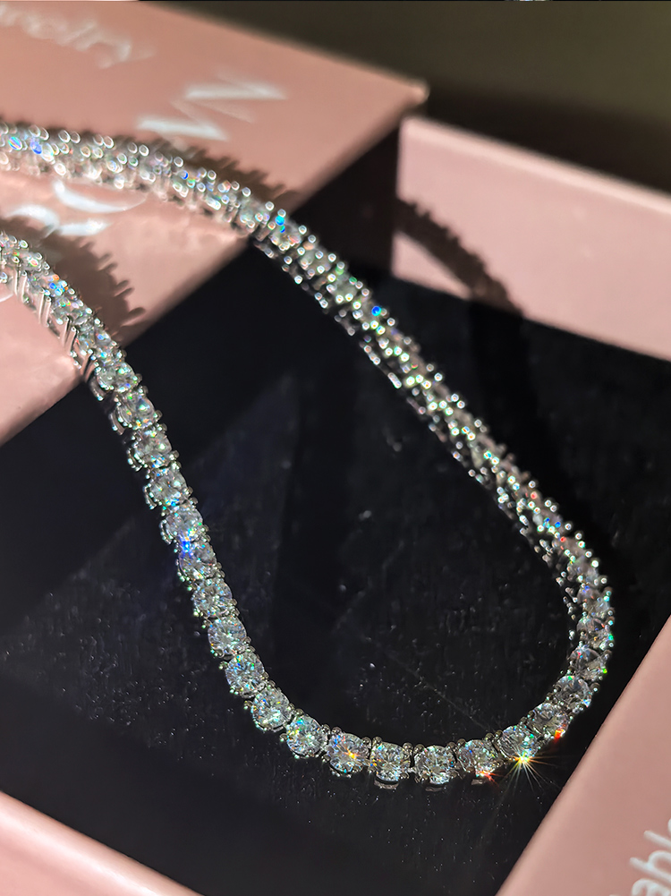 法国PARiCROWN微镶银白色满钻项链 2026新款网球项链 高级感满满