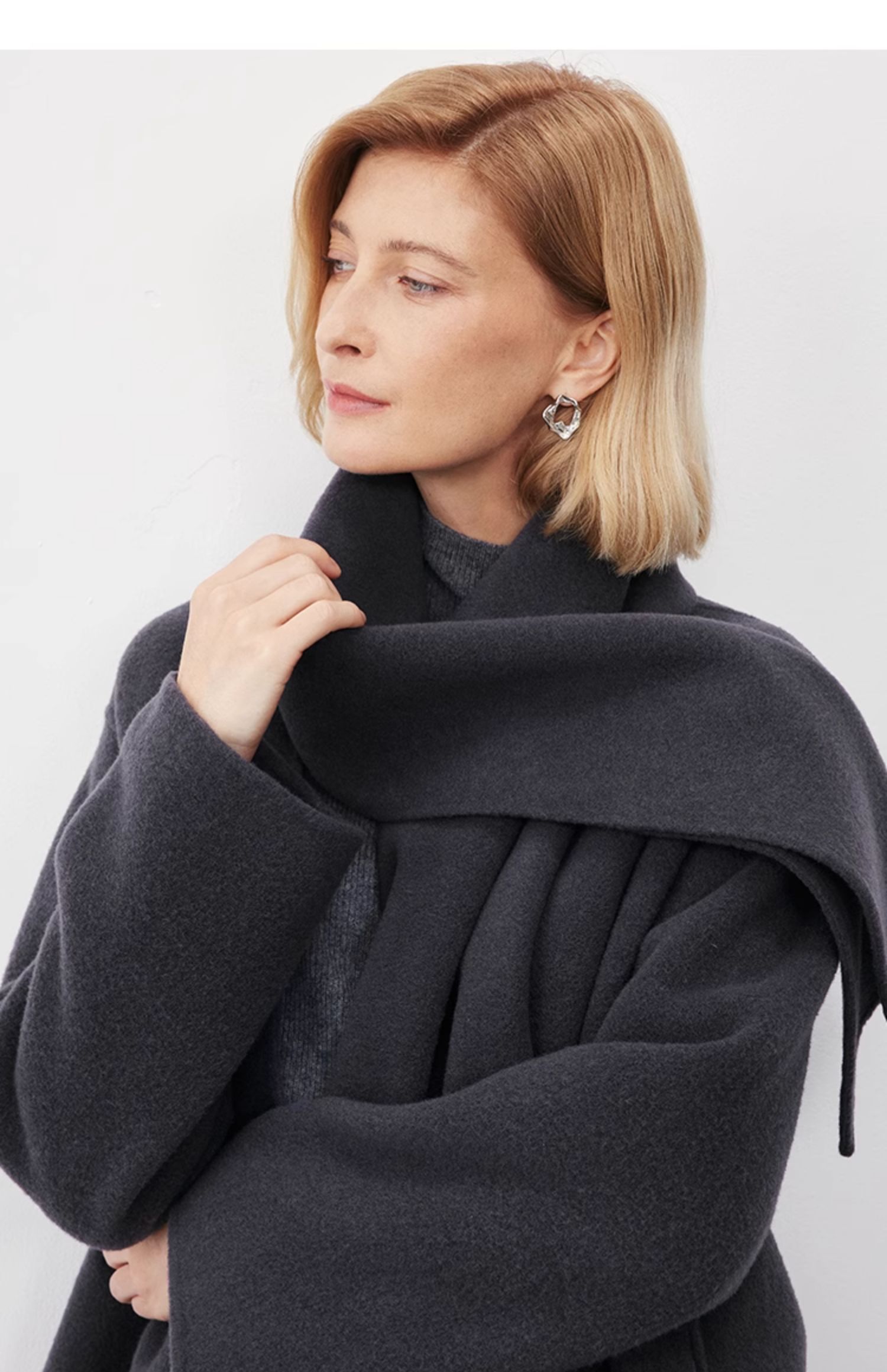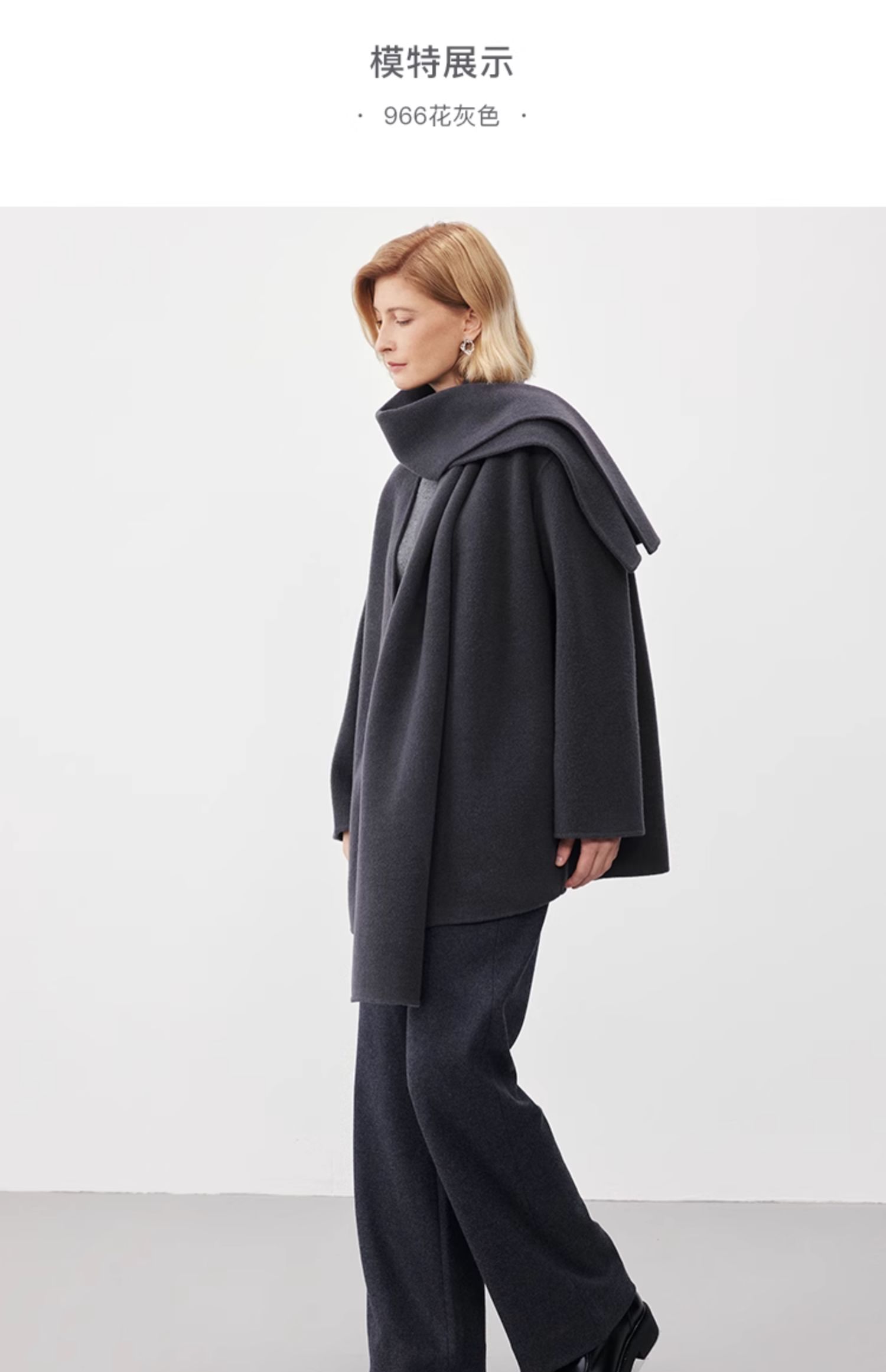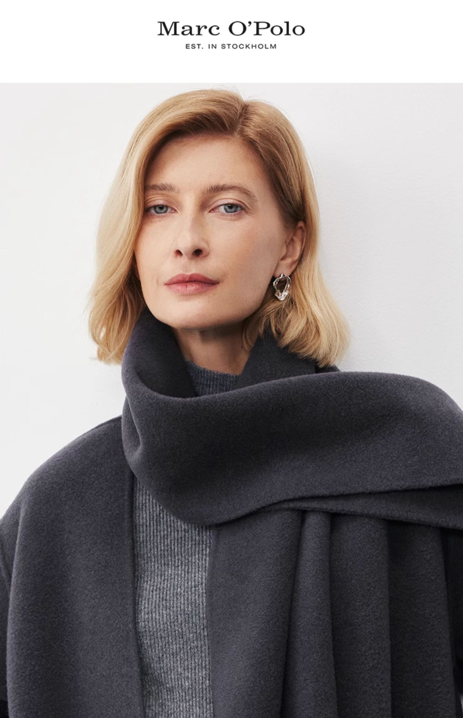 Marc O'Polo/MOP2024冬季新款围巾V领一手长羊毛外套毛呢大衣女士