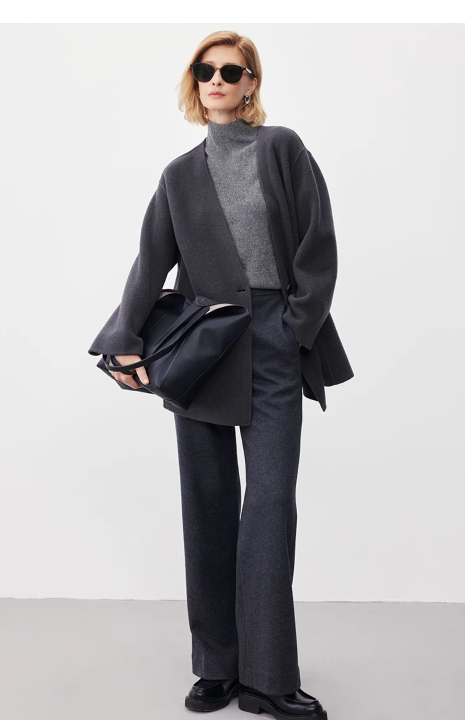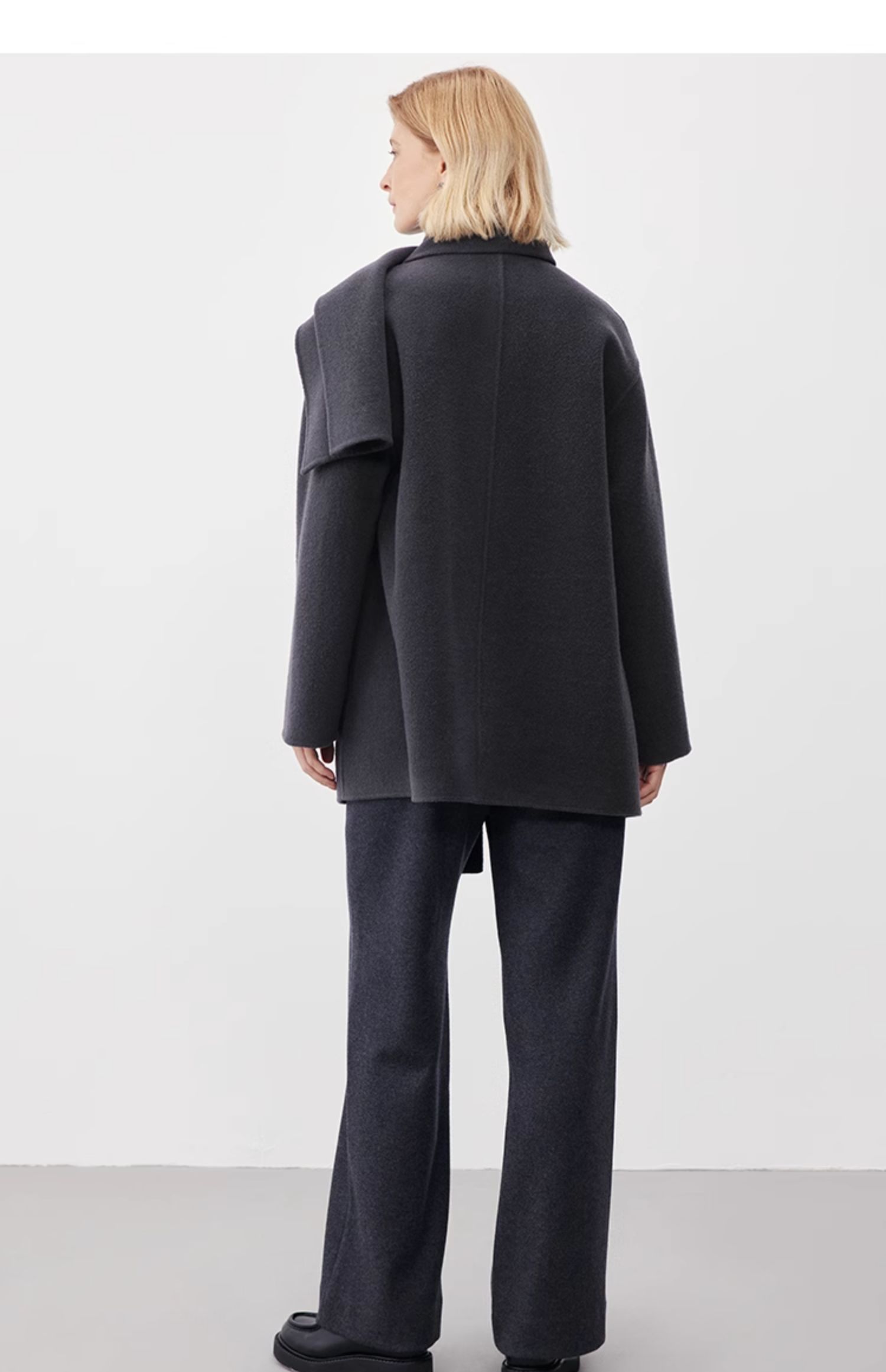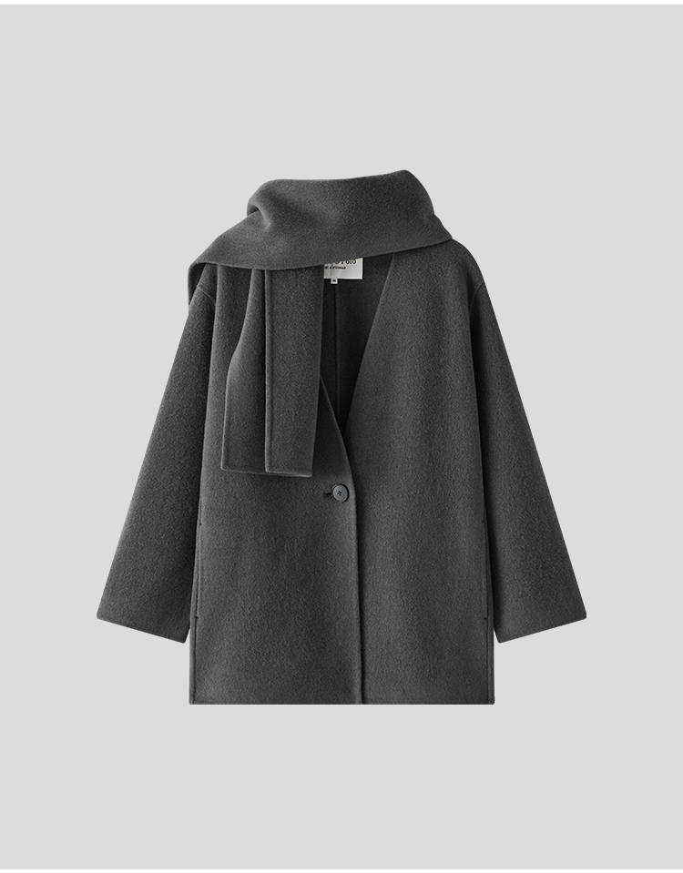 Marc O'Polo/MOP2024冬季新款围巾V领一手长羊毛外套毛呢大衣女士