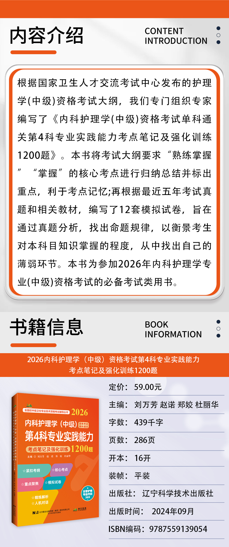 书名:2026内科护理学(中级)资格考试单科通关 第4科专业实践能力 考点笔记及强化训练1200题