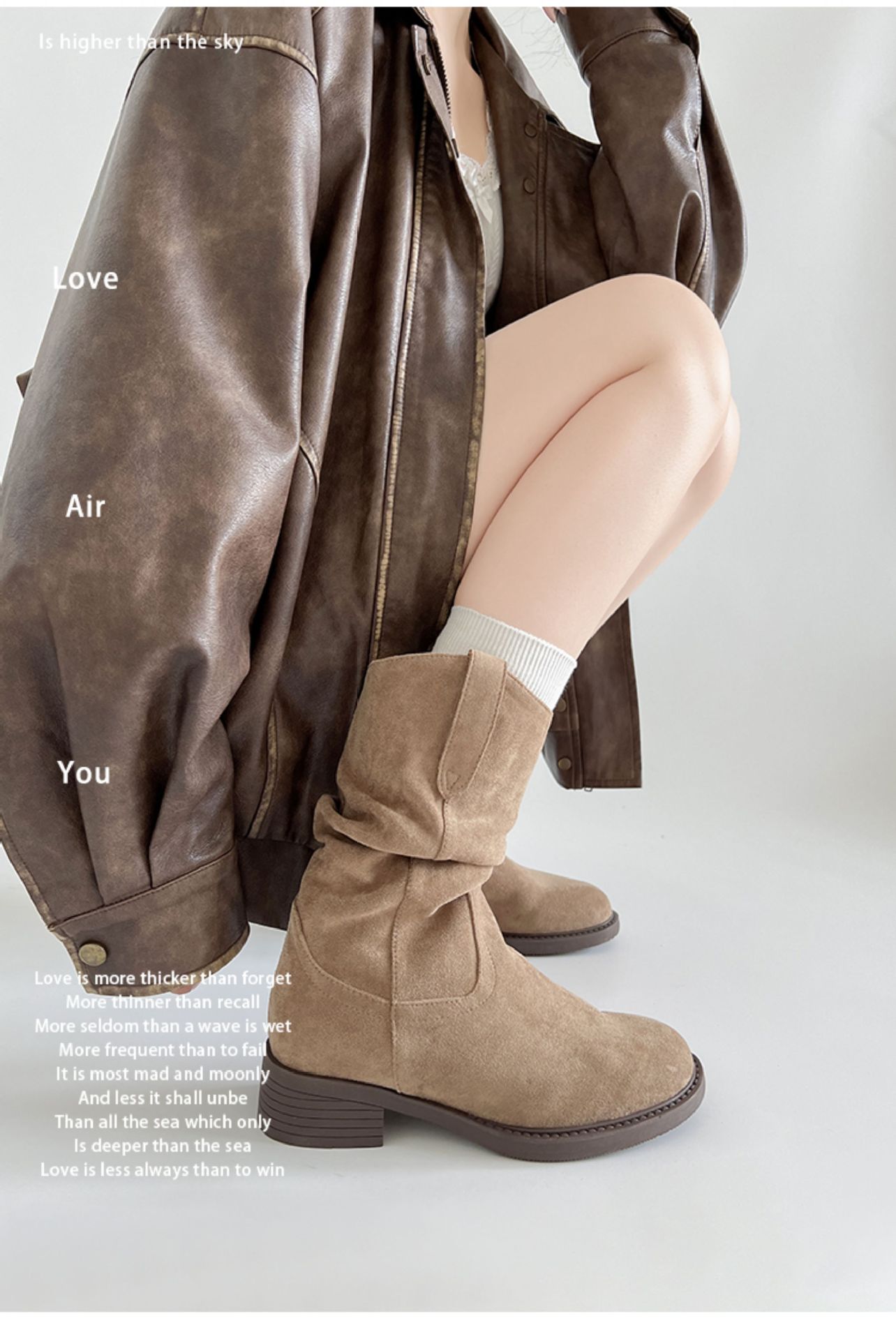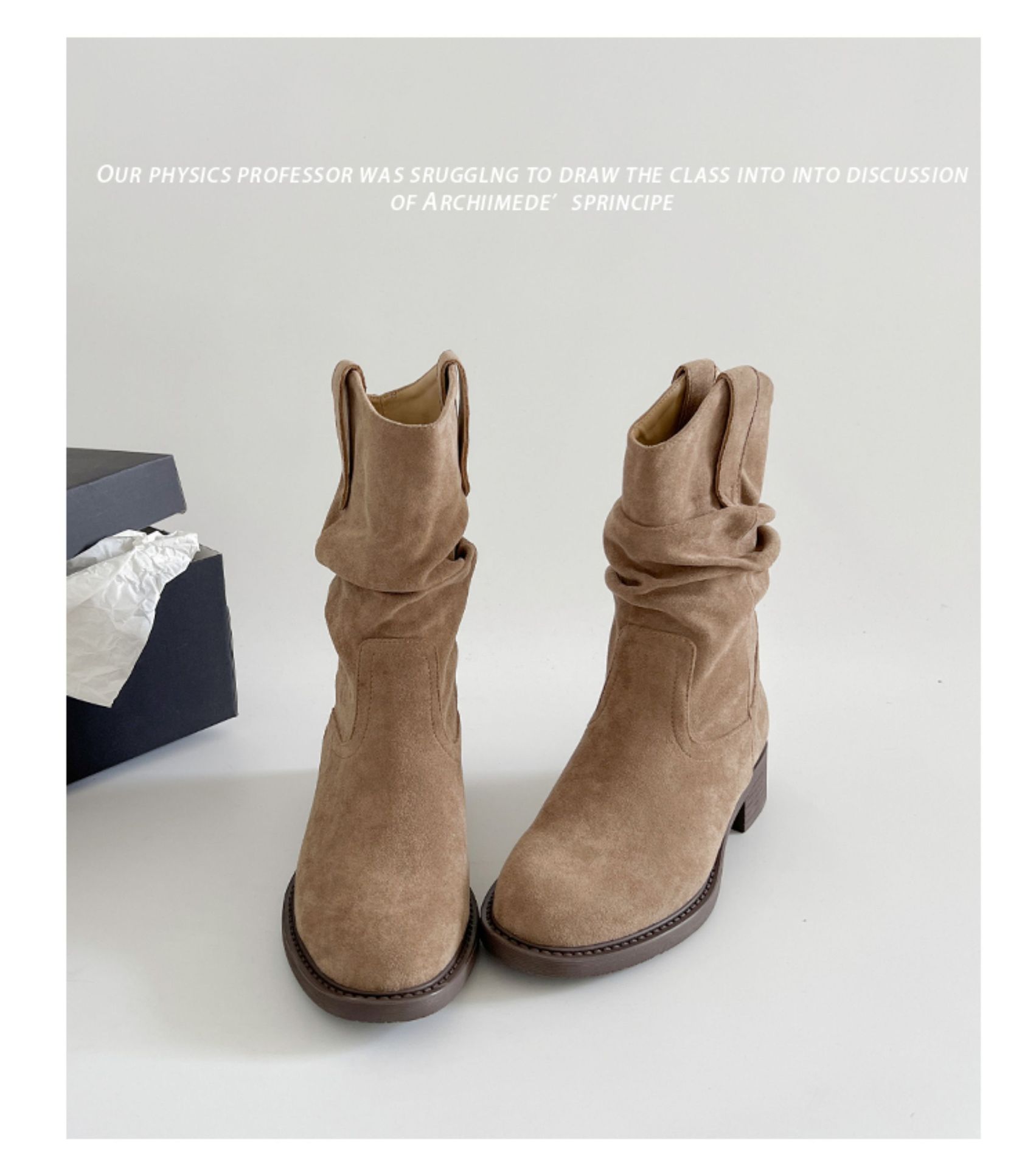 雪梵莱 【废土风美拉德堆堆靴】秋冬气质中筒 4cm跟高修饰腿型 显腿直显腿细 经典复古潮流百搭#Z