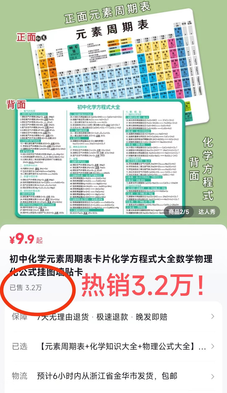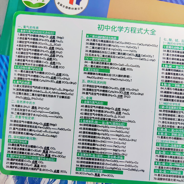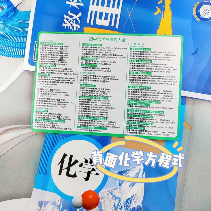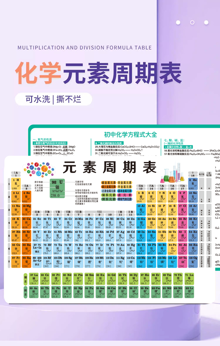 👀第一张元素周期表。正面提供了元素周期表的学习,背面则是初中化学公式的汇总。