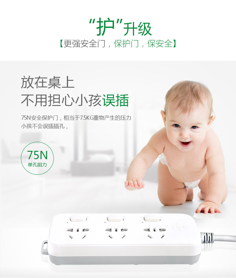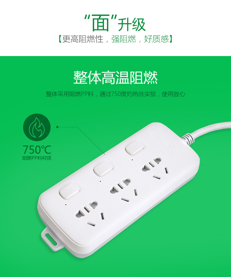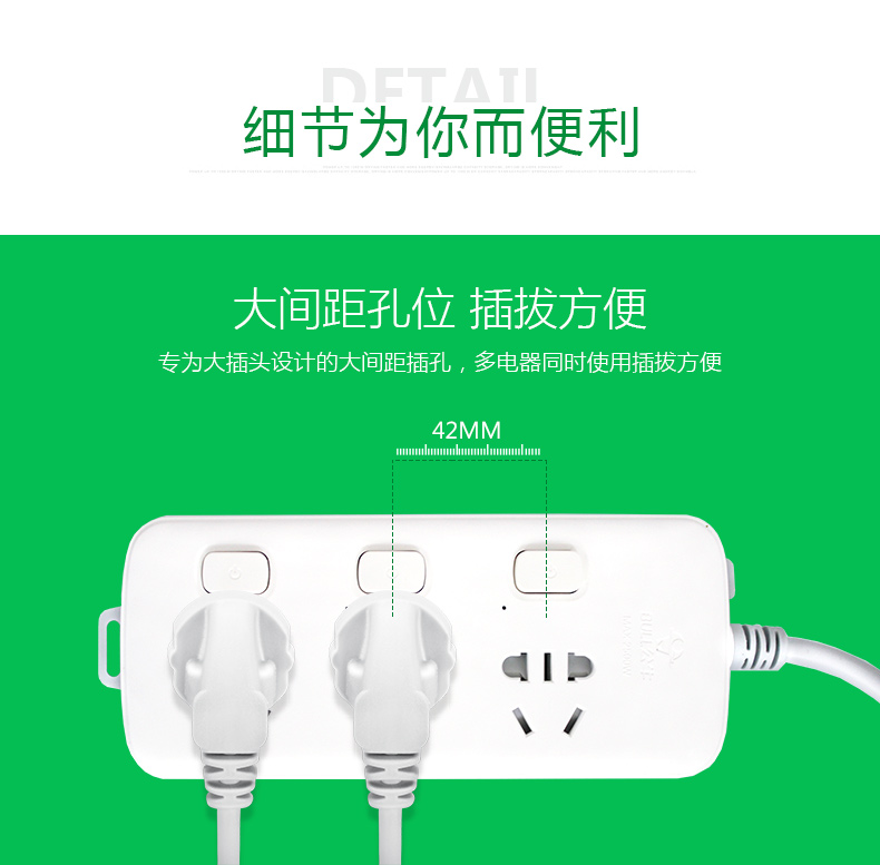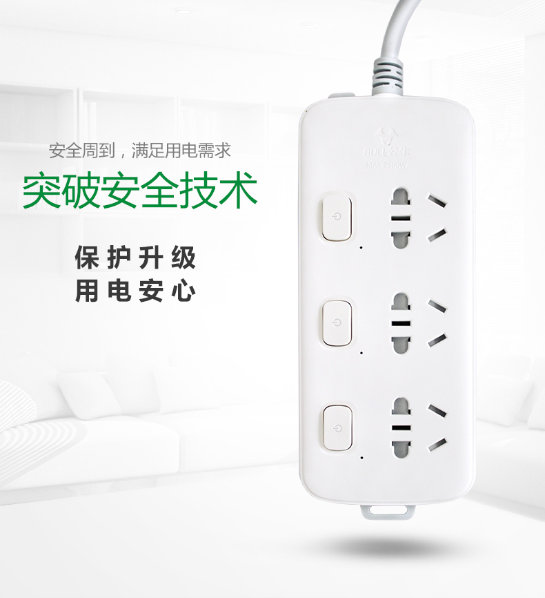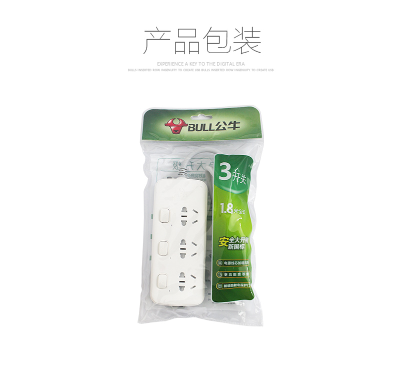 公牛(BULL)插座/新国标/排插/接线板 S1033全长1.8米