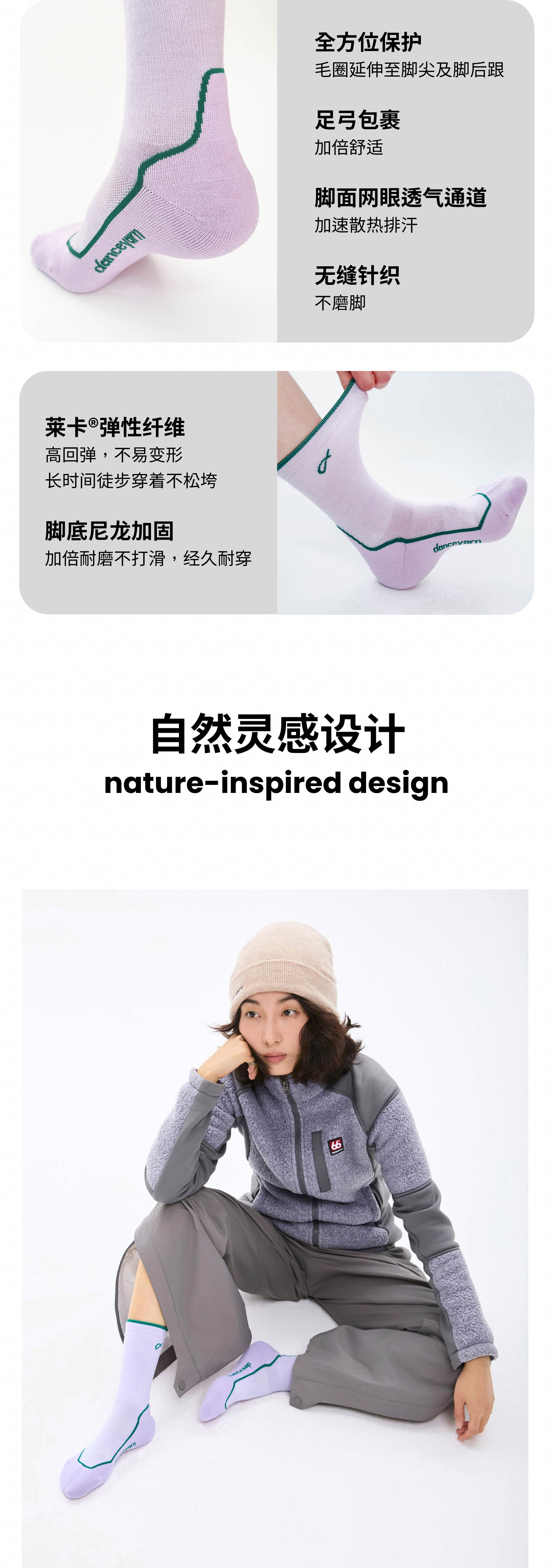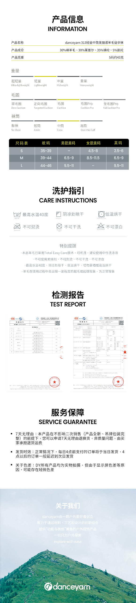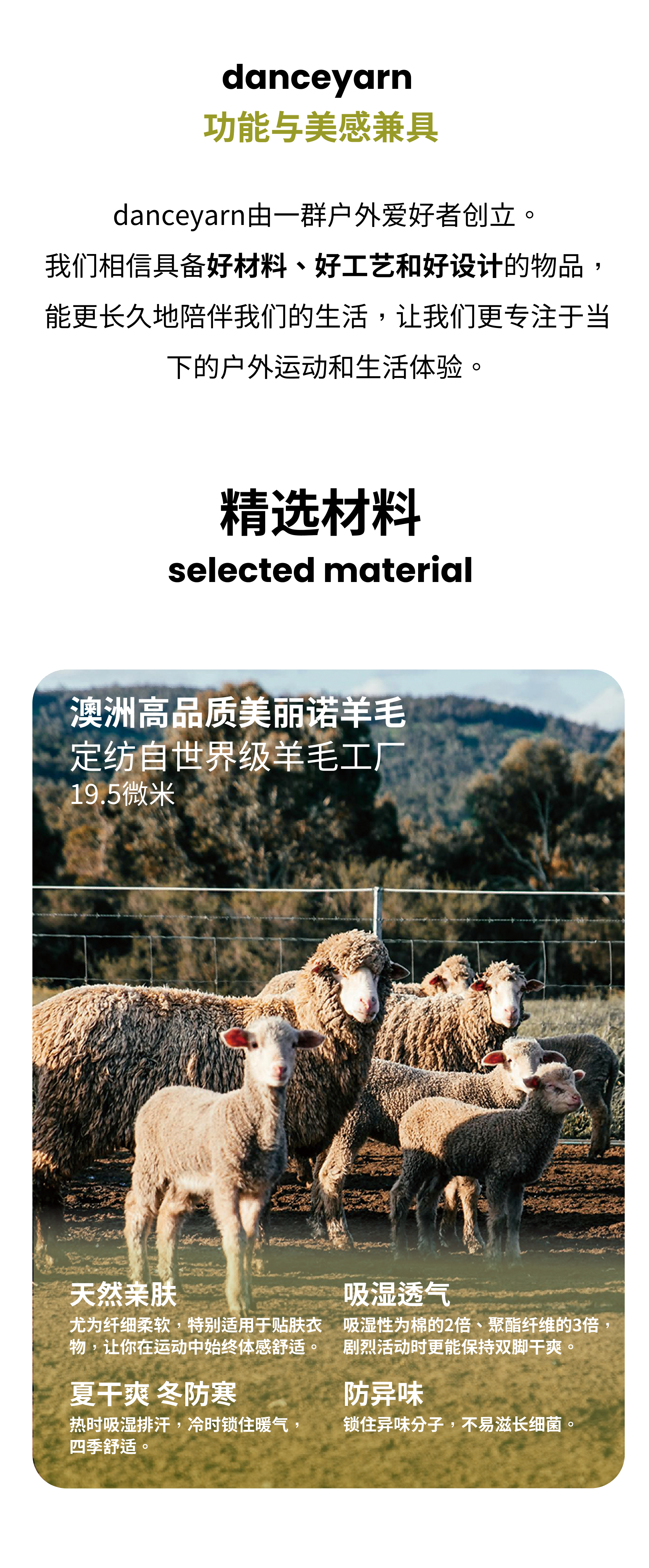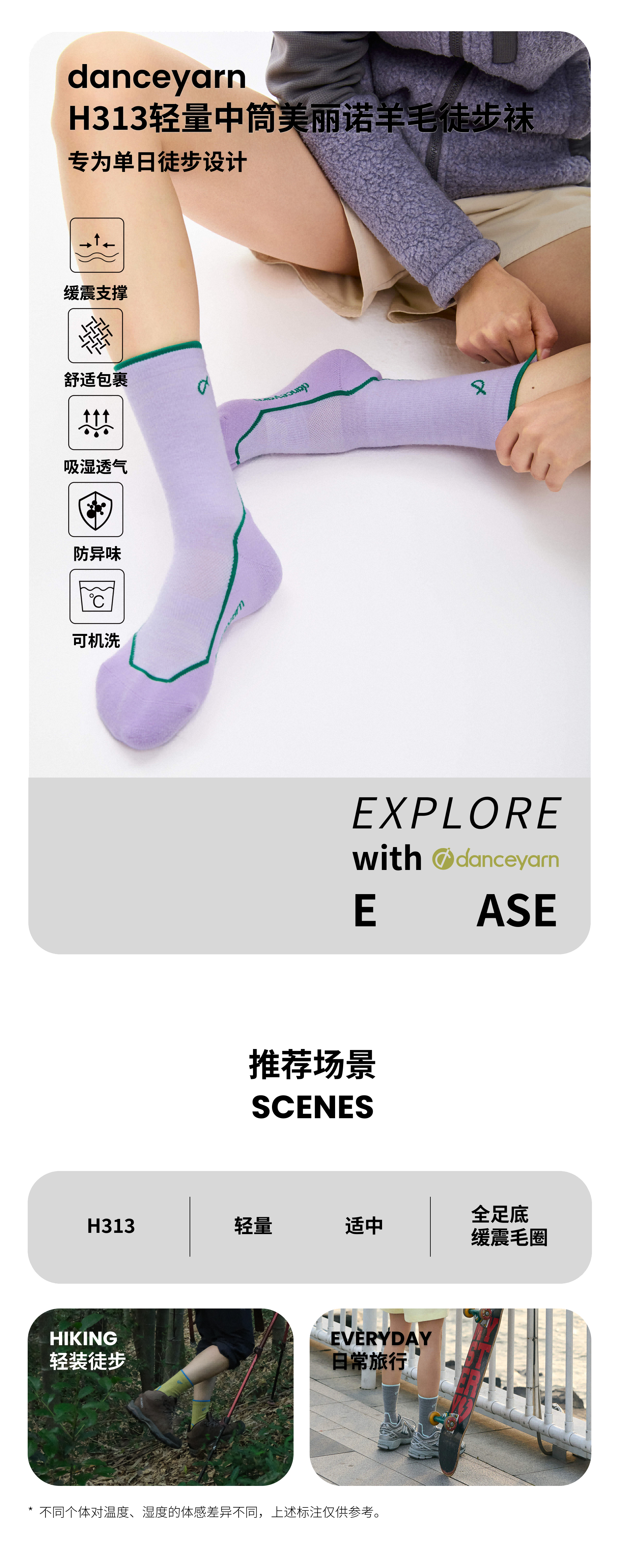 danceyarn H313轻量中筒美丽诺羊毛轻装徒步袜单日徒步干爽透气防异味