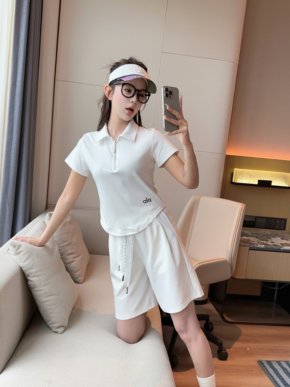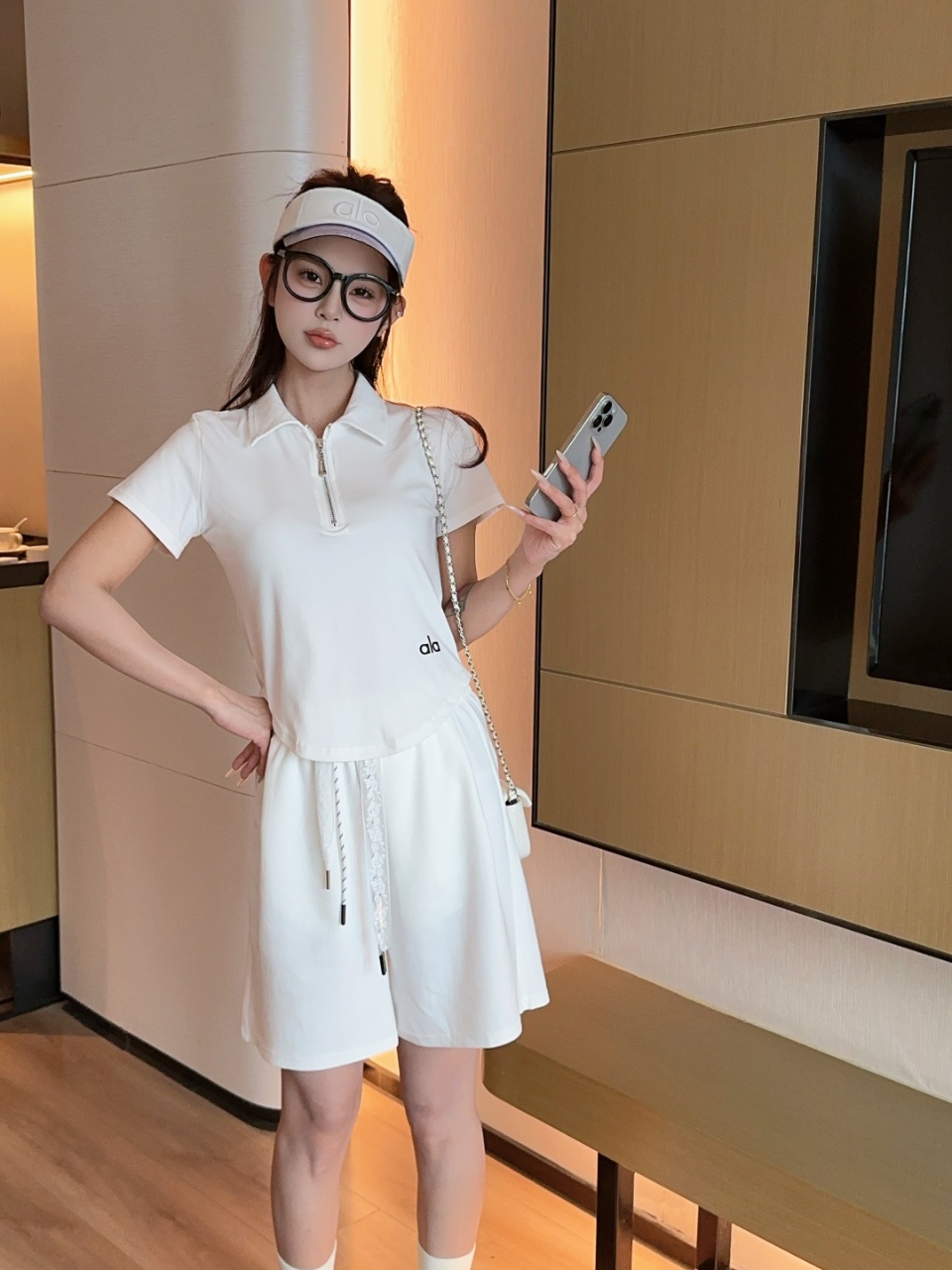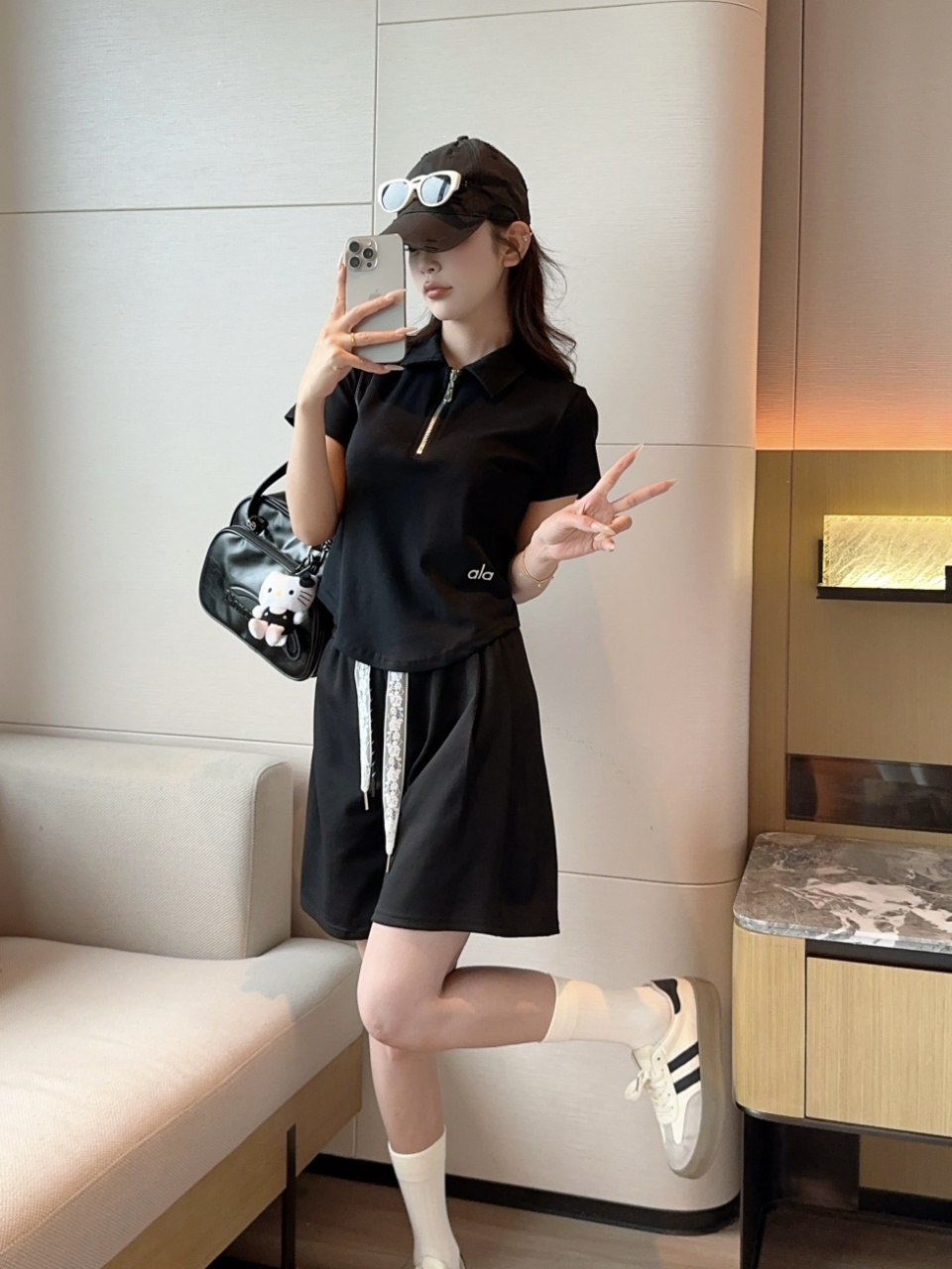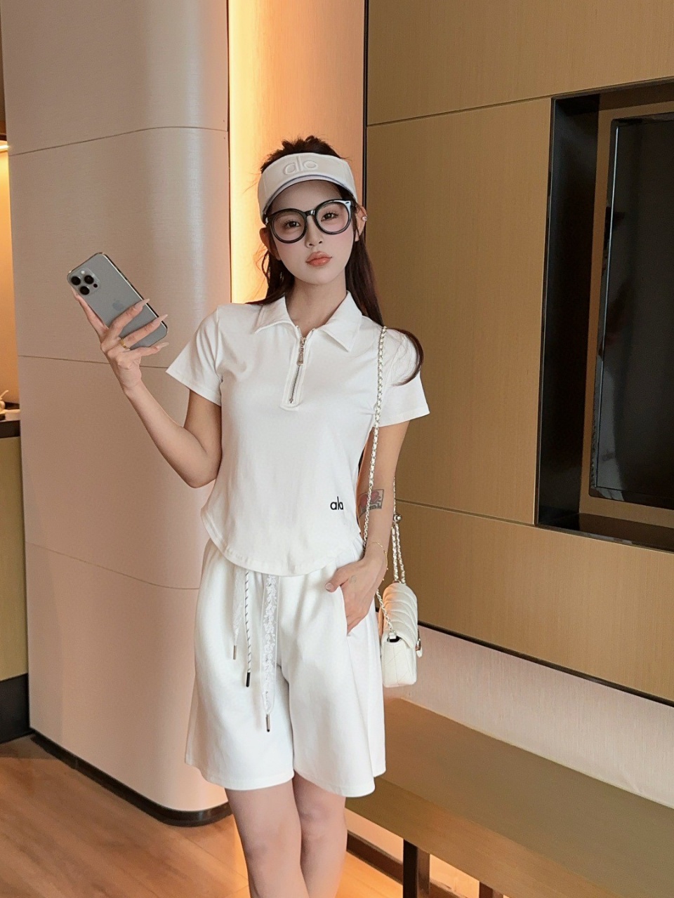 【YW】无忧购韩版修身翻领运动短袖T短裤两件套纯色百搭款610 710(截单后3-5天发货)