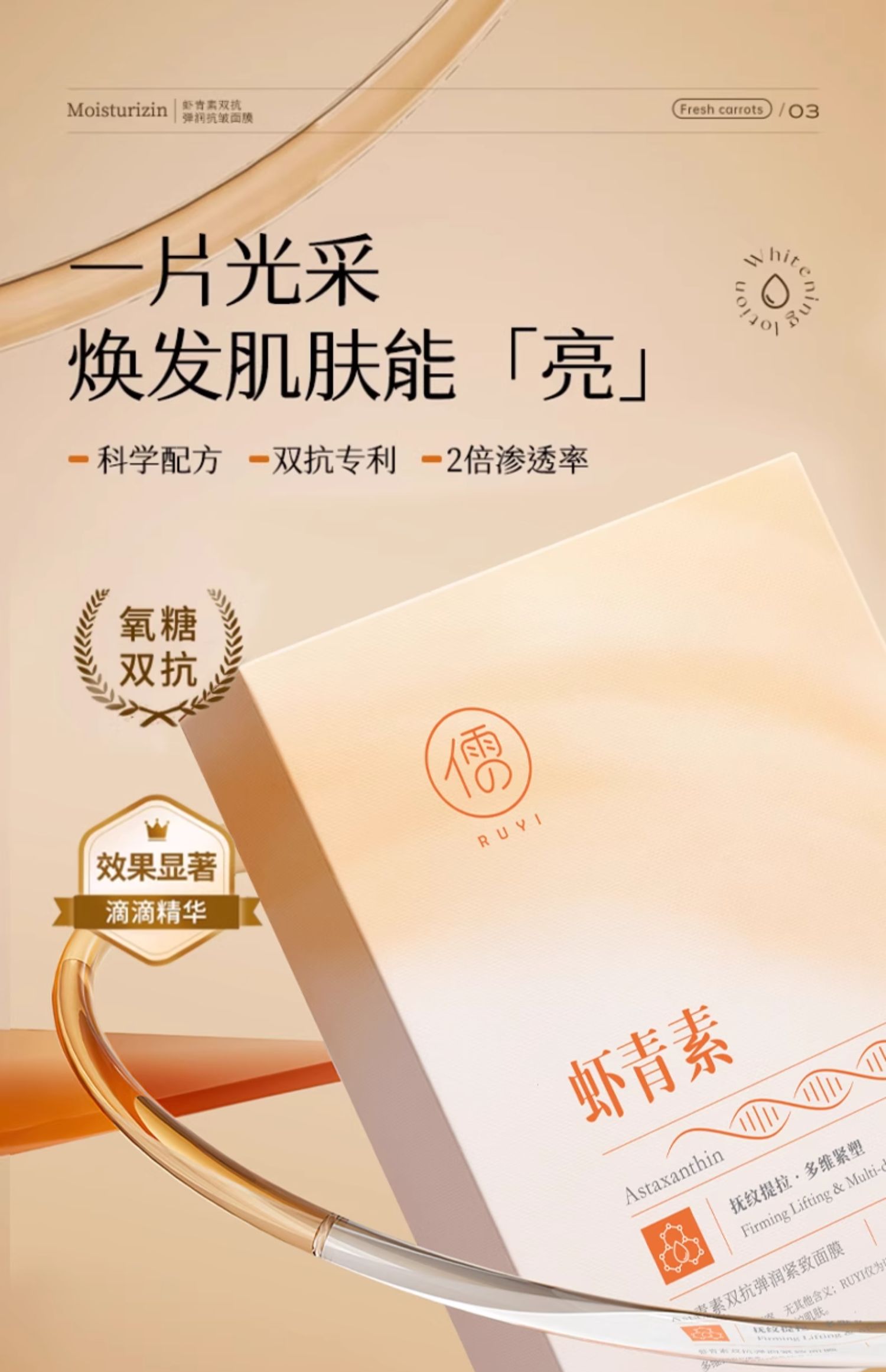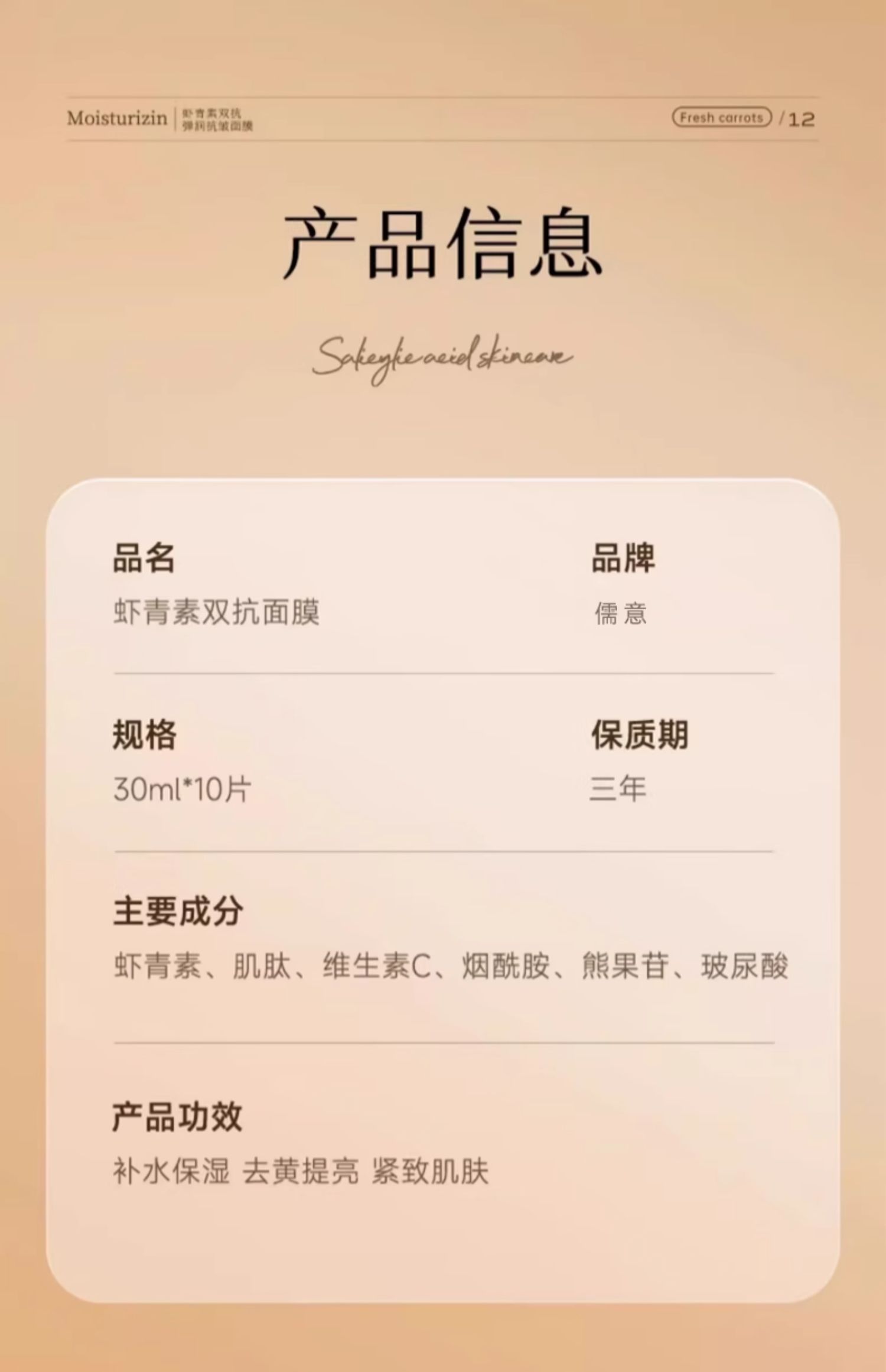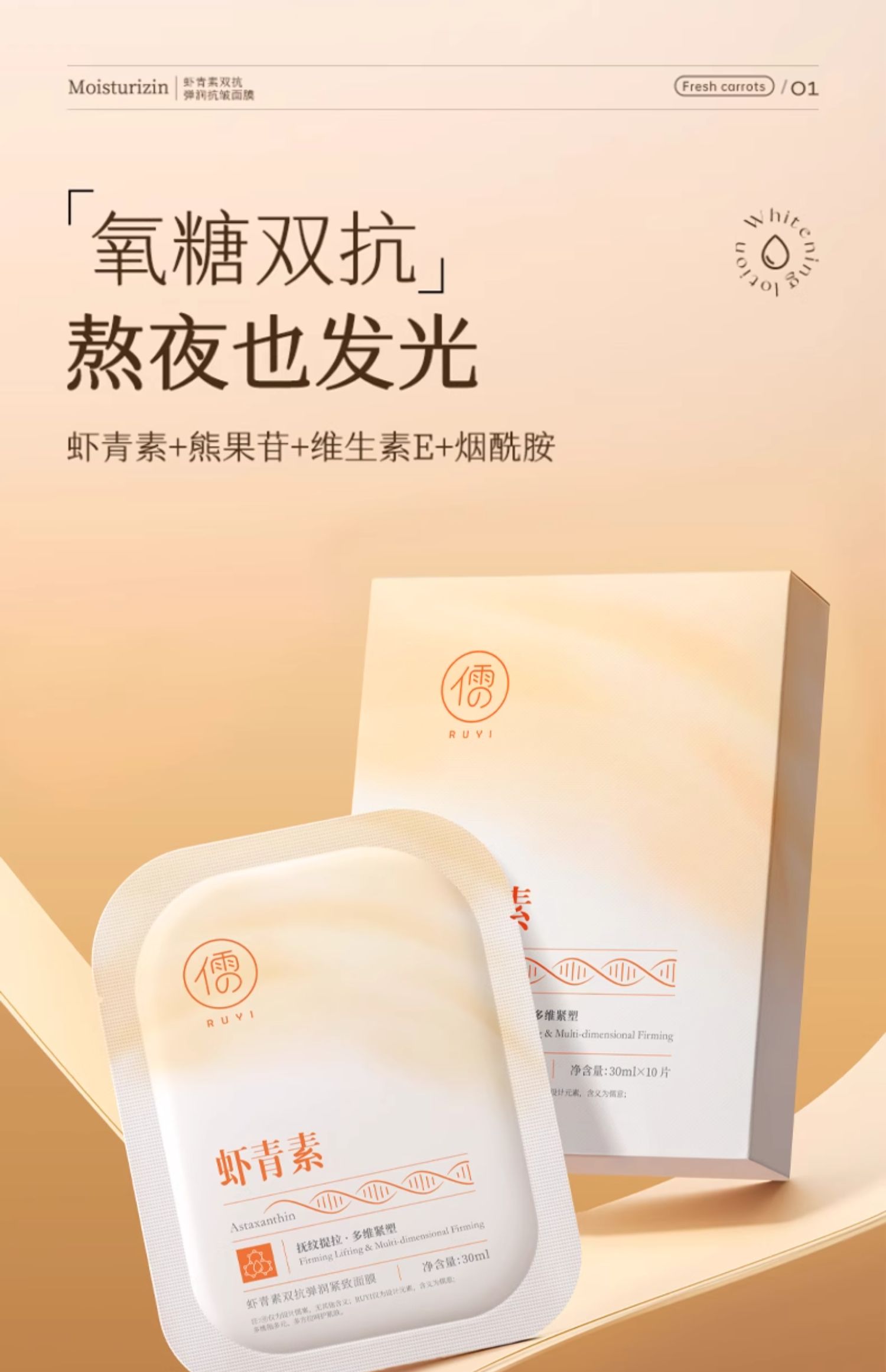 专属 儒意虾青素双抗面膜补水保湿美白抗氧去黄气暗沉抗皱紧致抗衰老