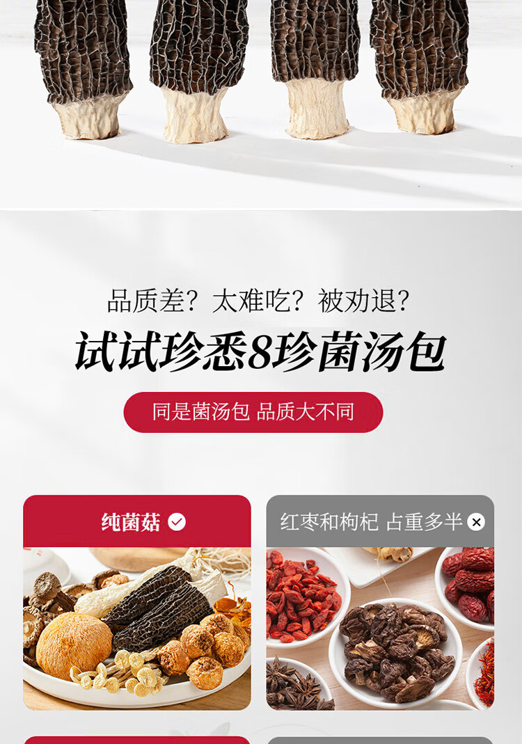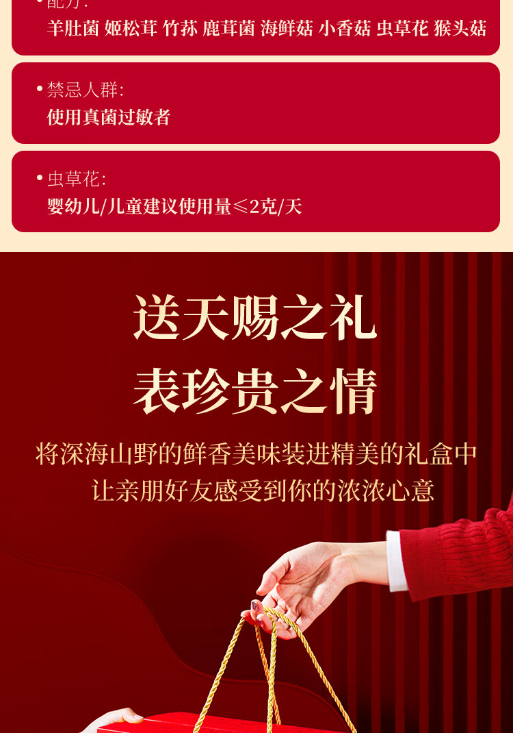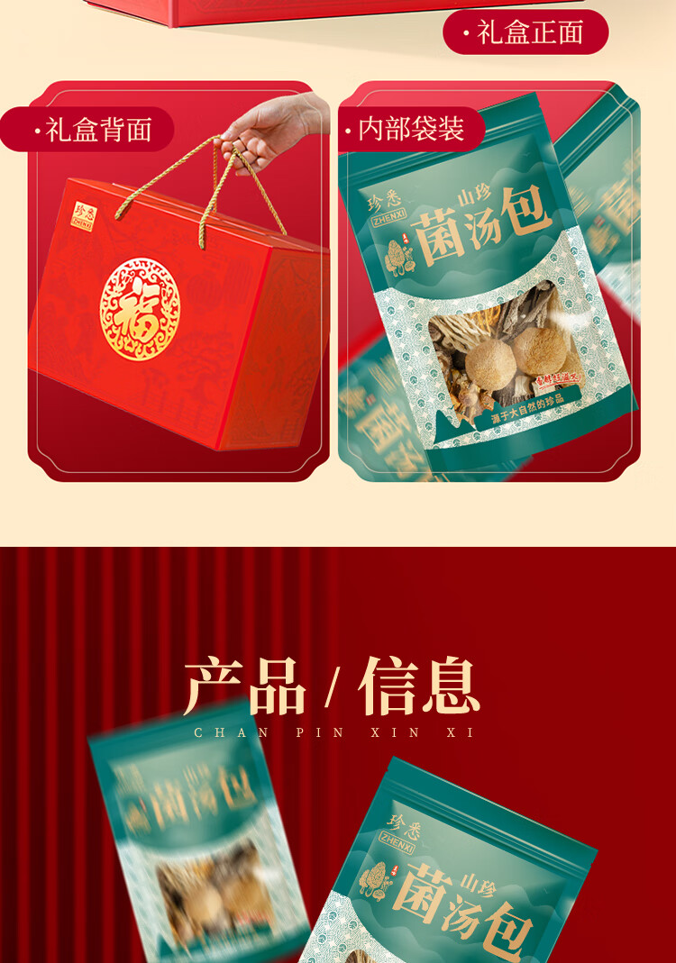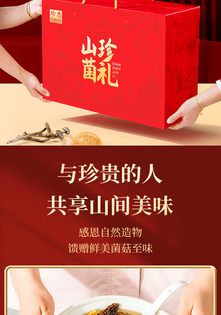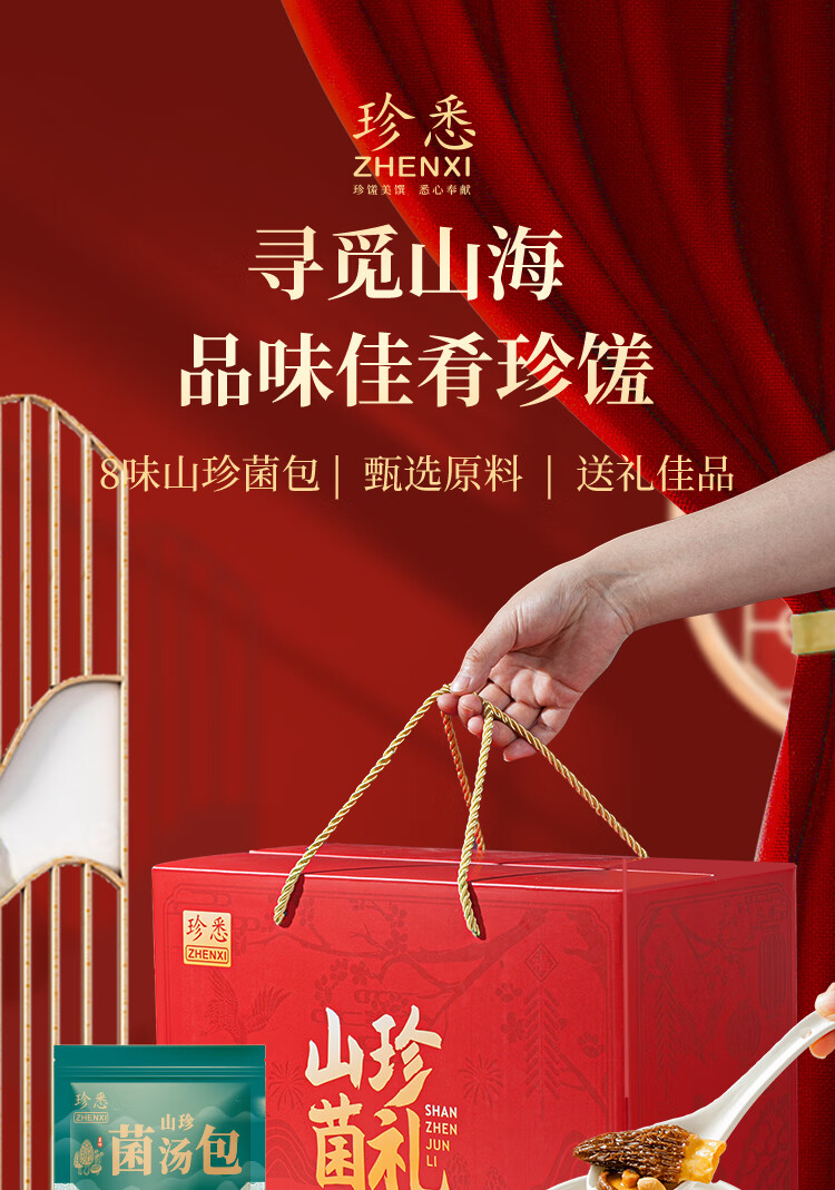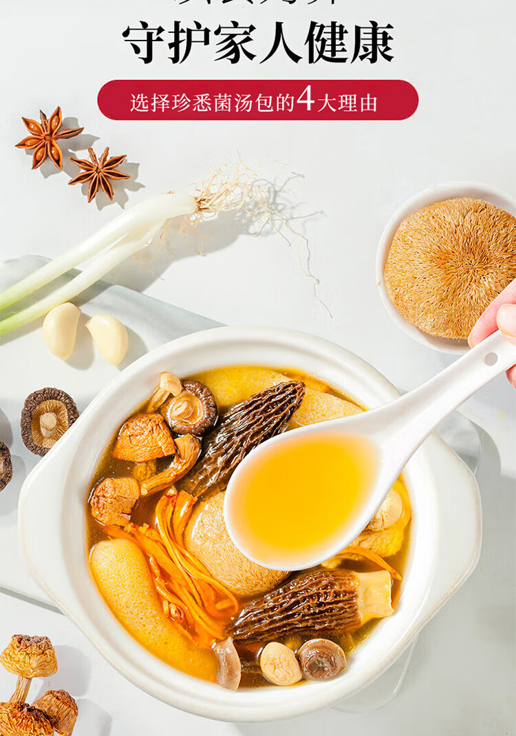 【中秋礼盒】珍悉 菌菇汤包礼盒(羊肚菌、姬松茸、竹荪、鹿茸菌、海鲜菇、小香菇、虫草花、猴头菇)350g(70g*5袋) 珍馐美味 悉心奉献