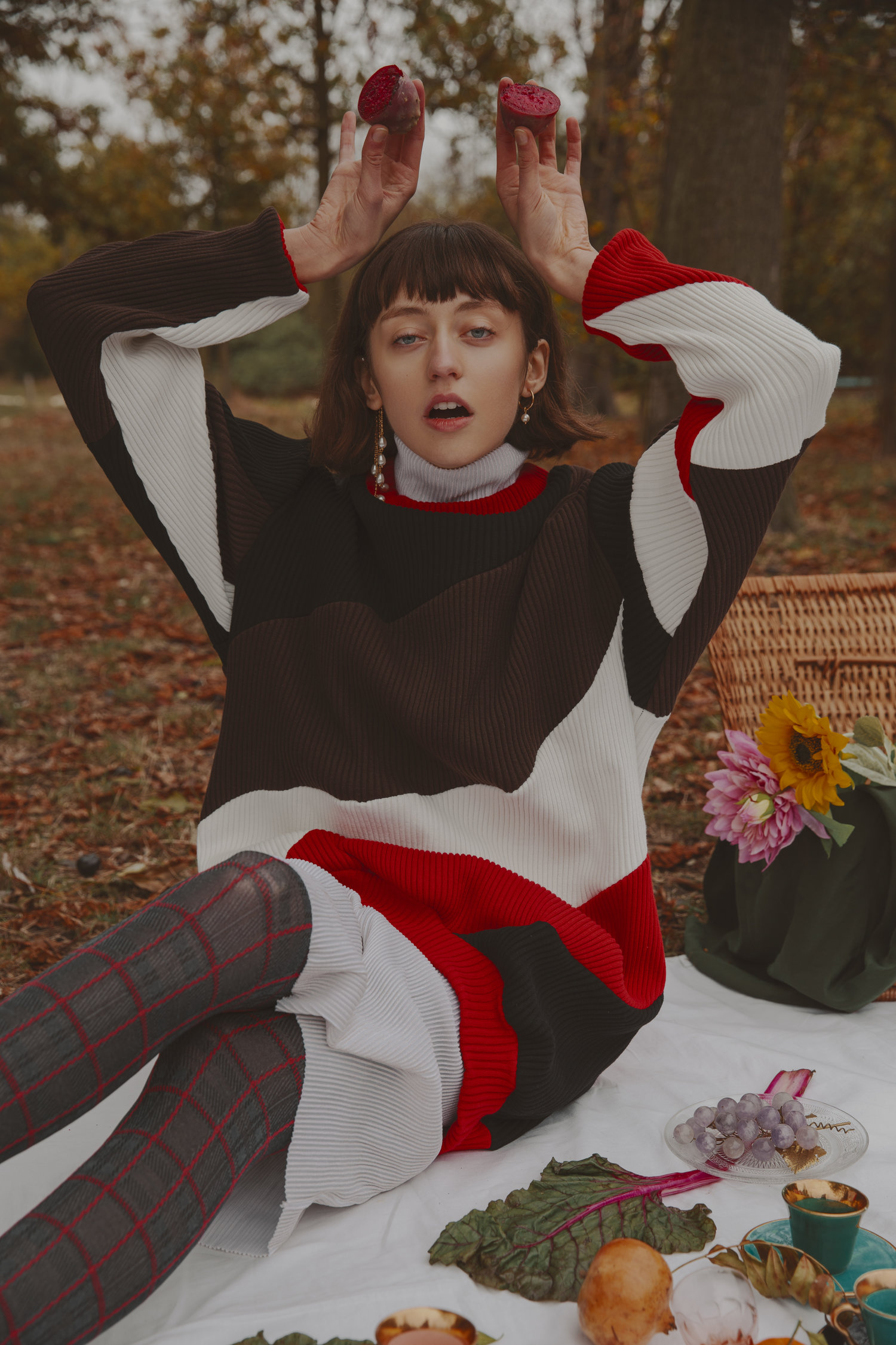 TYNVIE 荷叶边袋口装饰廓形西装-蓝色白点