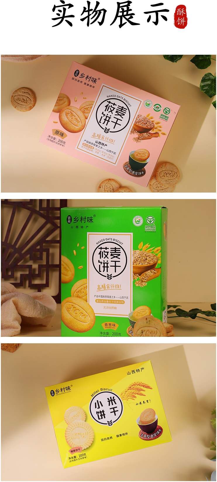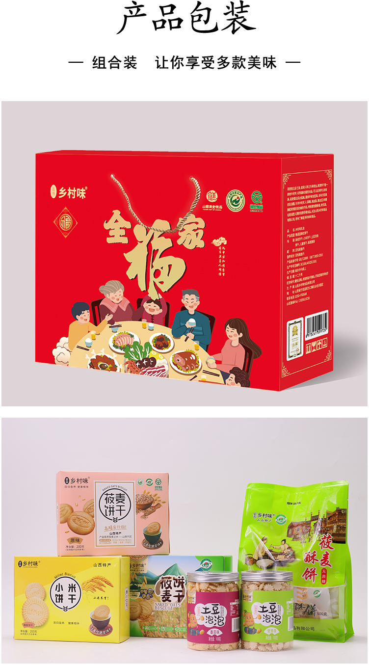 乡村味莜麦饼干综合装杂粮饼干五谷杂粮全家福大礼包送人送礼装1100g盒装