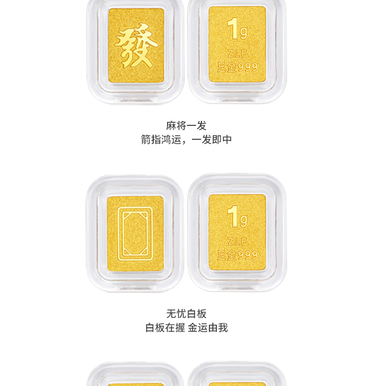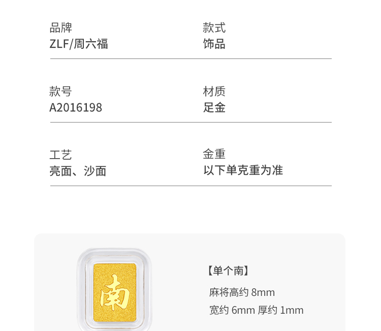周六福黄金国潮麻将十三幺投资金小金豆实心小金条收藏节日礼物