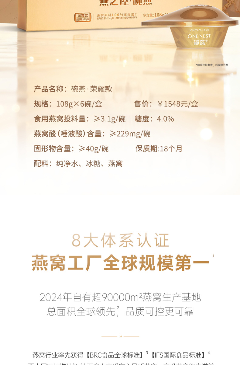 【官方直营◆商场同款】燕之屋碗燕即食燕窝荣耀108g*6碗 高端礼盒装 滋补燕窝印尼|春季滋补 送礼礼盒 商务礼盒【认准旗舰店】