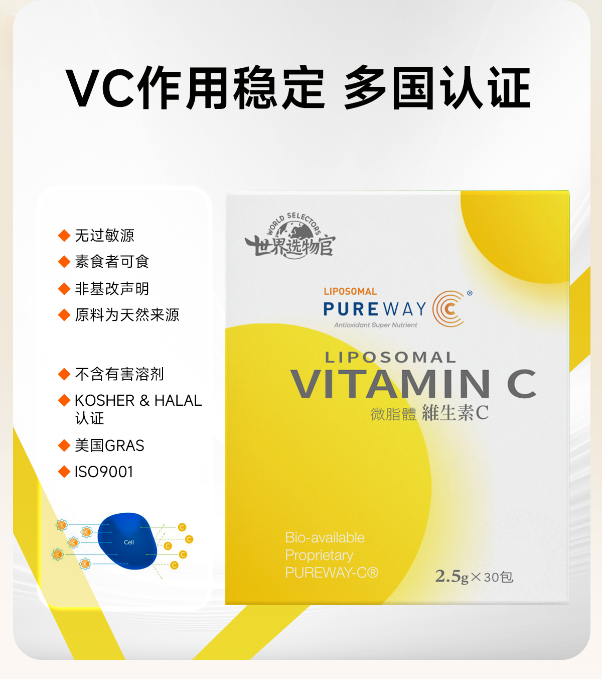 世界选物官微脂体VC类黄酮不含赤藻糖30条/盒对胃友好