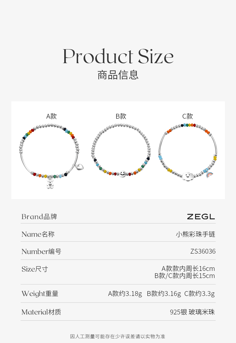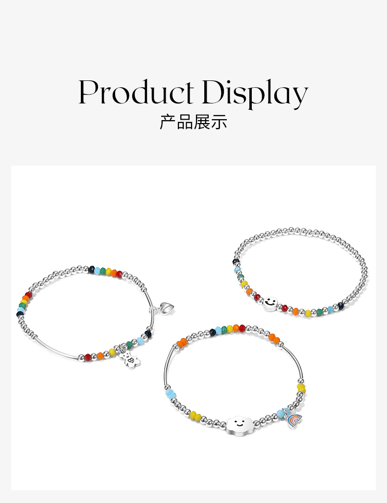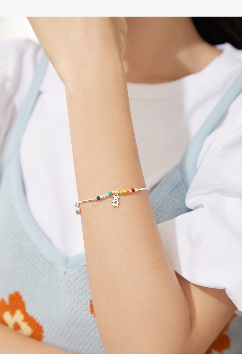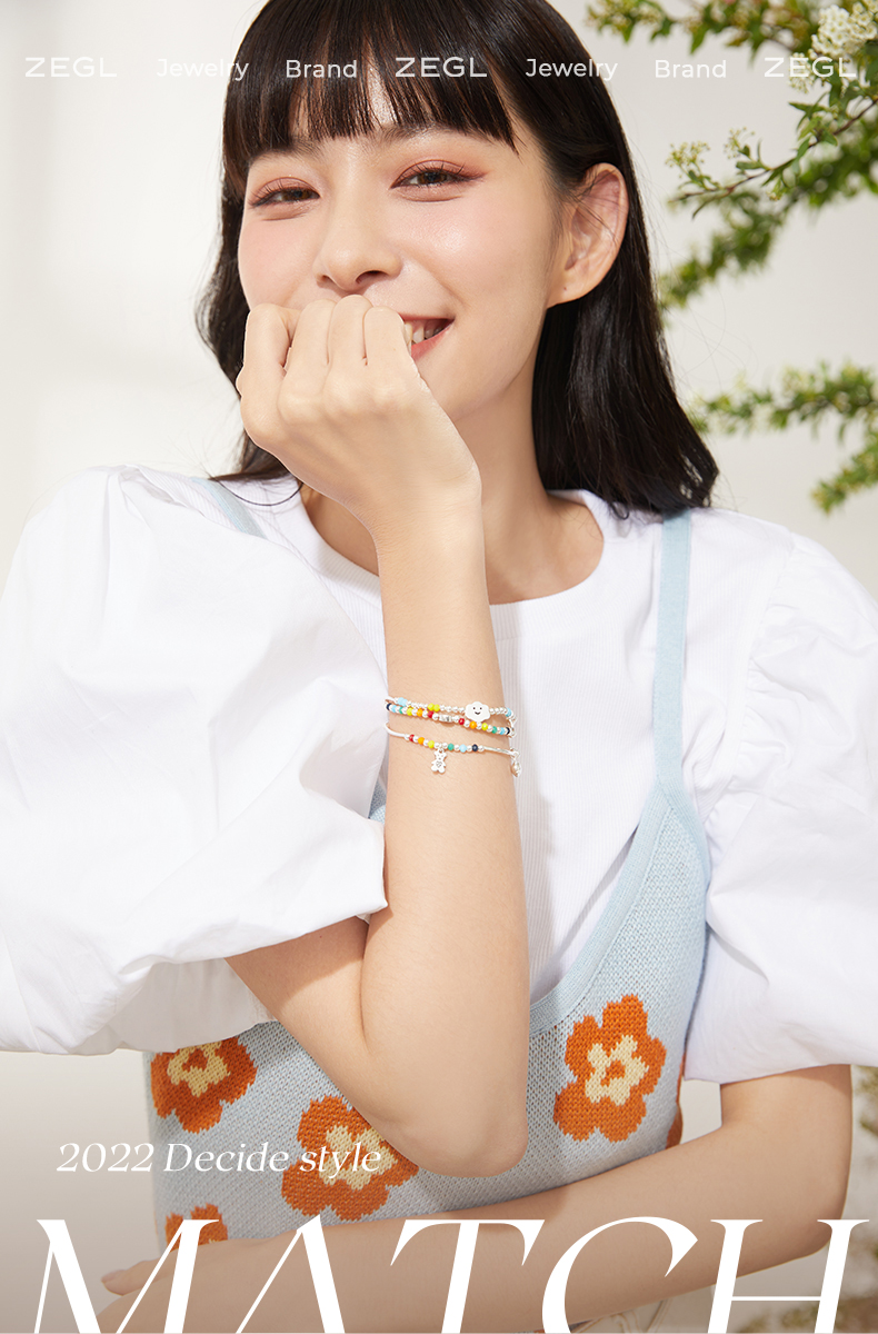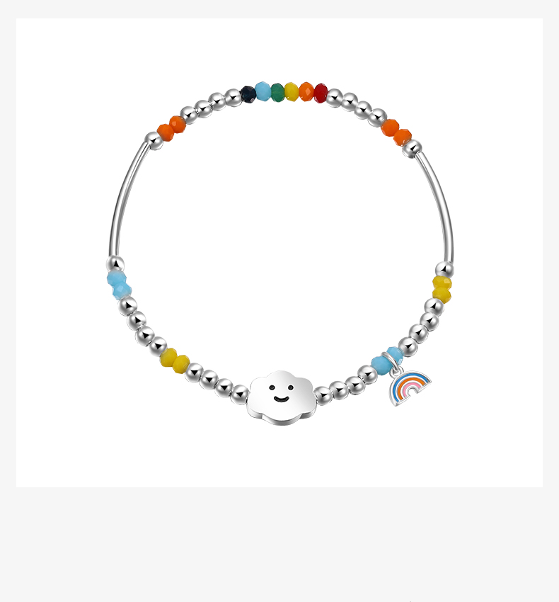 ZEGL小彩串彩虹串珠手链女生925纯银夏日多巴胺穿搭彩色笑脸手饰