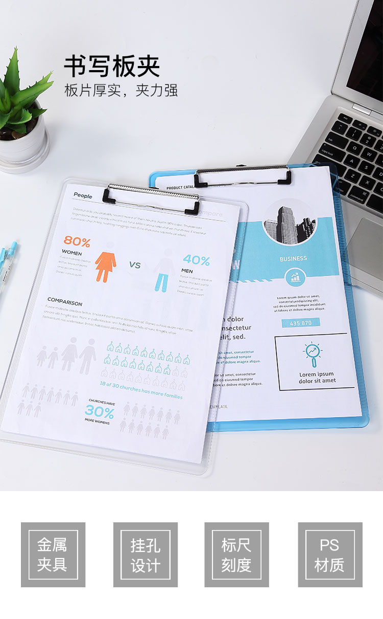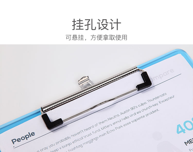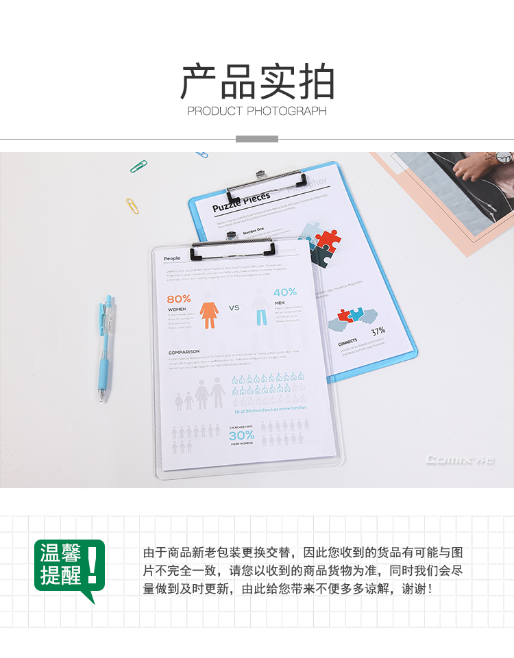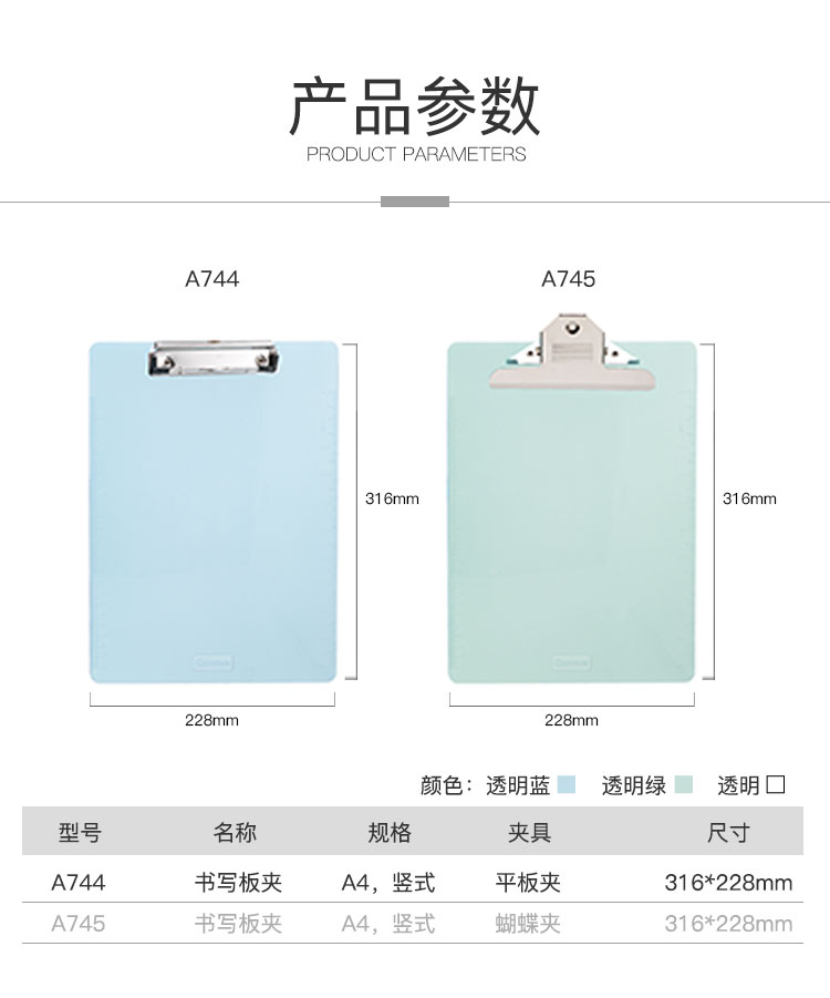 齐心(Comix) A4带刻度便携式书写板夹文件夹 可吊挂垫板 A744 透明蓝 单个装