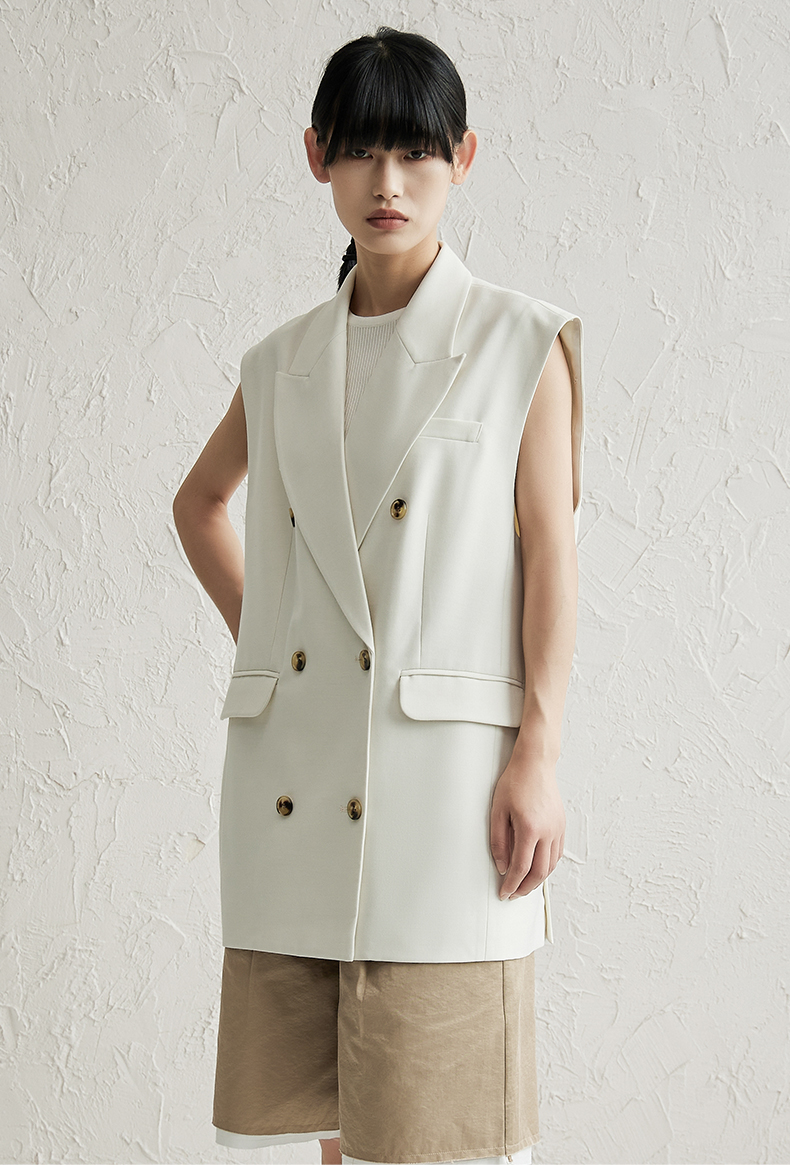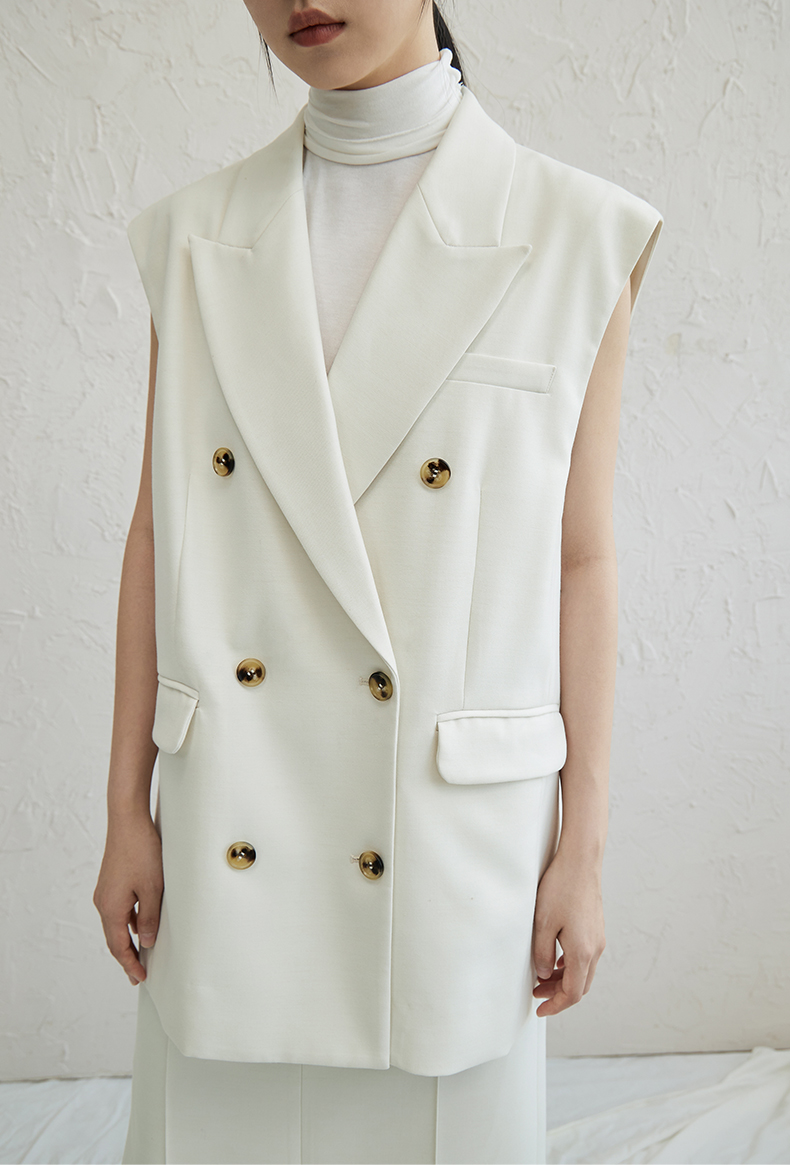 oldcolour高级感翻领西装马夹2022秋新款立体剪裁无袖气质外套女