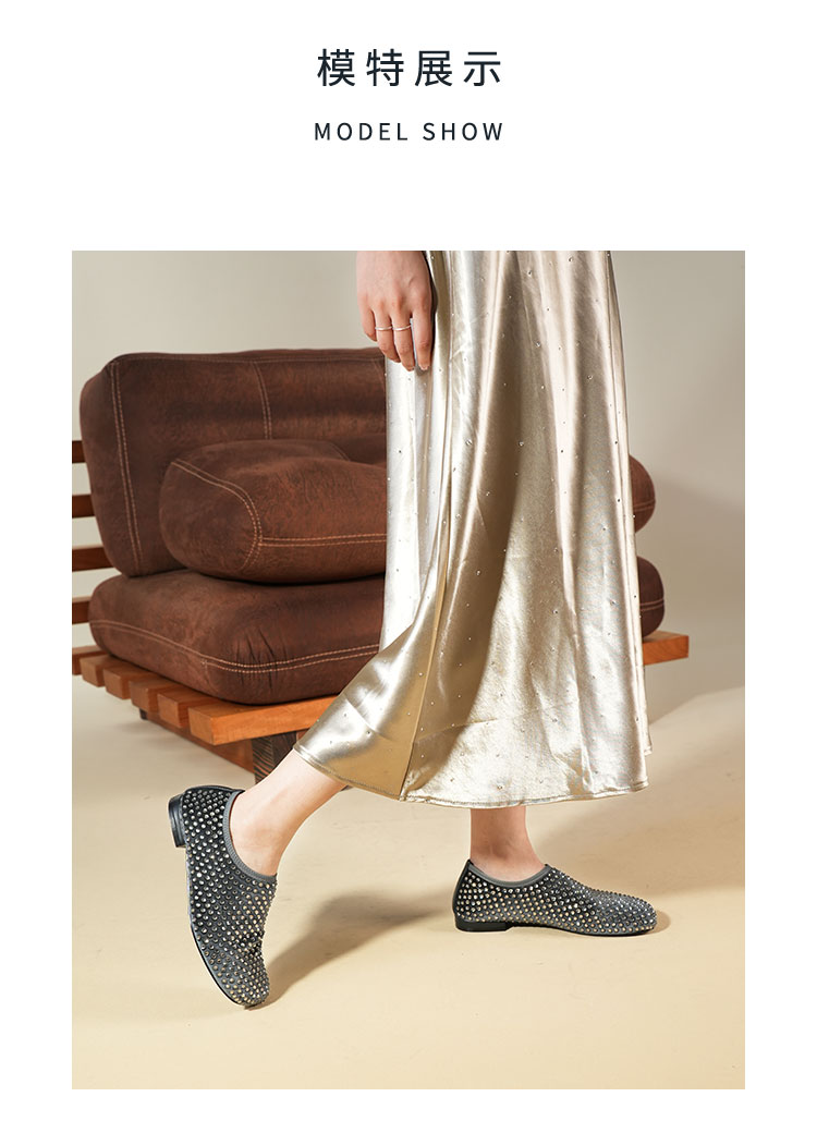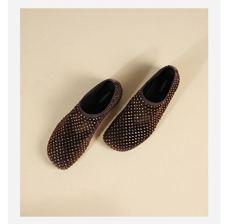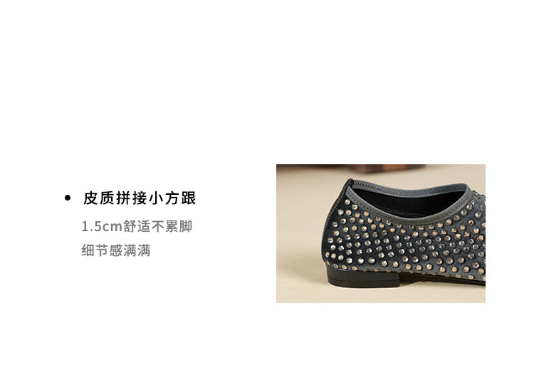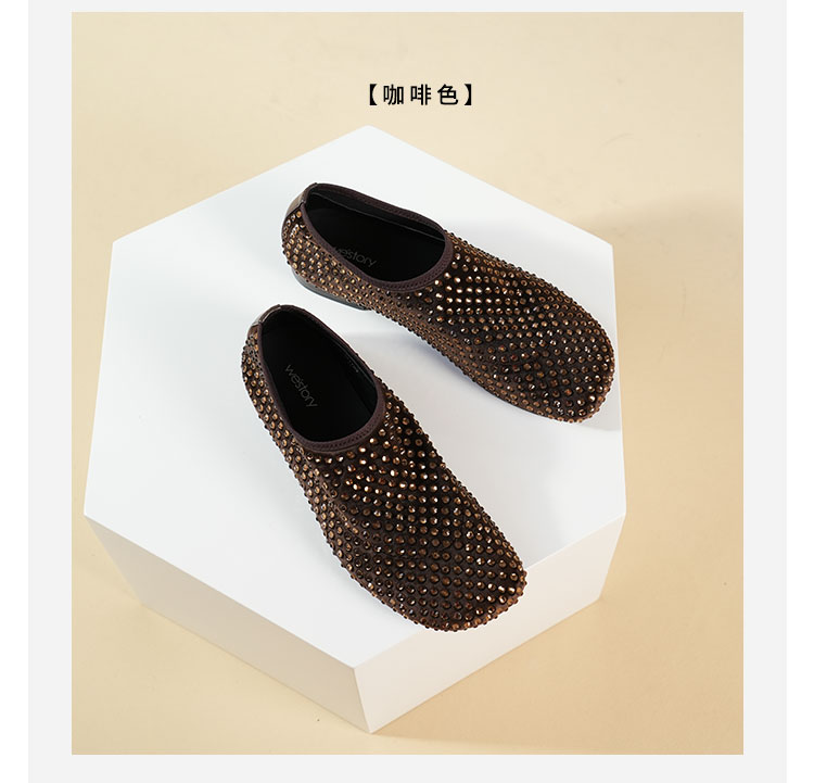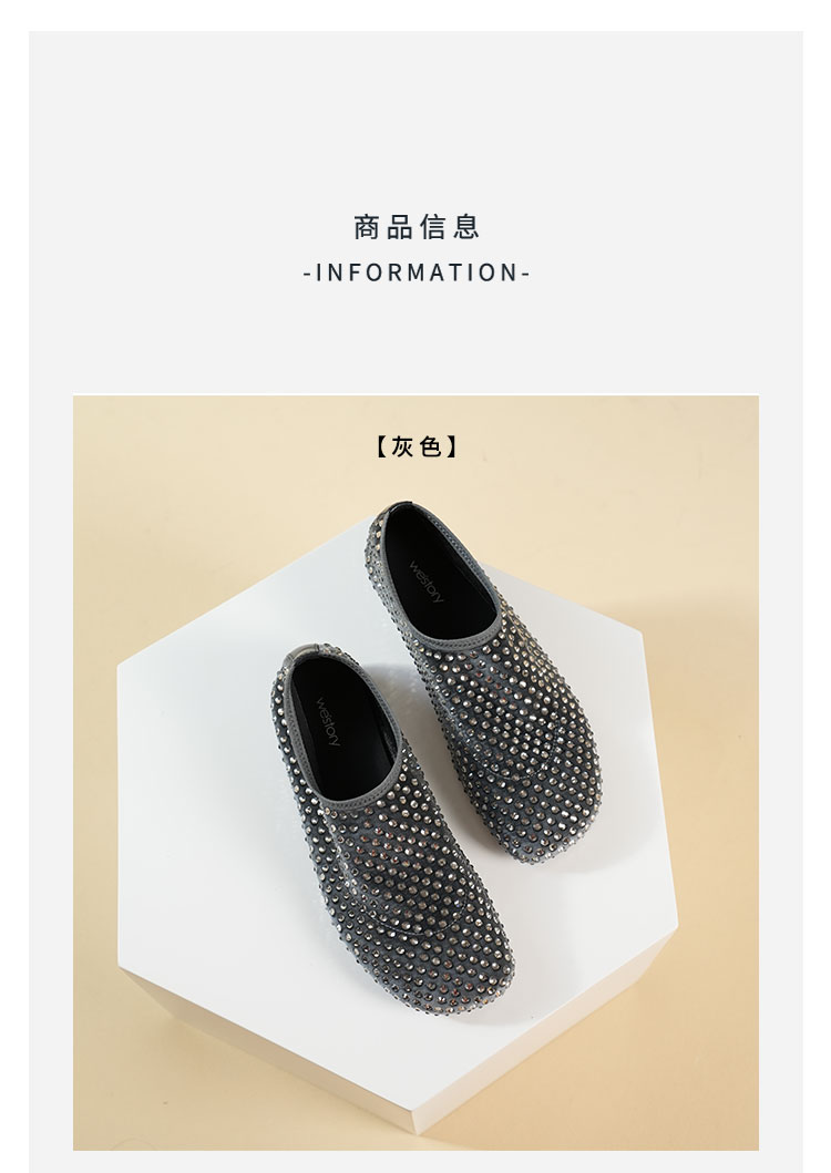 Westory2025年秋季方头低跟弹力绒面烫钻单鞋休闲深口单鞋W25CM76611
