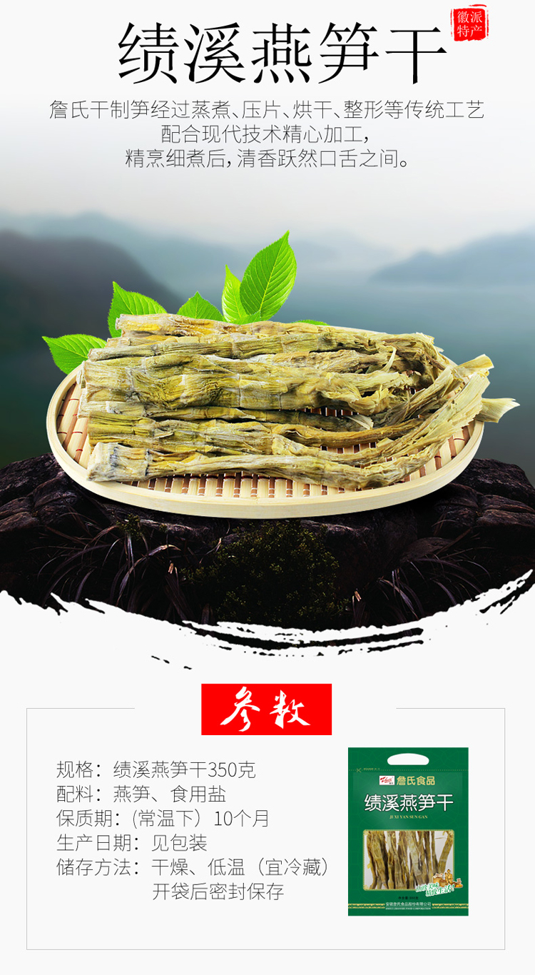 詹氏 山珍系列 绩溪燕笋干350g*2袋 色泽黄亮 肉质肥嫩 48小时发货