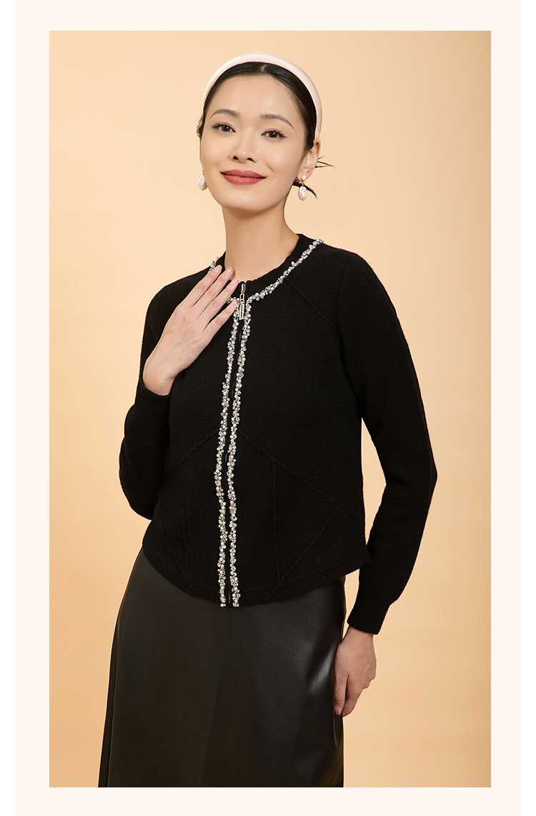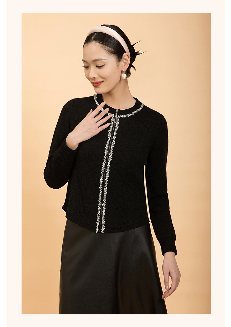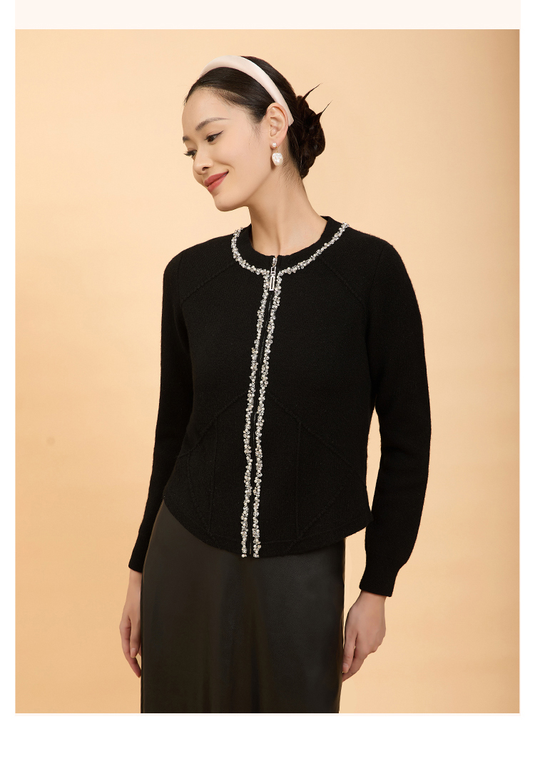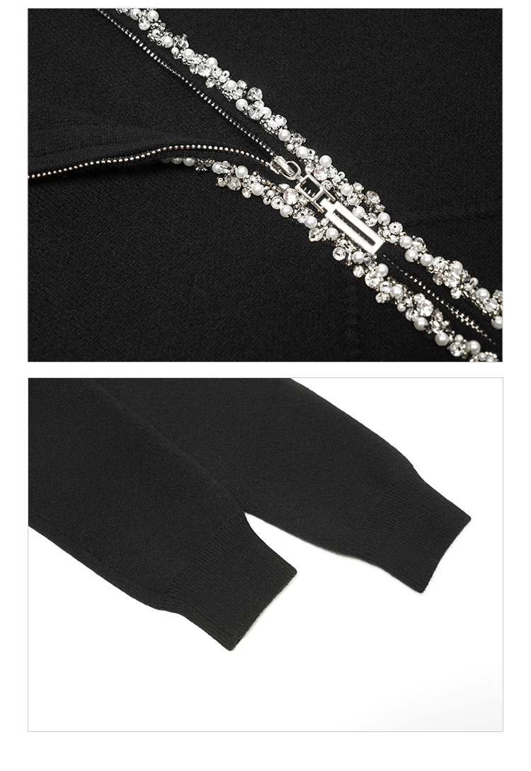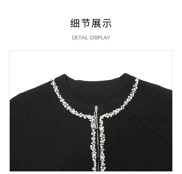 郭培成衣品牌精品系列轻奢手工钉珠拉链毛织开衫
