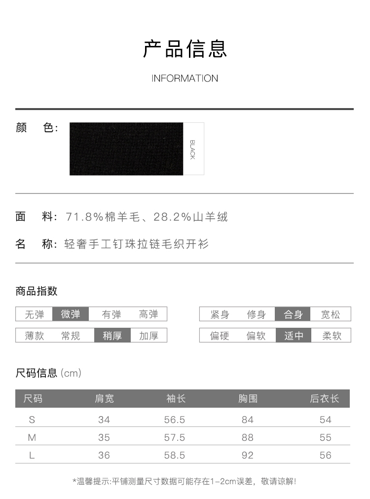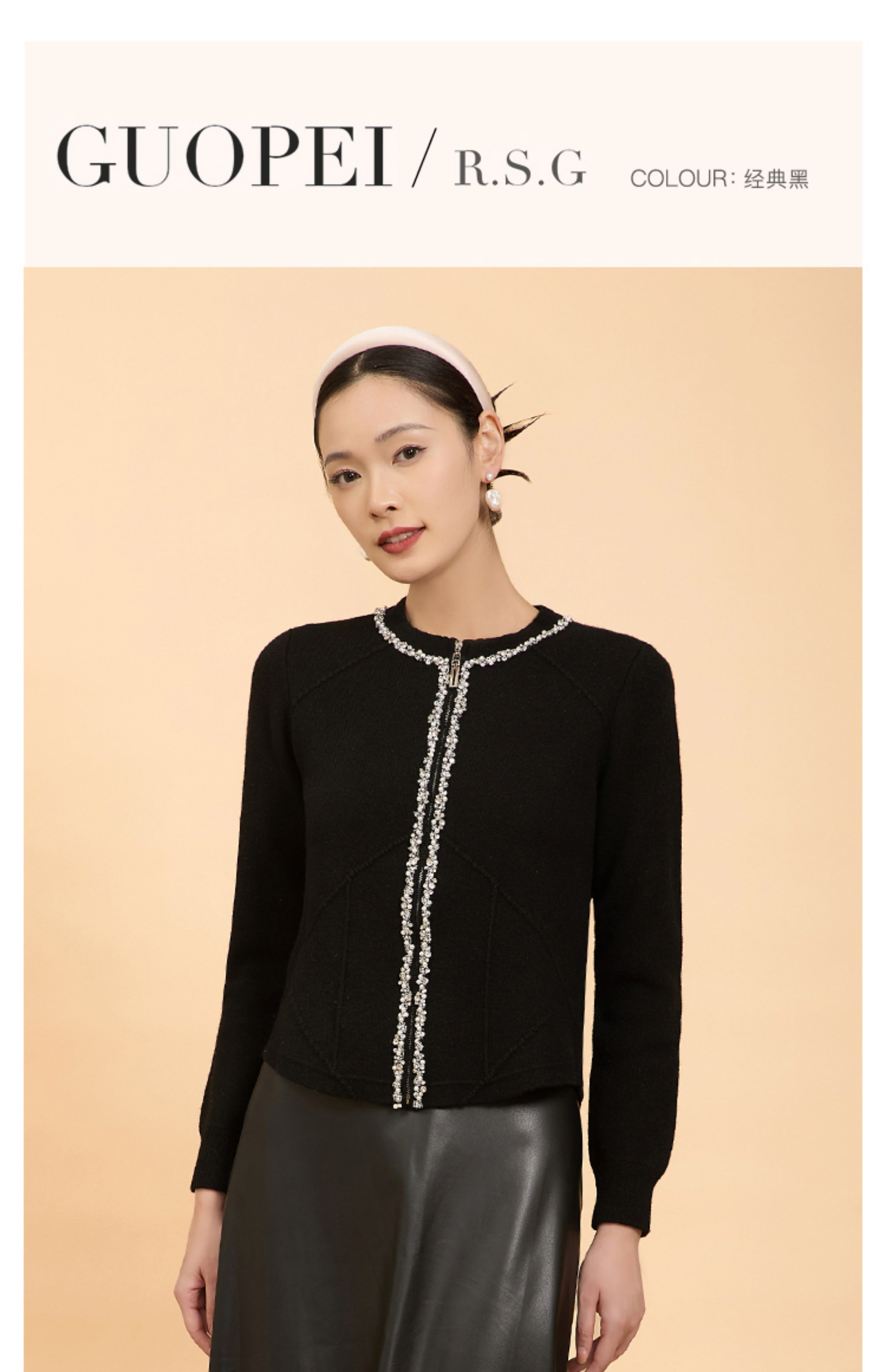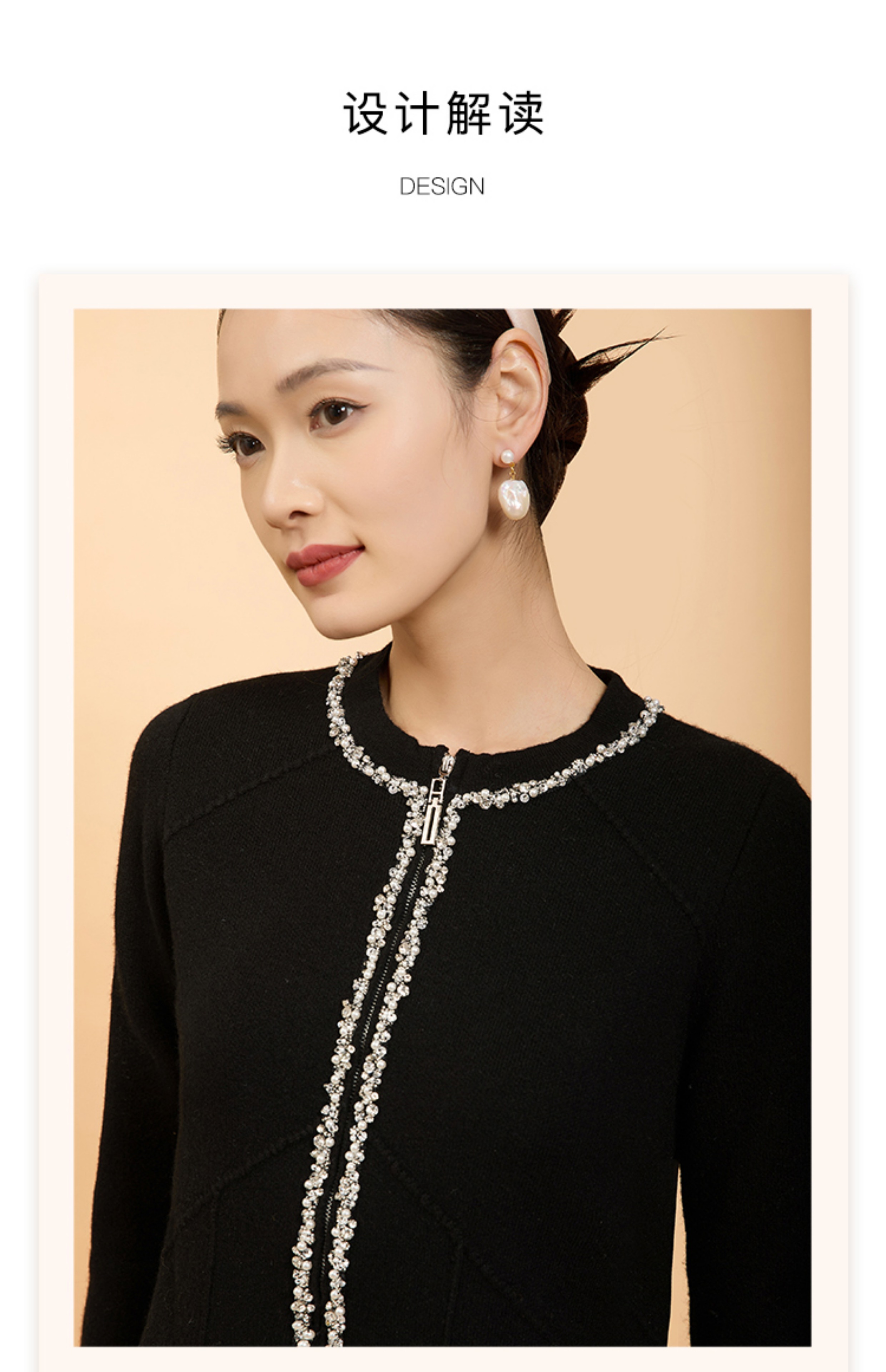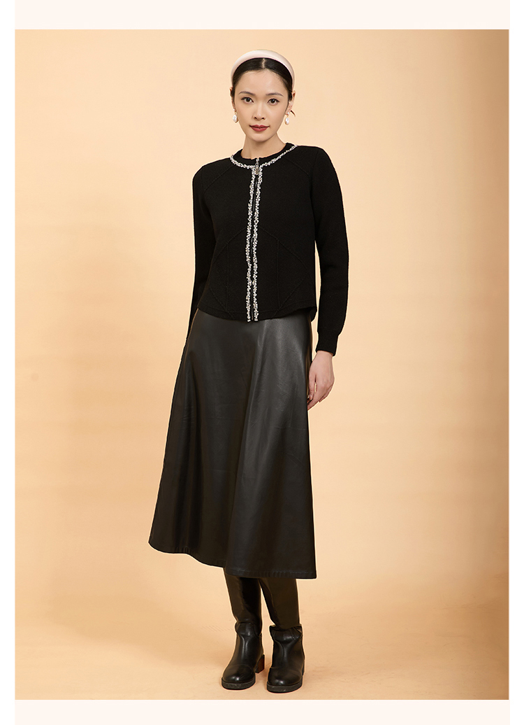 郭培成衣品牌精品系列轻奢手工钉珠拉链毛织开衫