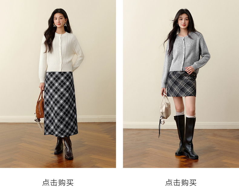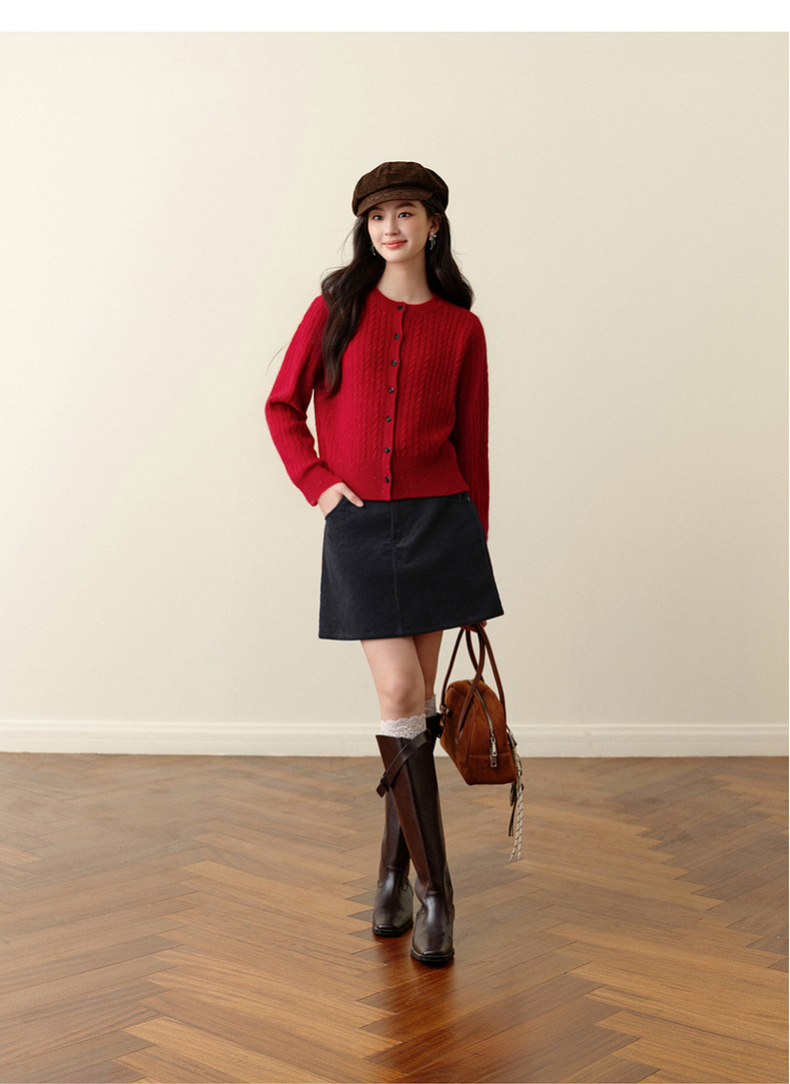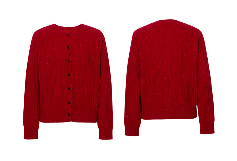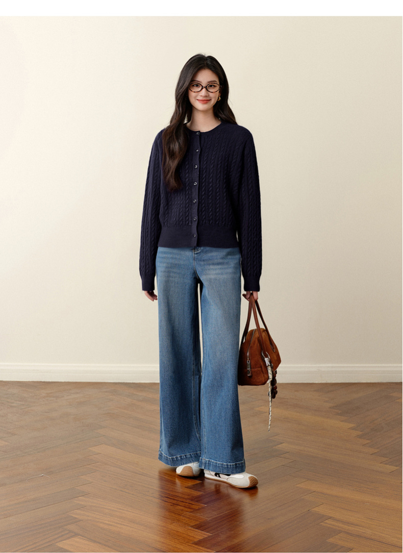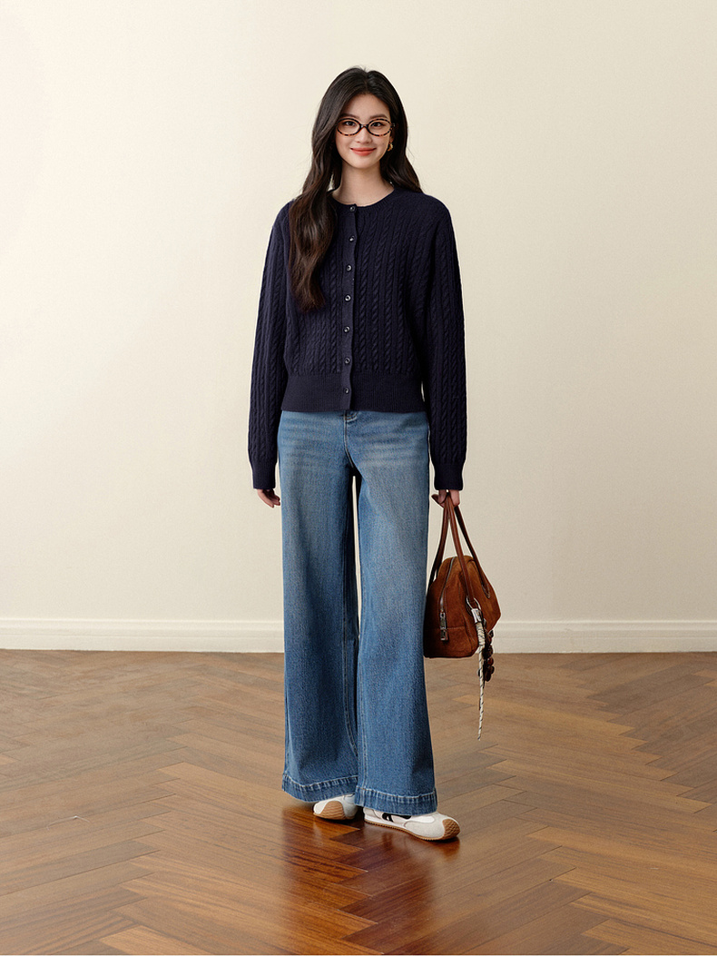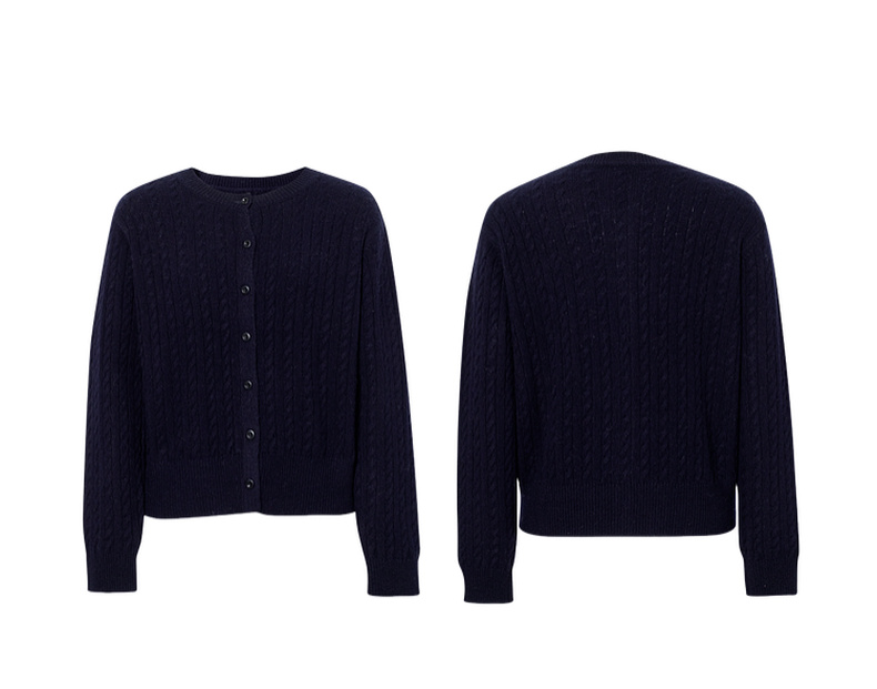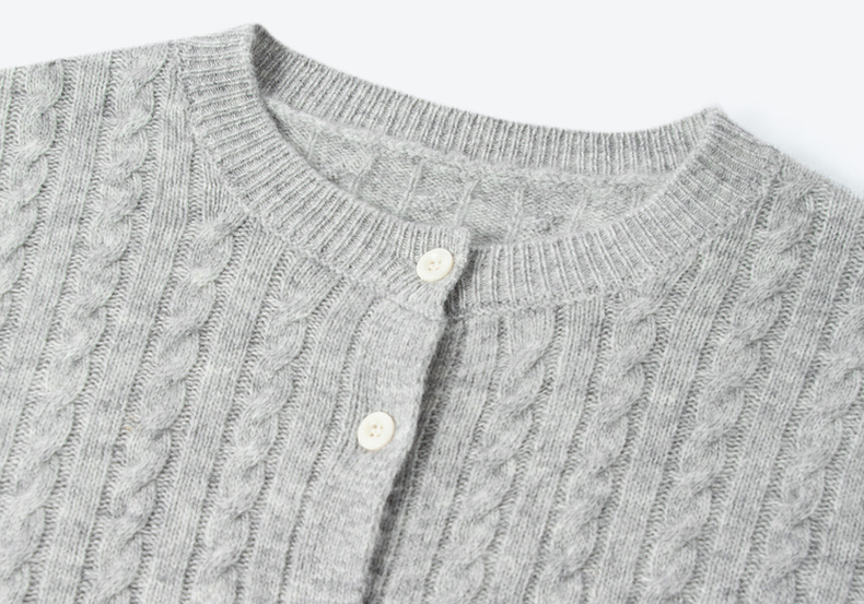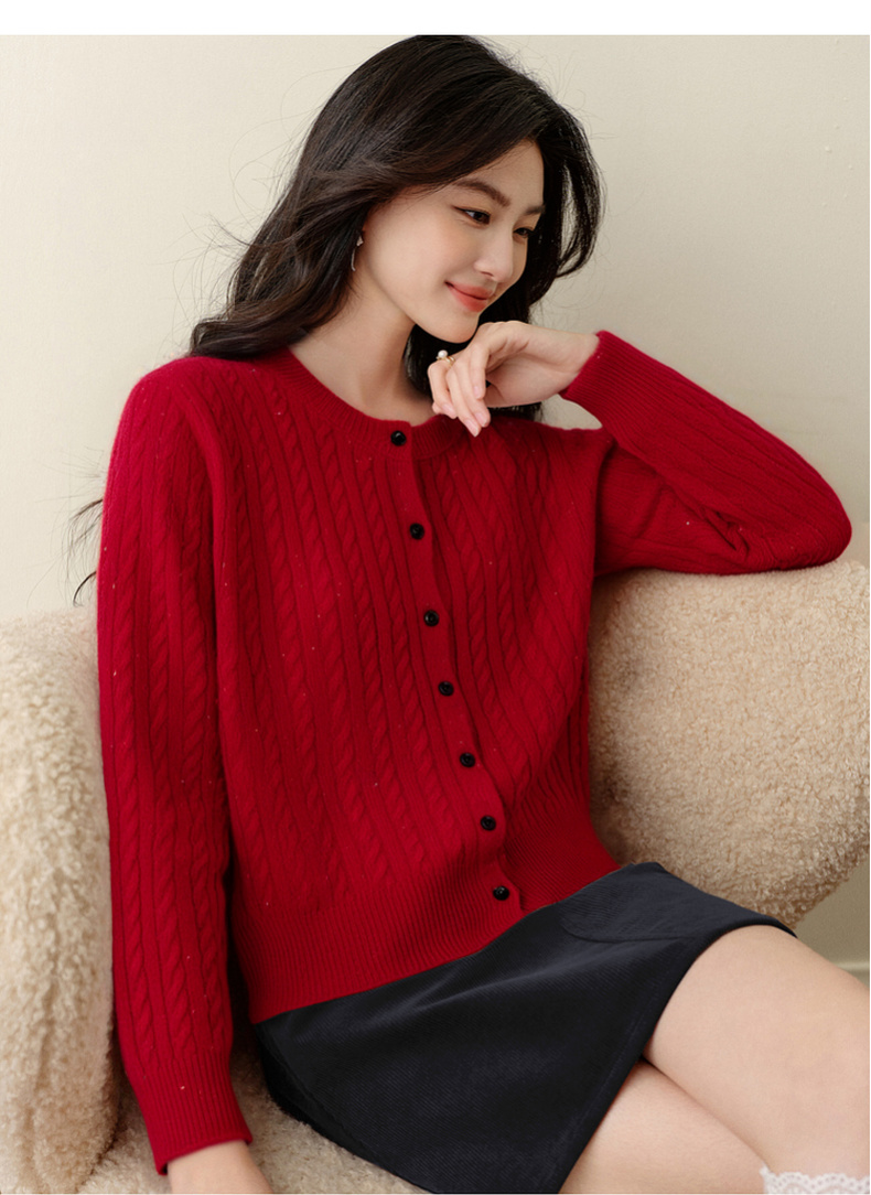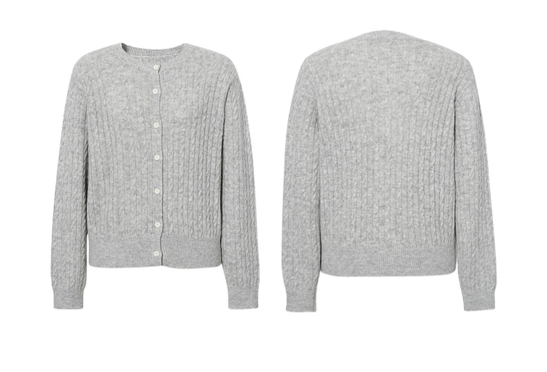 【严选】诗凡黎圆领基础绞花针织开衫2025秋冬新款软糯舒适百搭毛衫外套女7G9433071