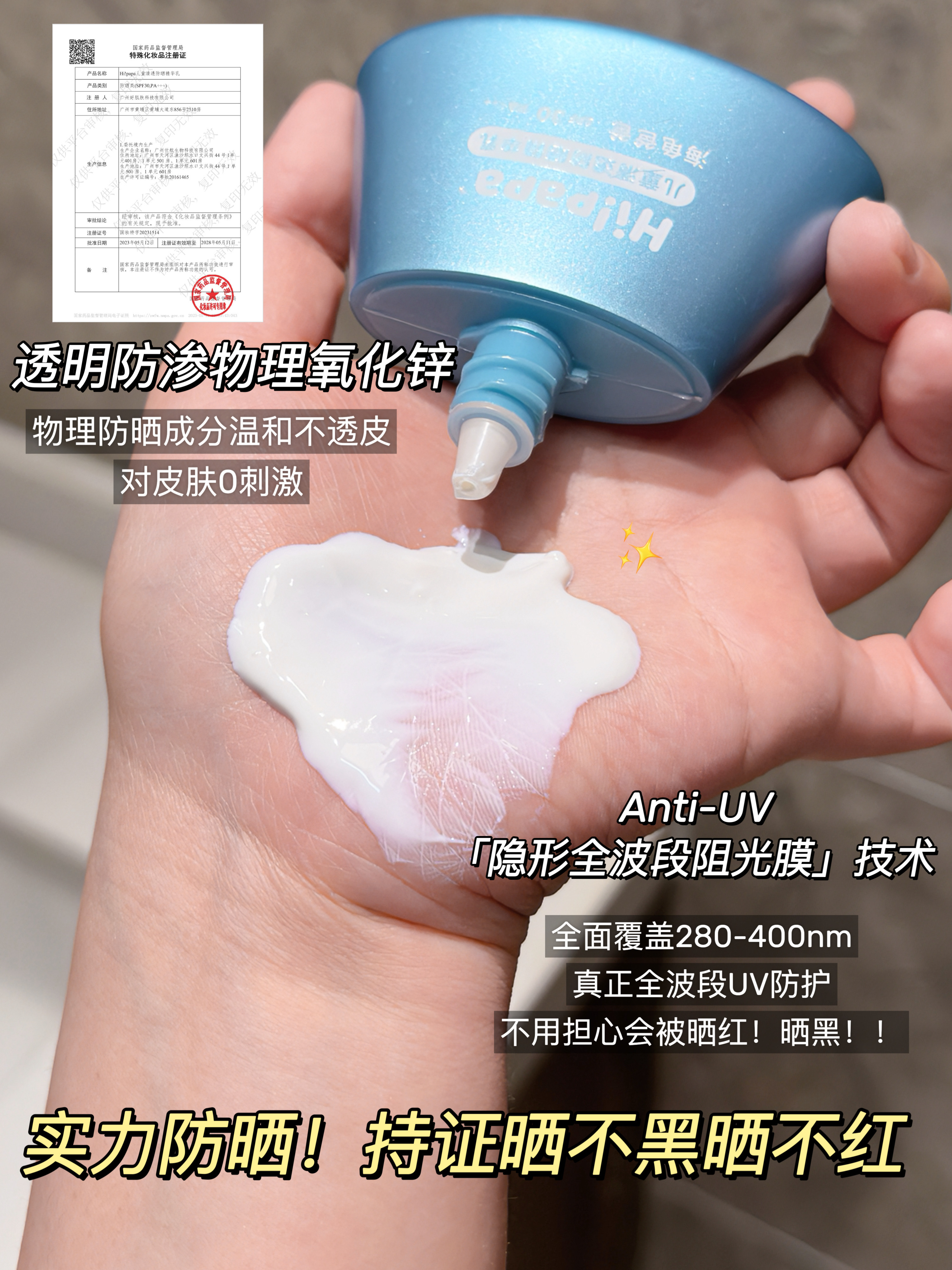 添加的透明防渗物理氧化锌防晒成分,温和不透皮