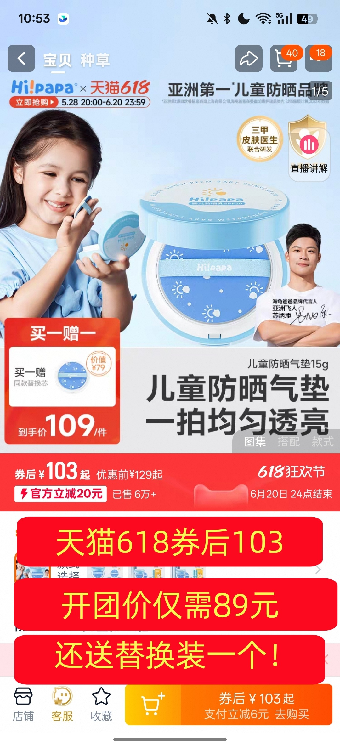 🔺官方旗舰店券后103的防晒气垫,开团价直接89元送替换装,其实也等于买一送一!