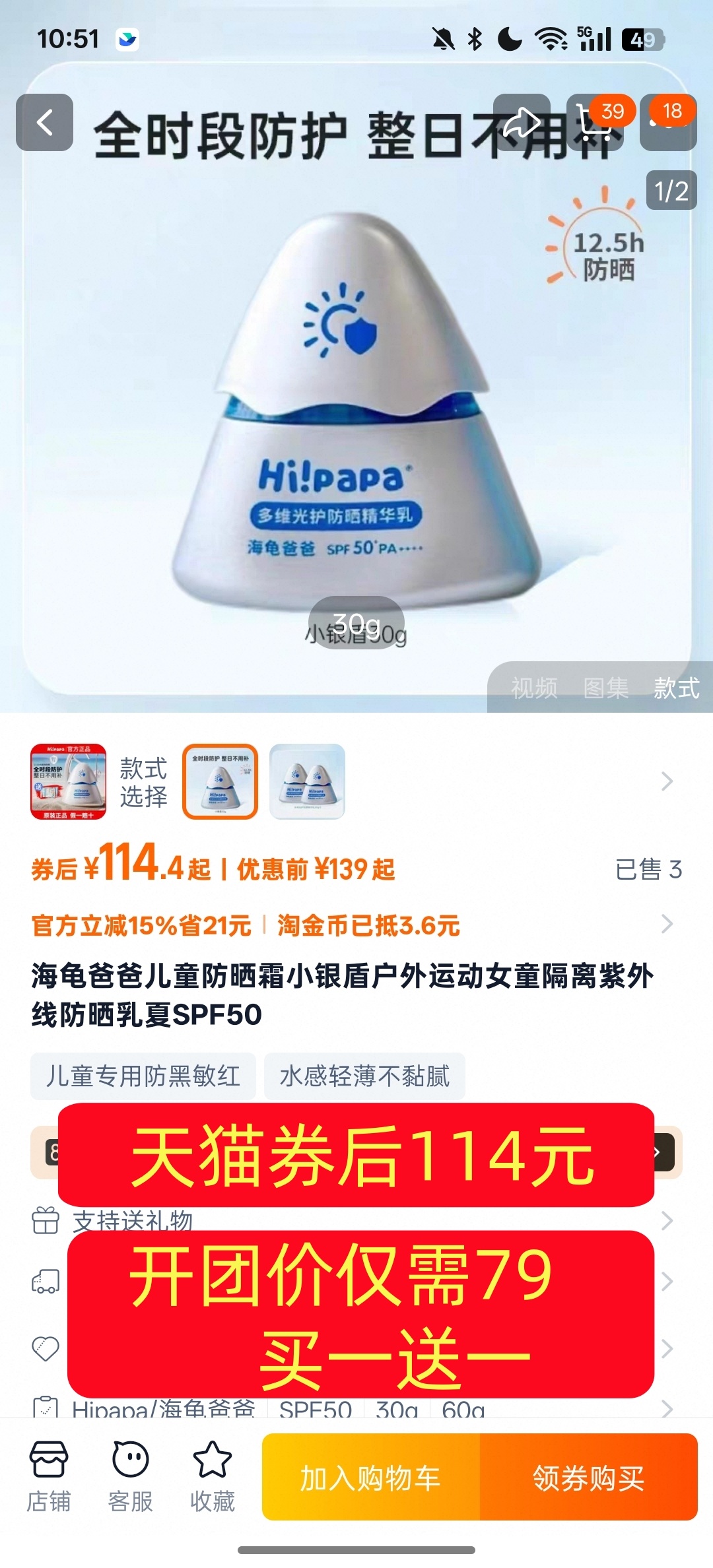 🔺这款专业级儿童运动防晒霜,618旗舰店券后都去到了114