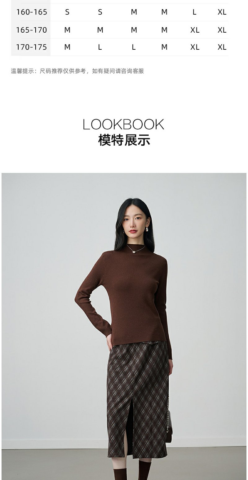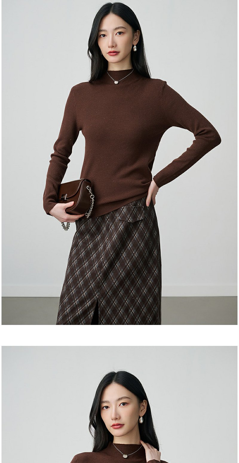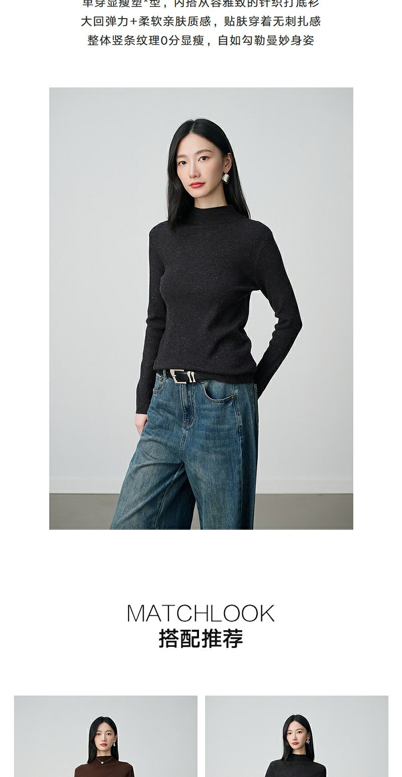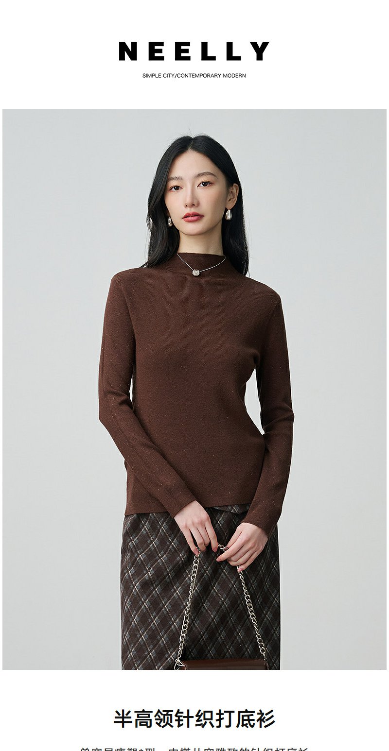 NEELLY纳俪商场同款冬新款优雅百搭显瘦针织衫女半高领亲肤打底衫N25104A06618